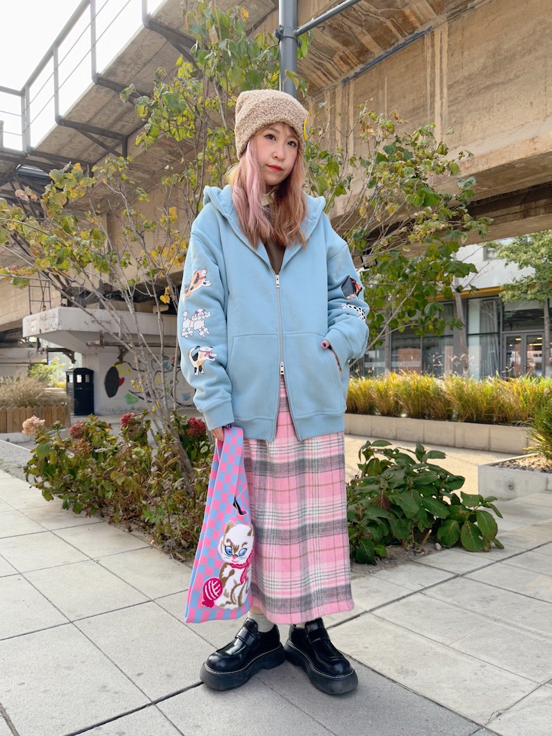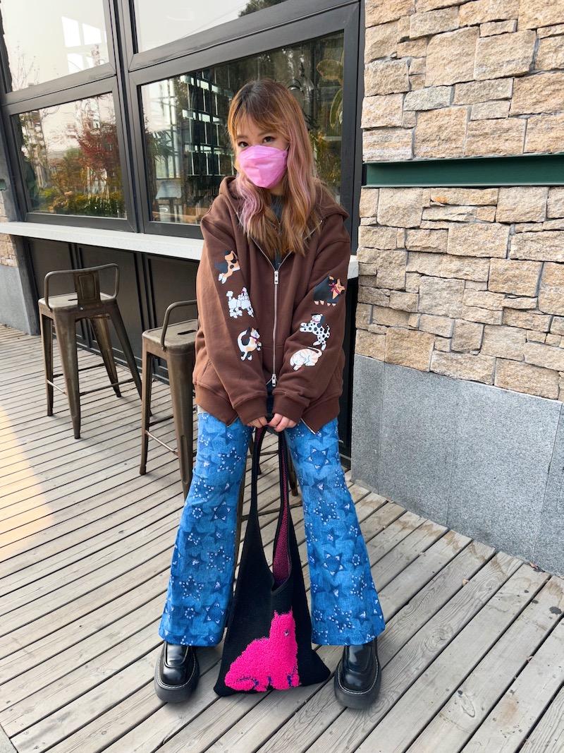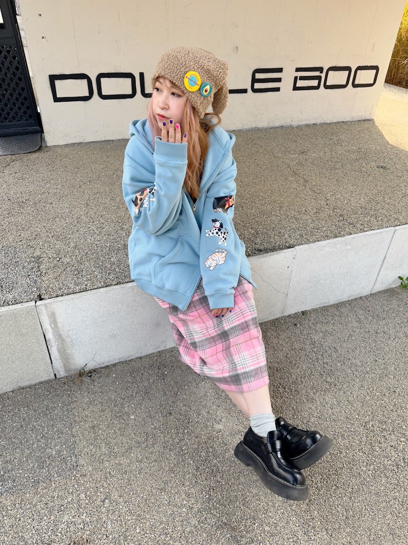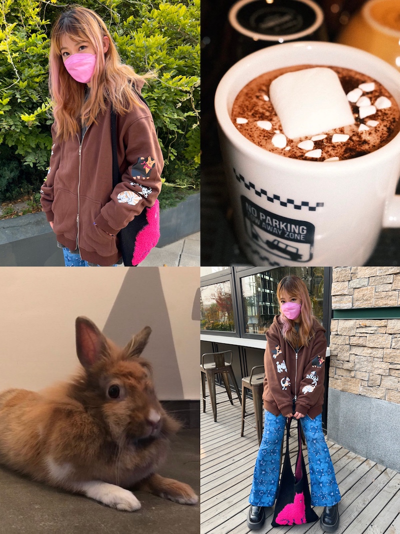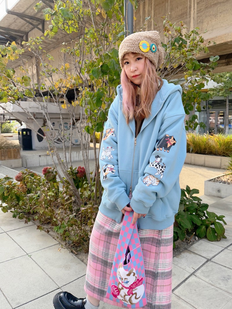 bunnybunnygun原創設計 秋冬美式復古可愛卡通袖子印花拉鍊衛衣