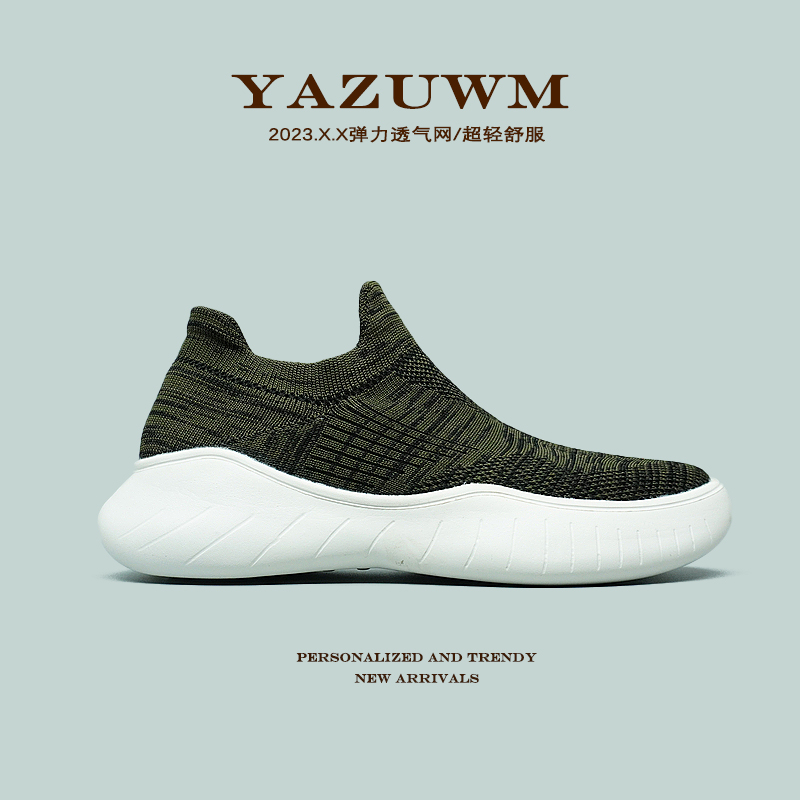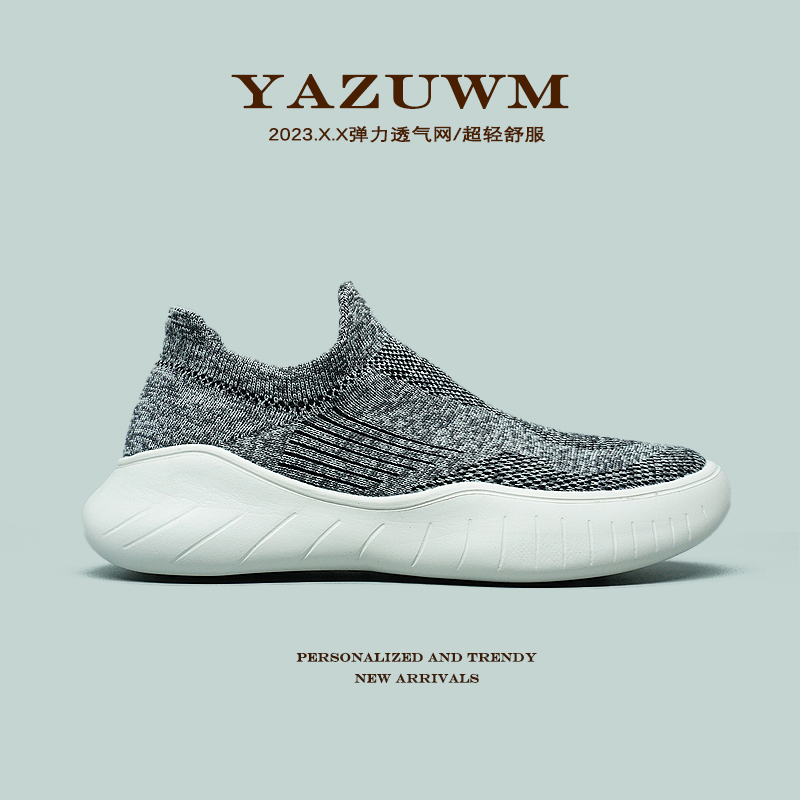 【飛織彈力網面】一腳蹬套腳透氣襪鞋男超輕防滑懶人運動休閒鞋