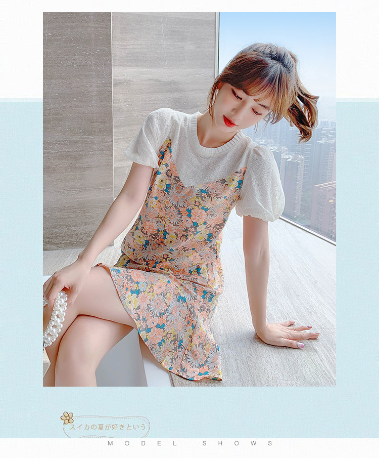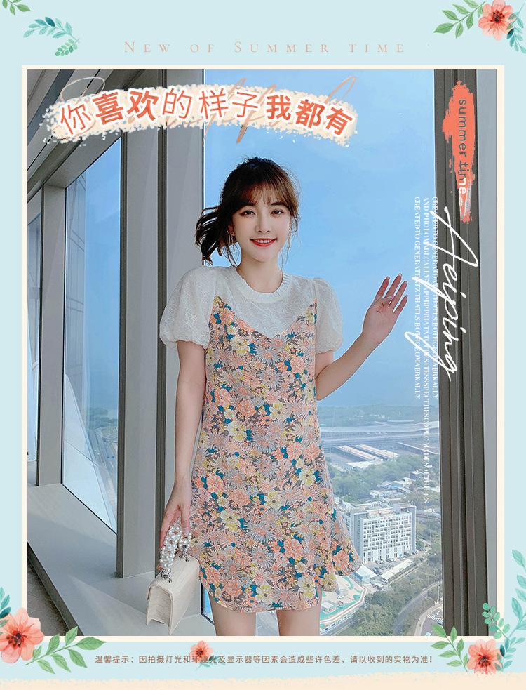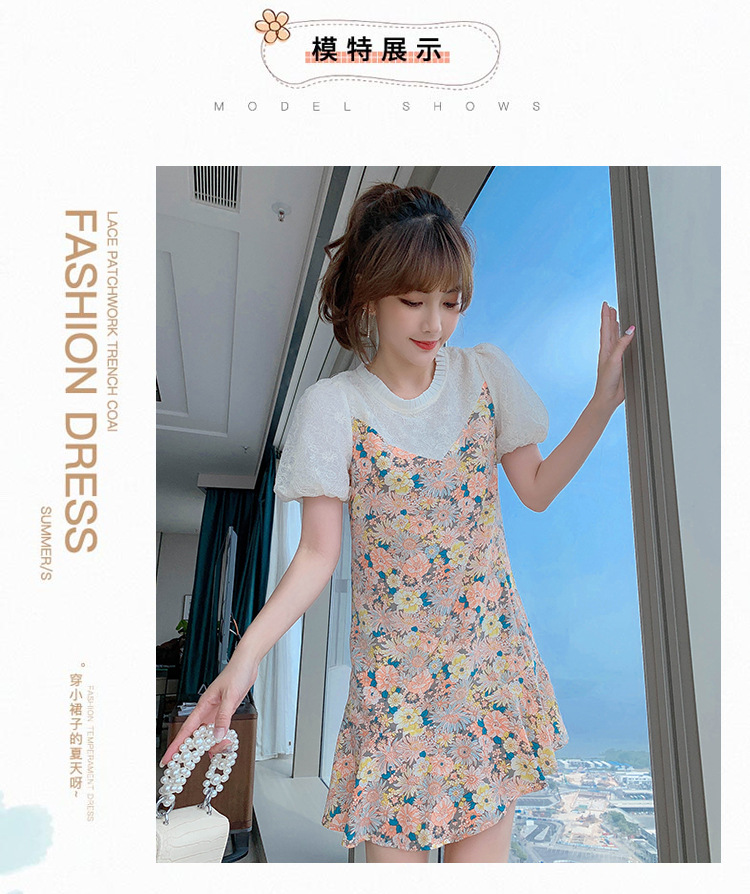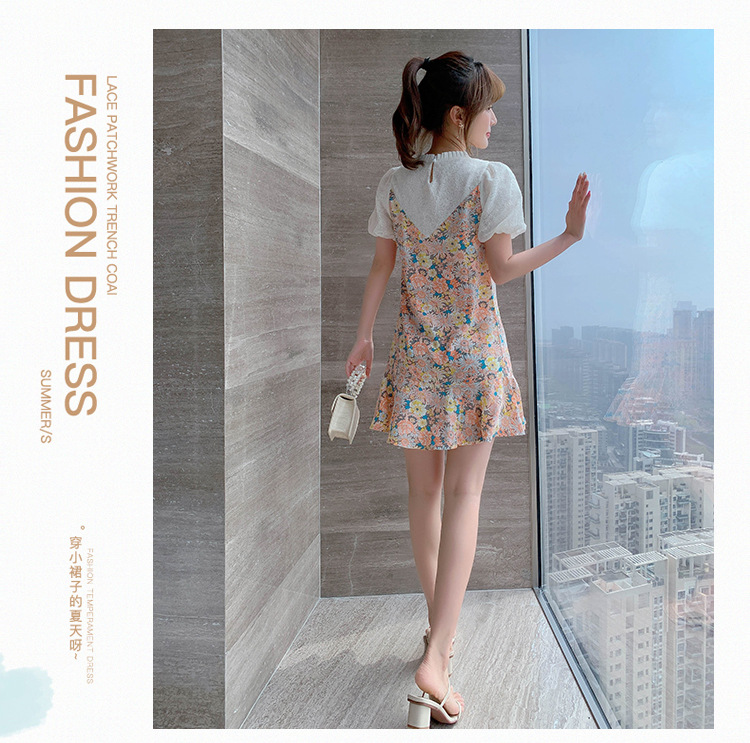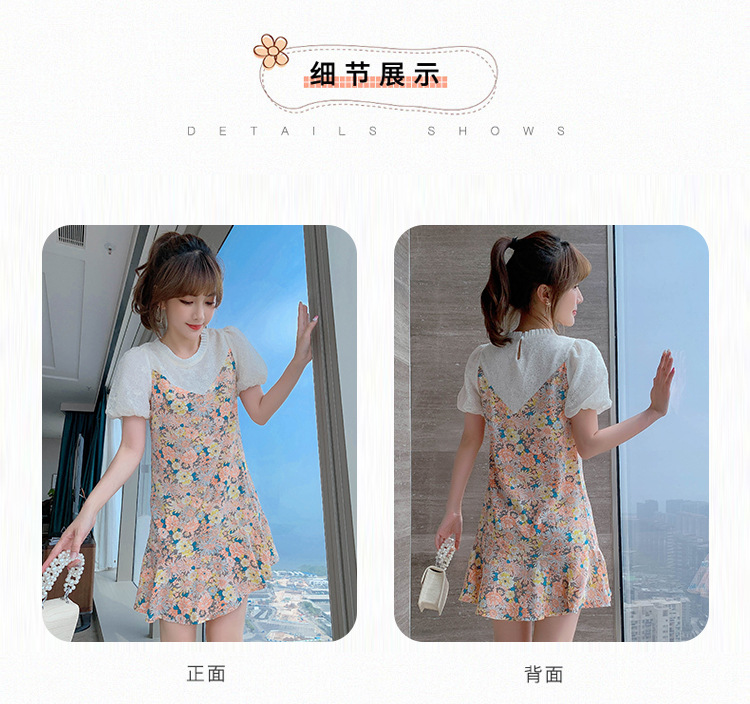 小个子雪纺碎花鱼尾泡泡袖连衣裙女夏2023新款春款甜美气质小裙子