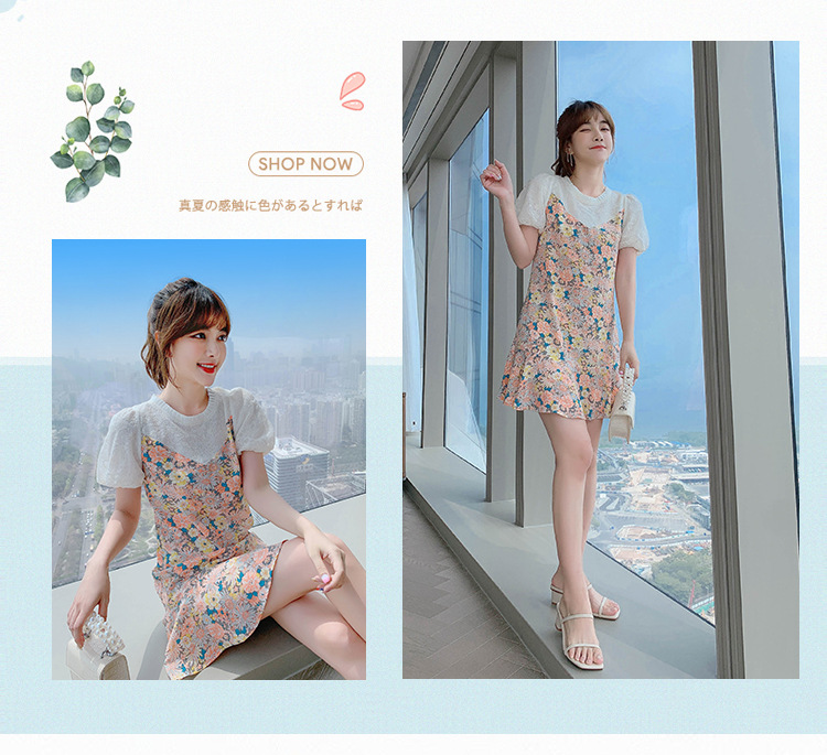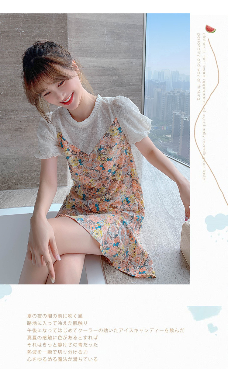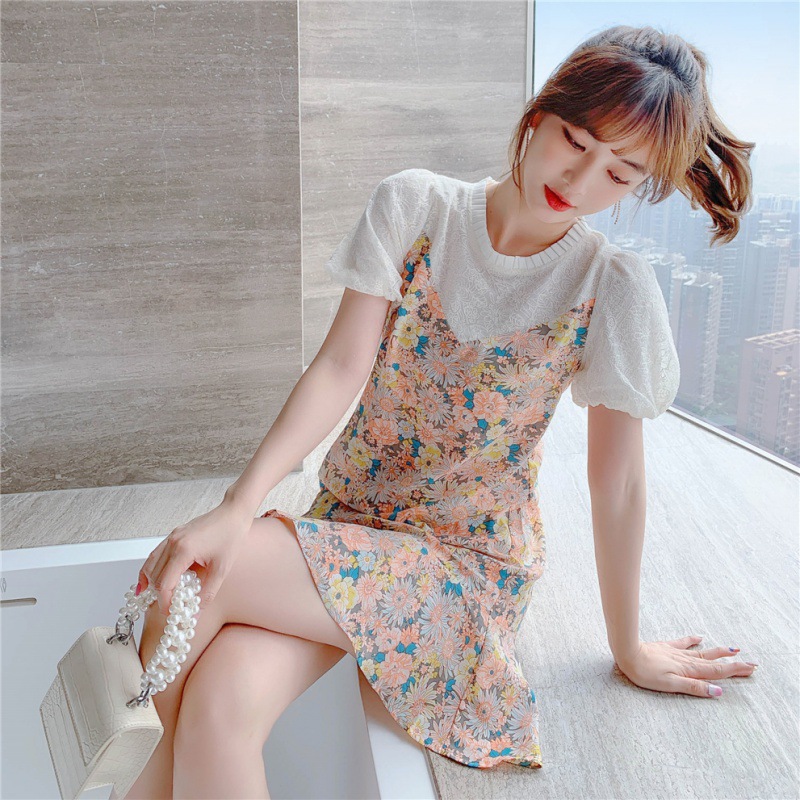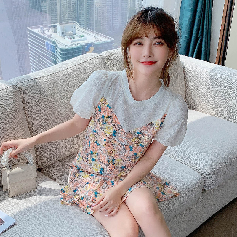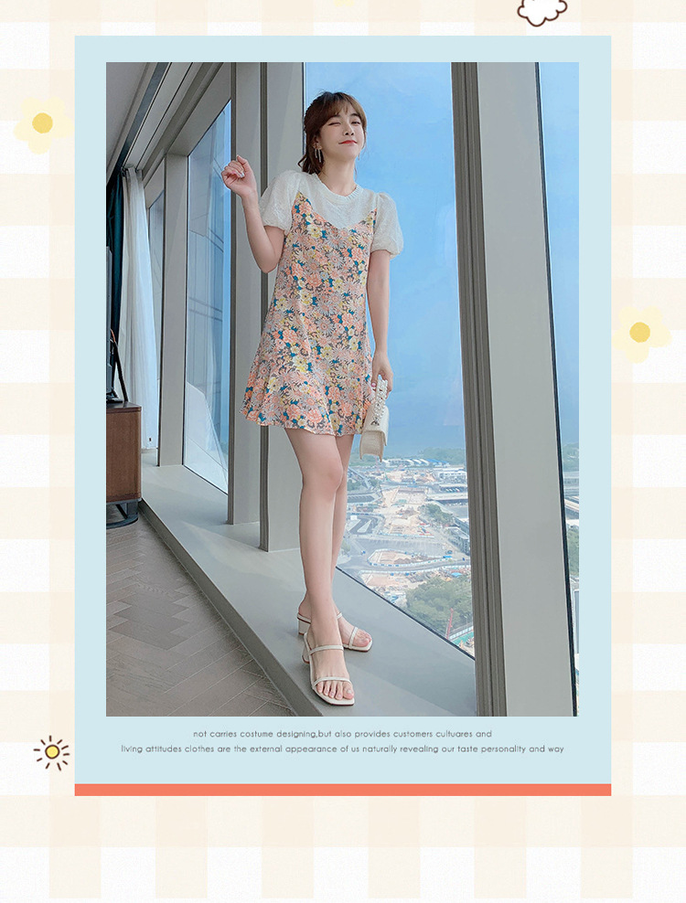 小个子雪纺碎花鱼尾泡泡袖连衣裙女夏2023新款春款甜美气质小裙子
