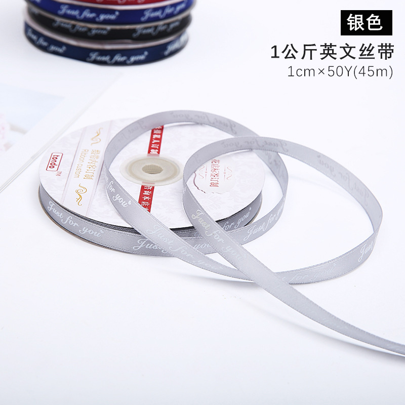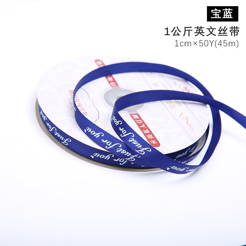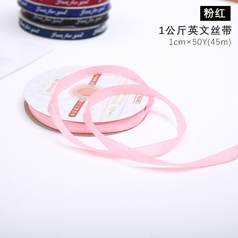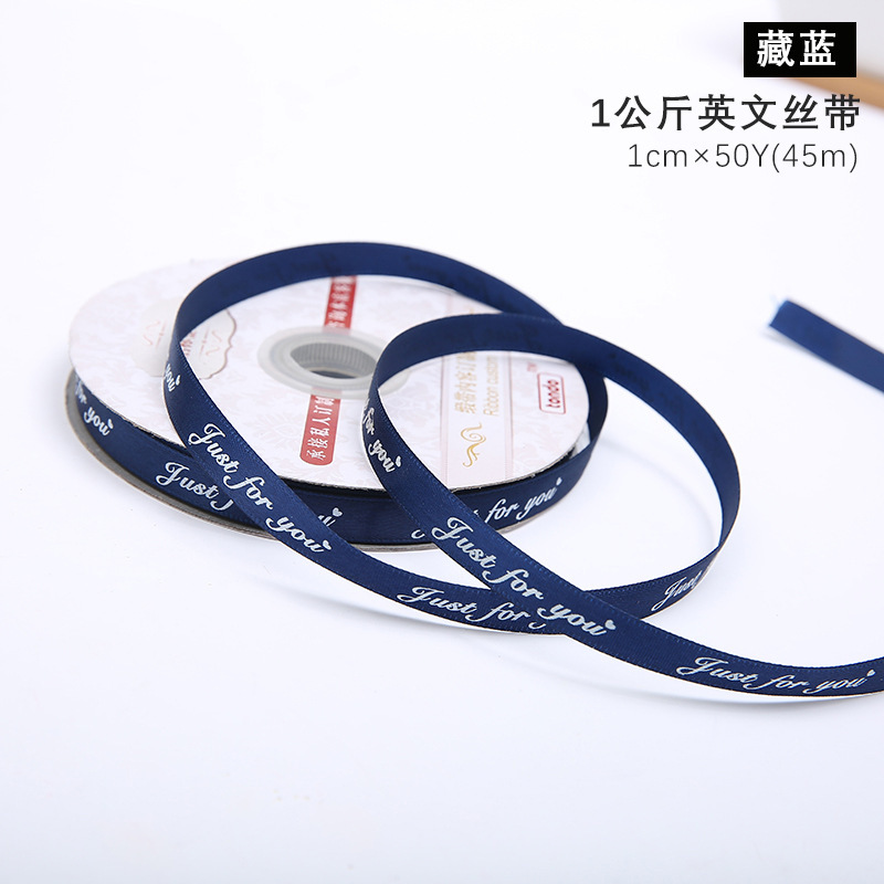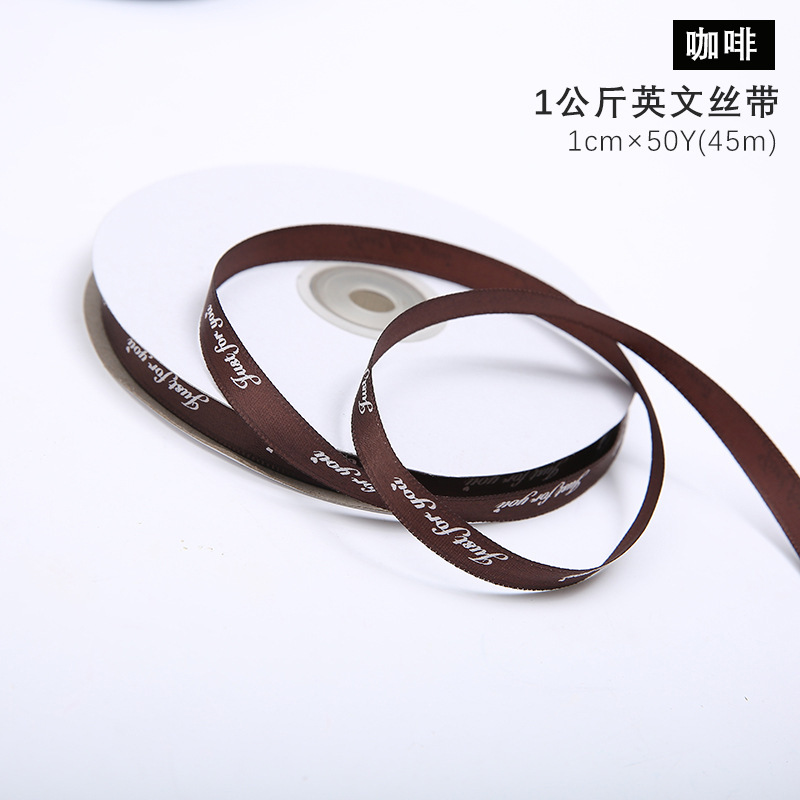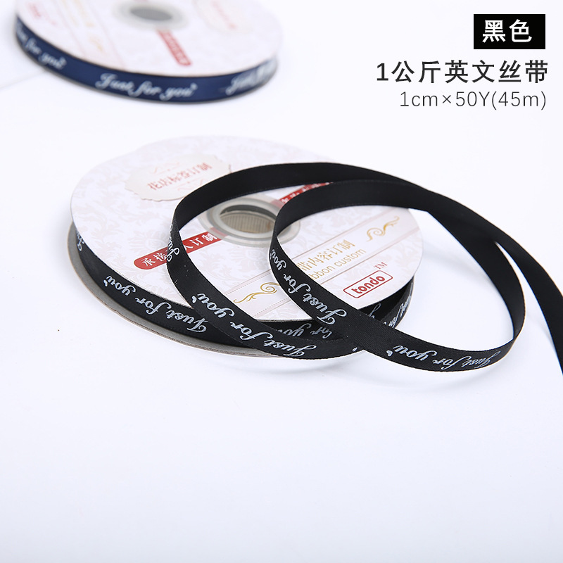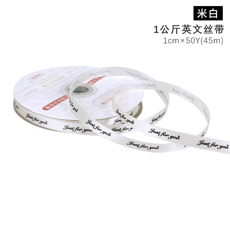 1公分英文丝带 涤纶带-只有你织带  【规格】1厘米*50码 印花丝带 【特点】无论是包鲜花还是礼品都是百搭不会出错的,颜色精心挑选,质感和色泽都很好的一款  【用途】可用于鲜花花束、礼品、蛋糕盒等包装