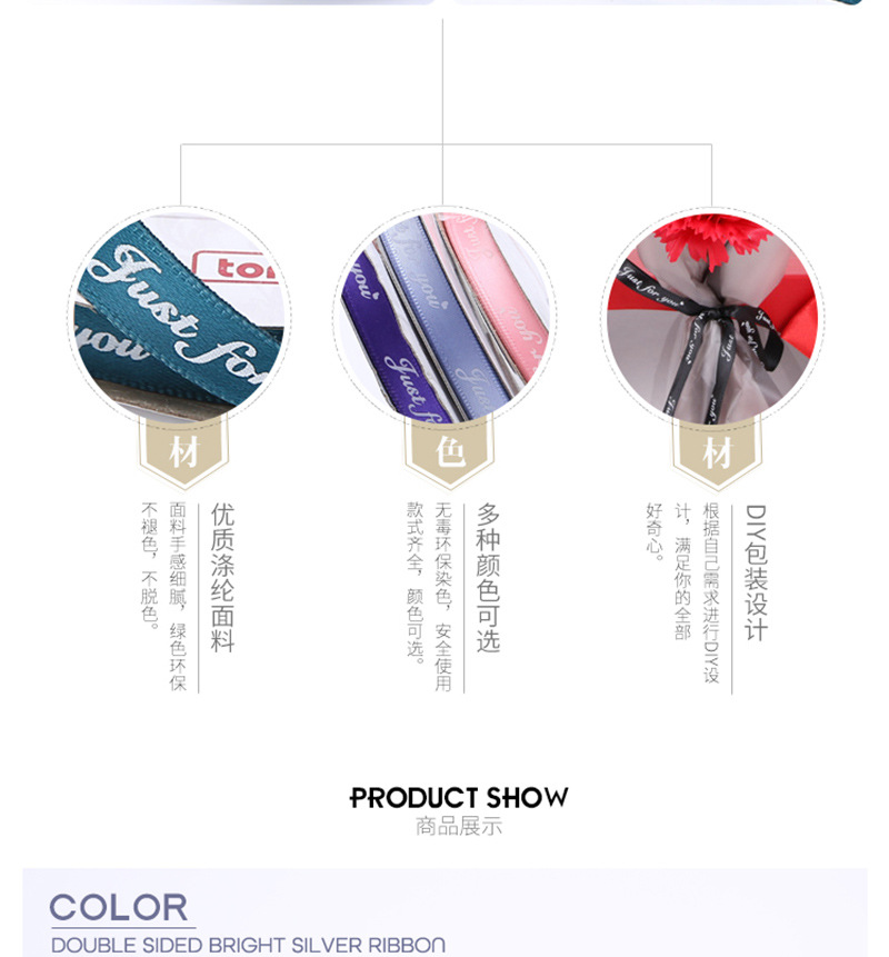1.0双面色丁丝带发饰礼品diy韩国织带绸带扎蝴蝶结鲜花包装纸材料 ¥4.5