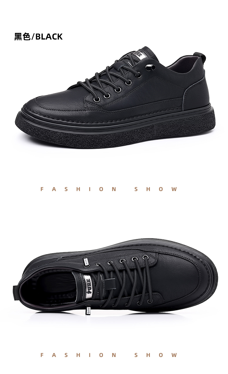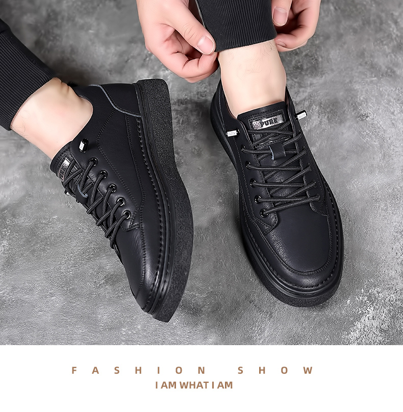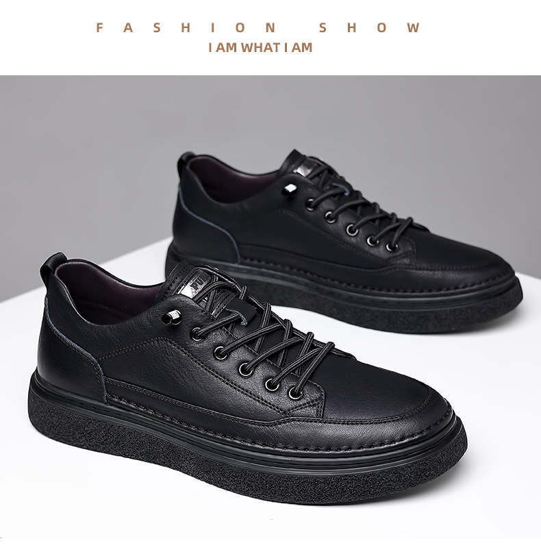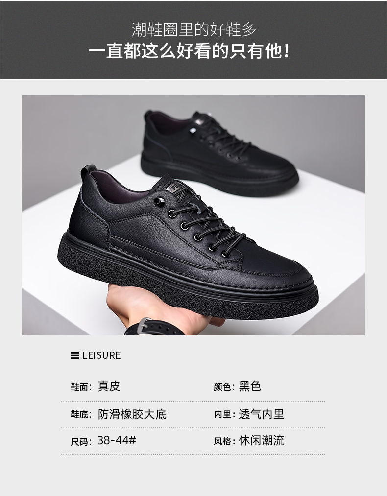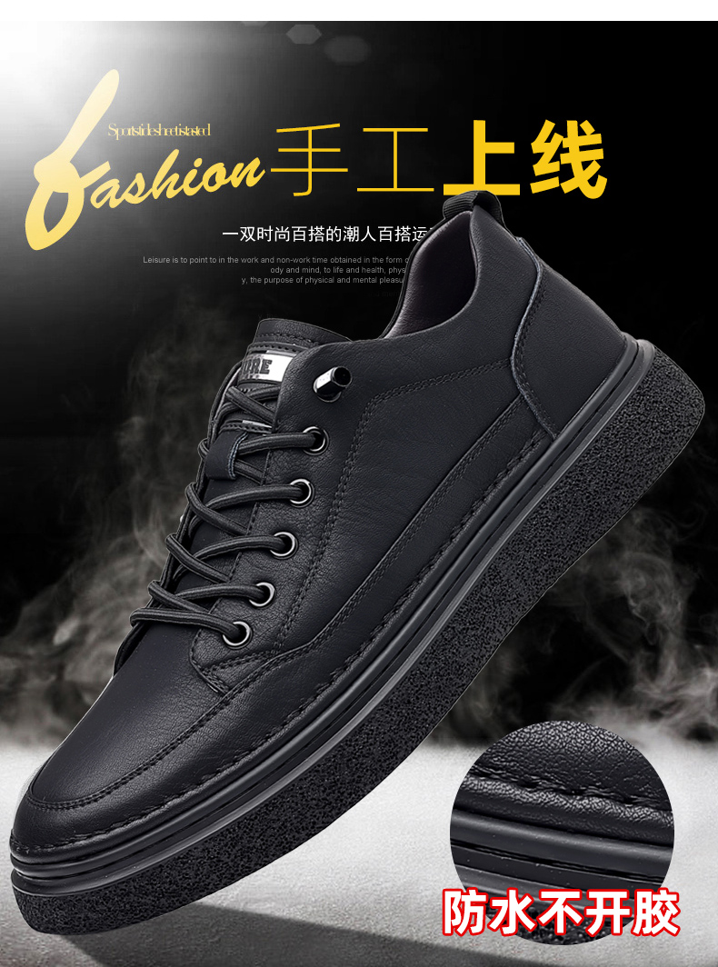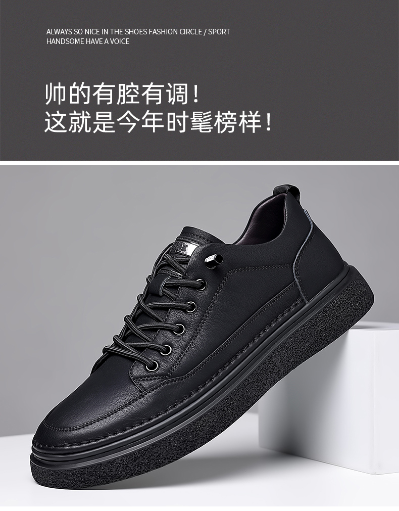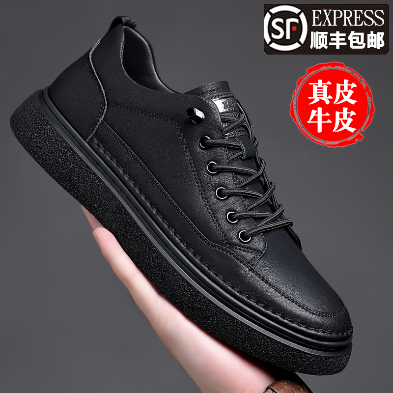男鞋2023秋季新款真皮軟底皮鞋男士潮流百搭黑色透氣休閒鞋子板鞋
