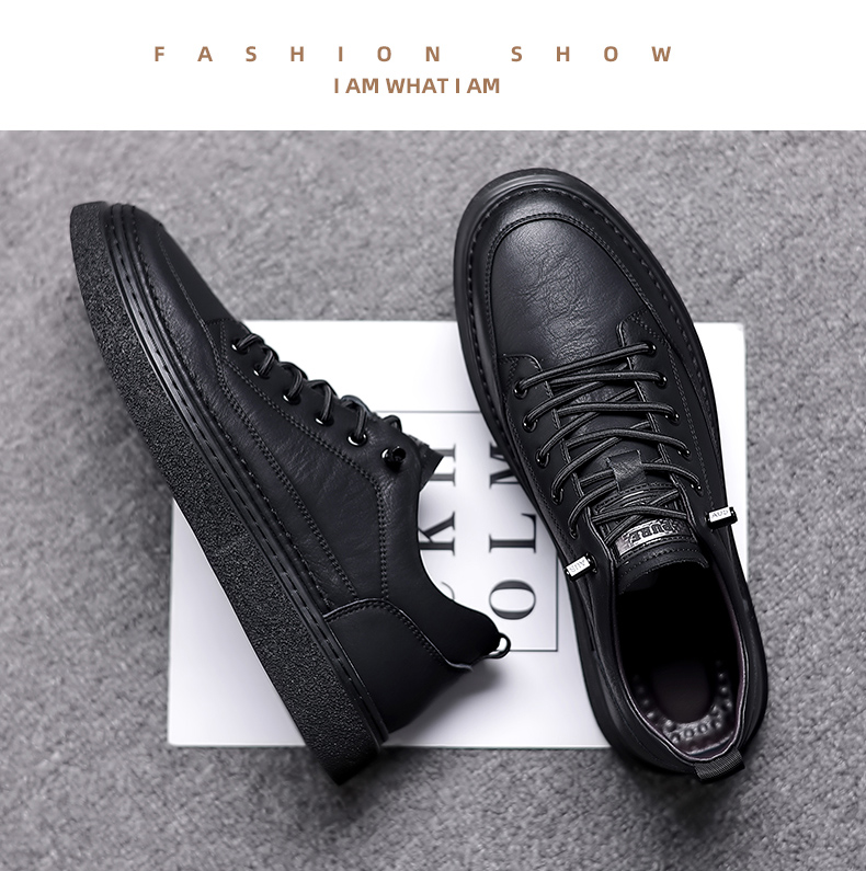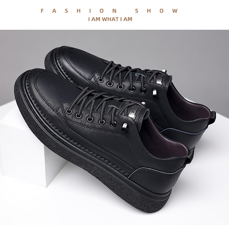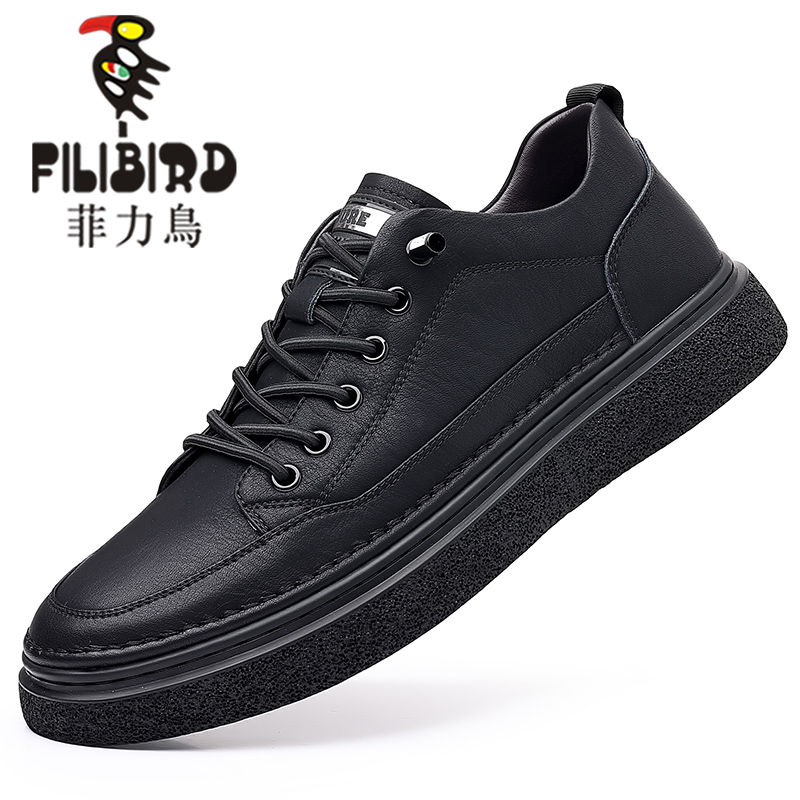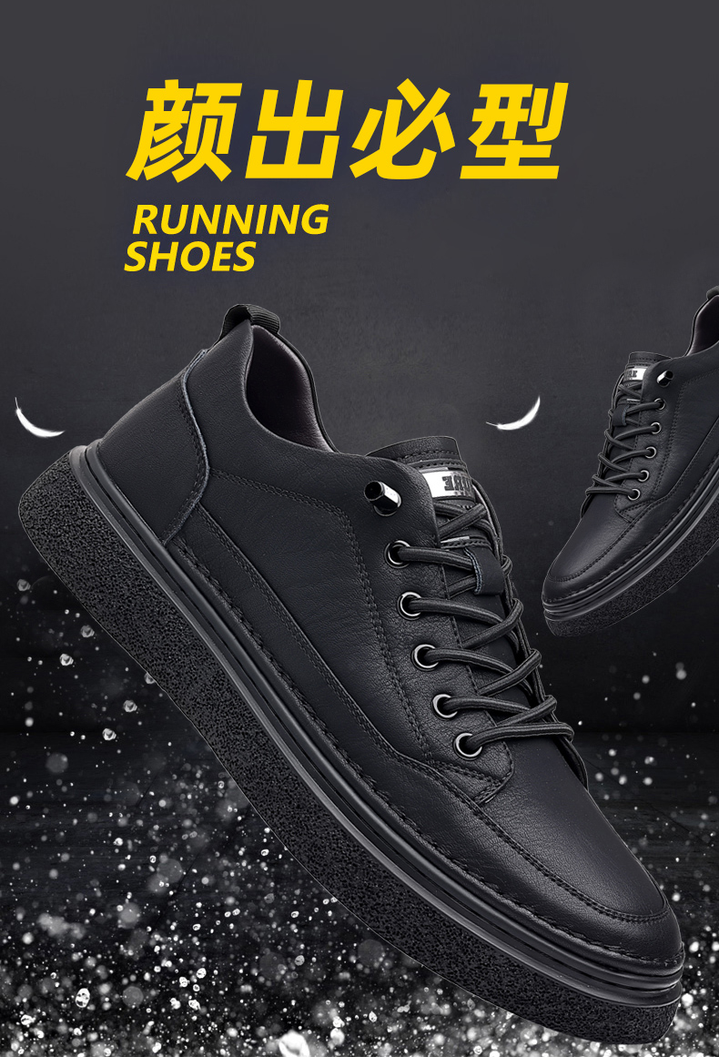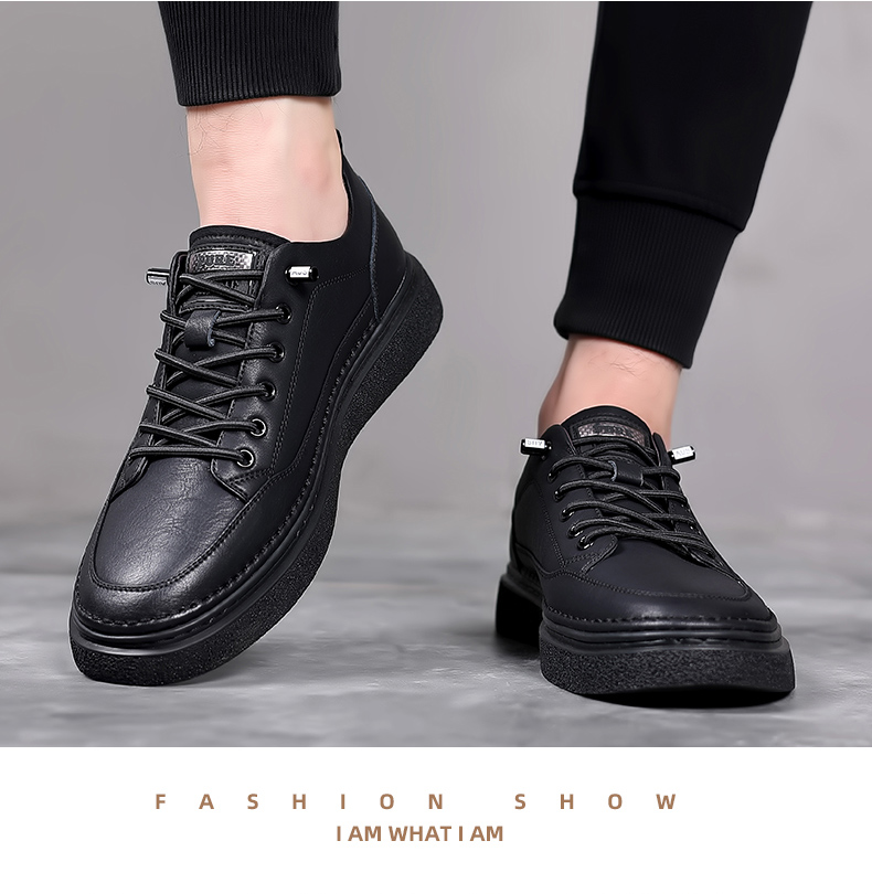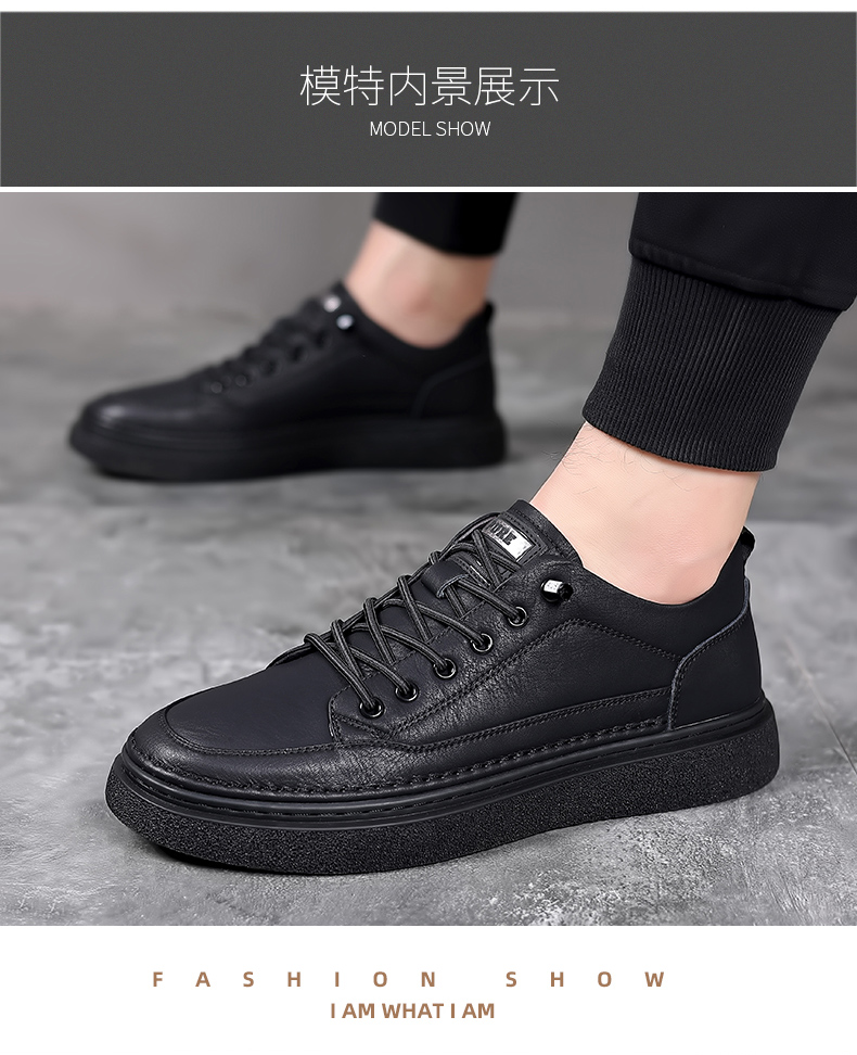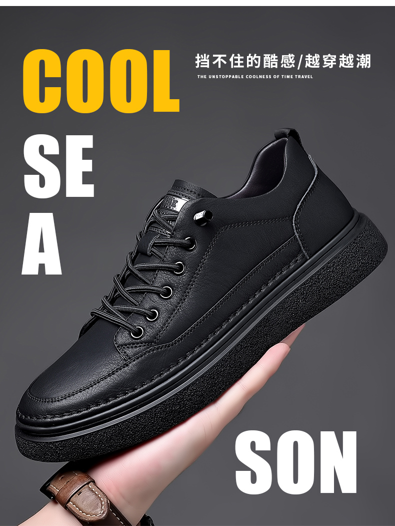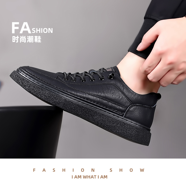 男鞋2023秋季新款真皮軟底皮鞋男士潮流百搭黑色透氣休閒鞋子板鞋