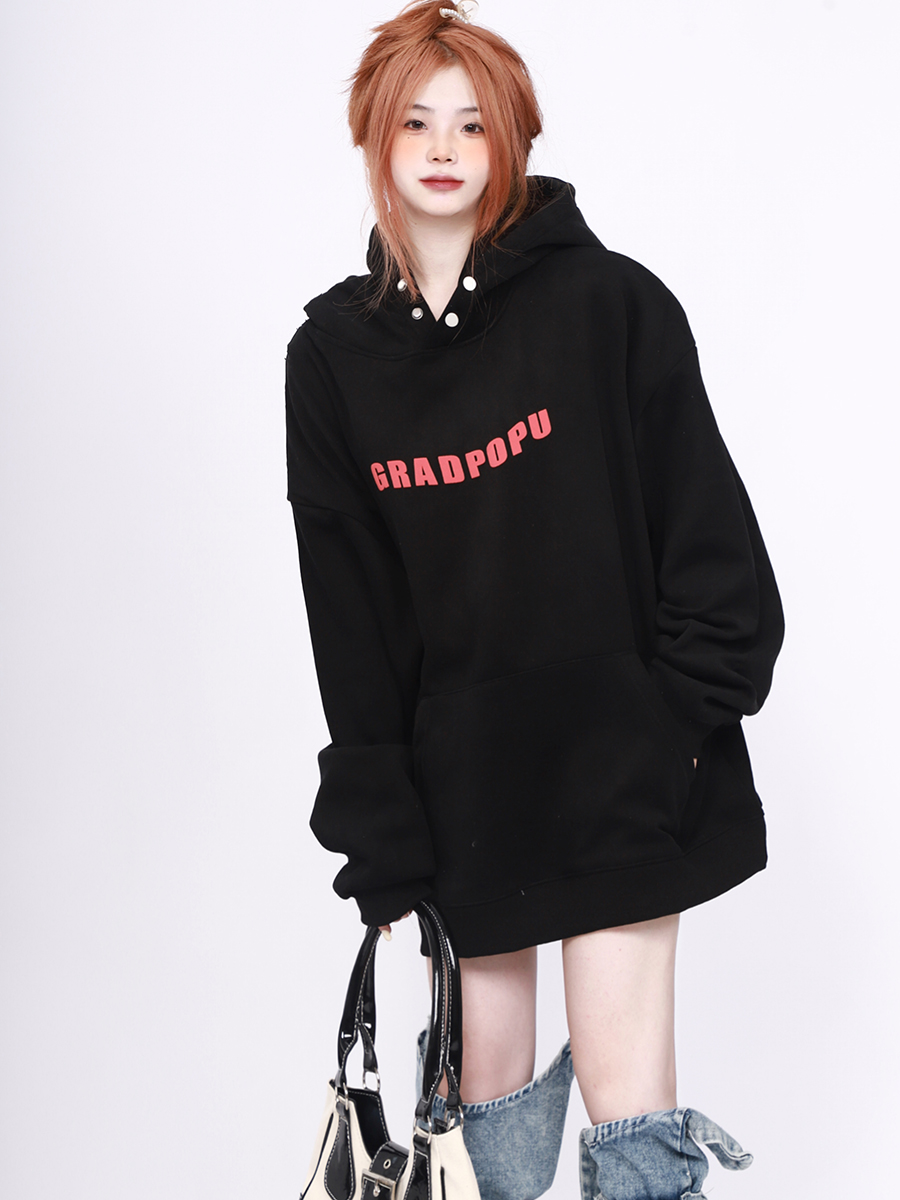 美式潮牌高街復古重磅小眾設計原創白色oversize衛衣女春秋款連帽