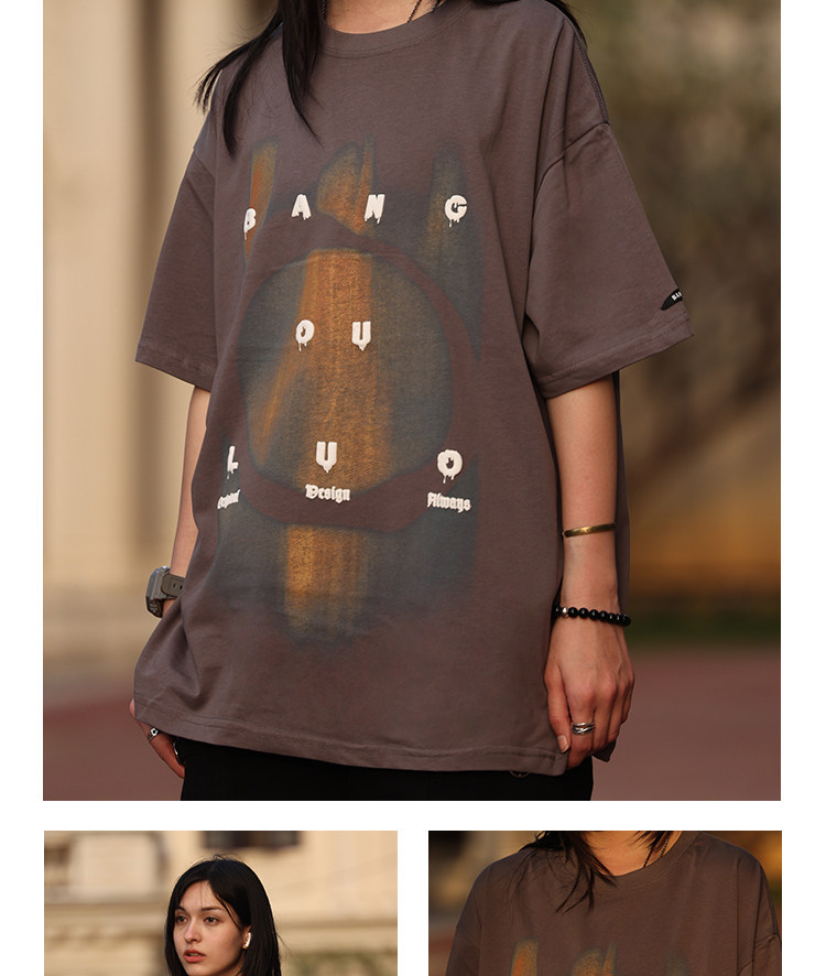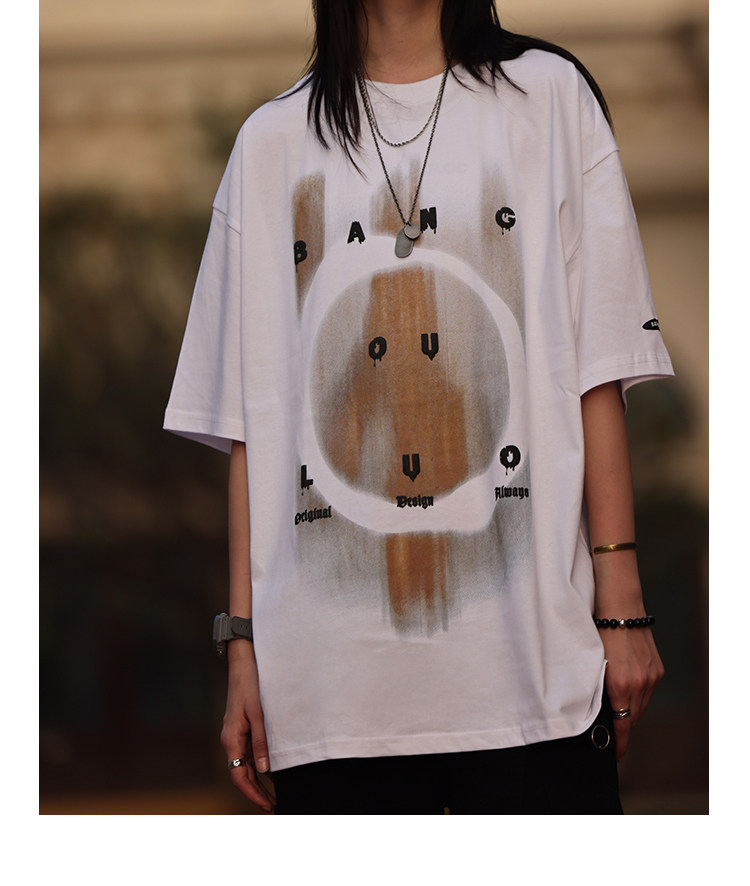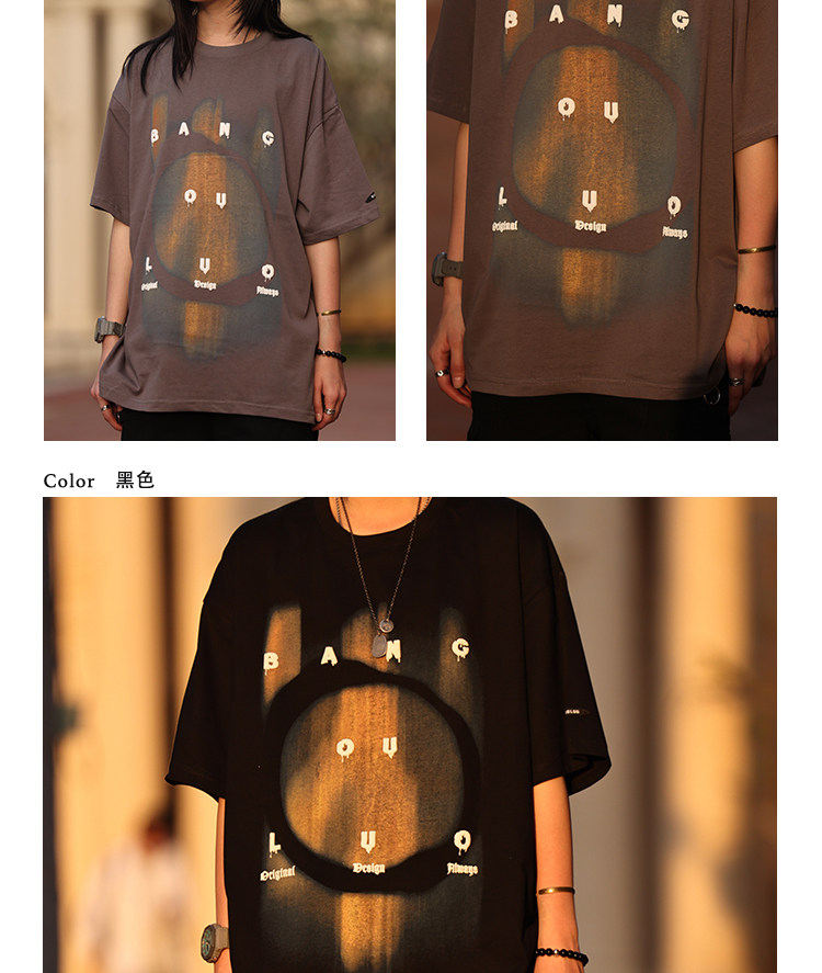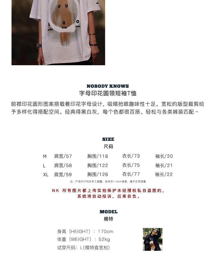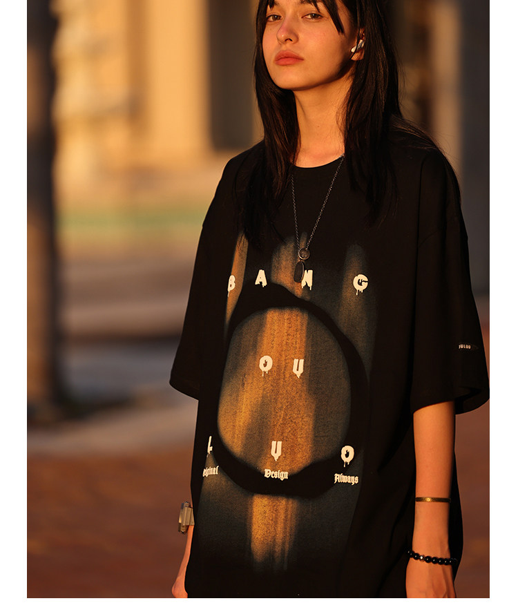 Nobodyknows夏季T恤模糊字母印花新款休閒百搭男女時尚圓領短袖