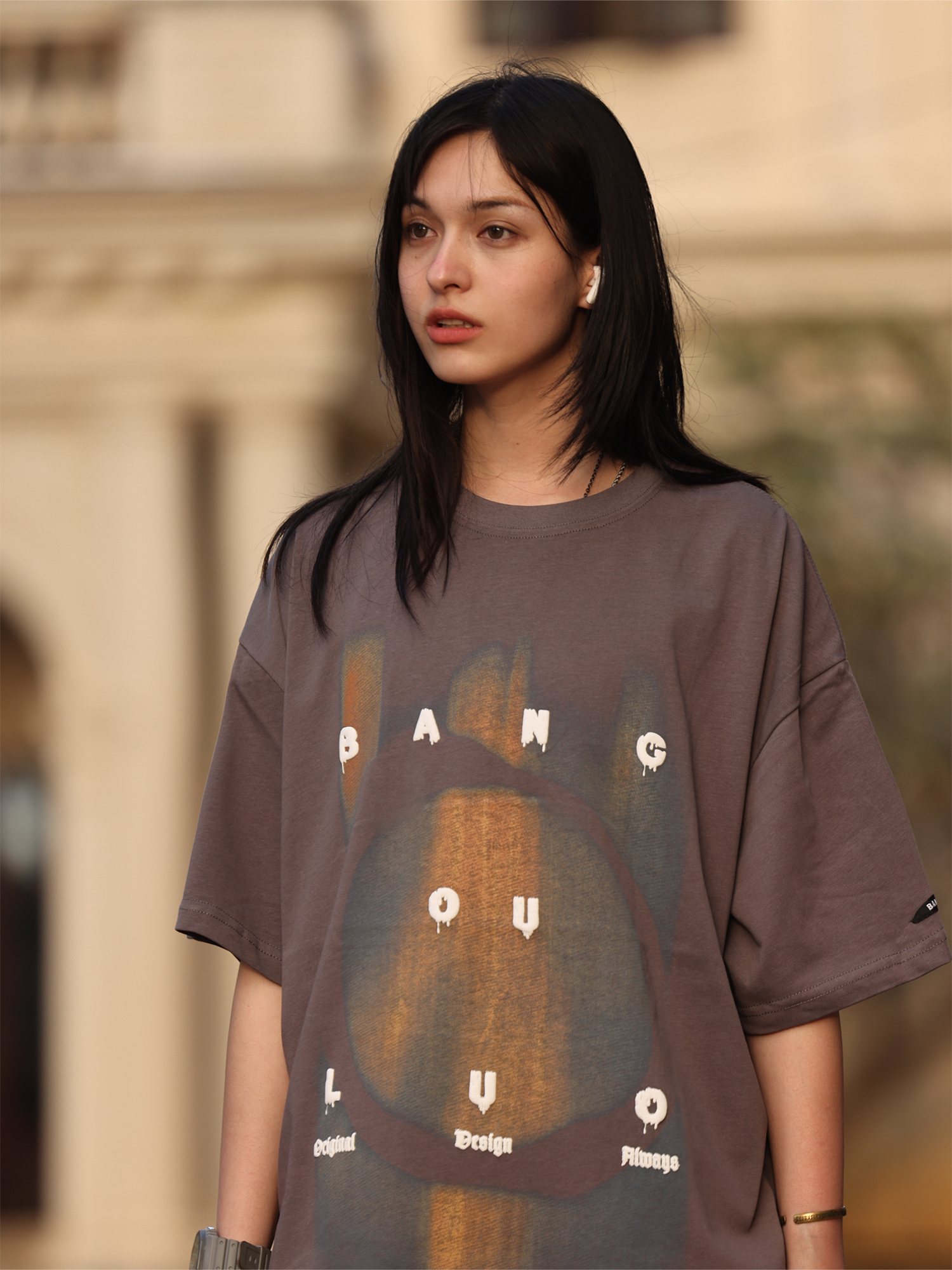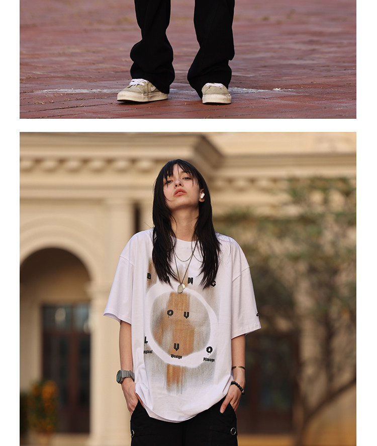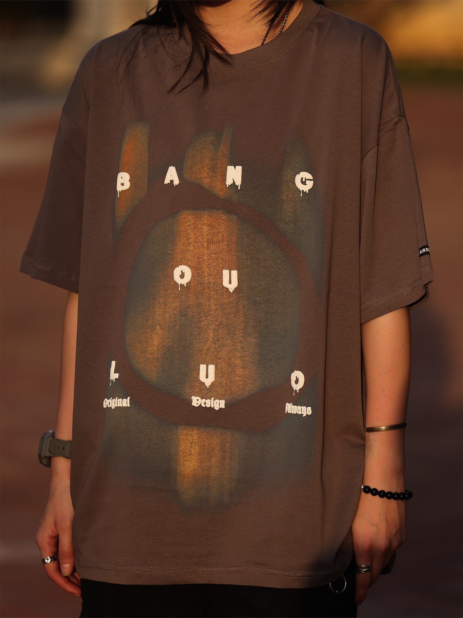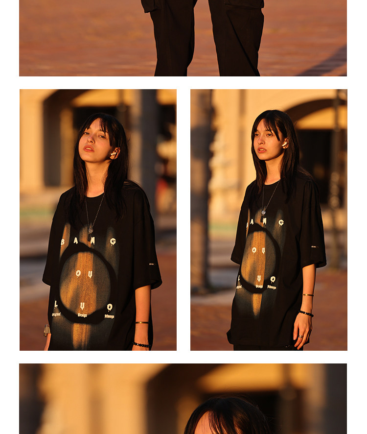 Nobodyknows夏季T恤模糊字母印花新款休閒百搭男女時尚圓領短袖