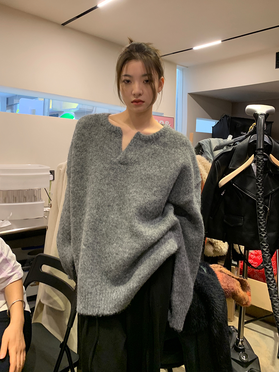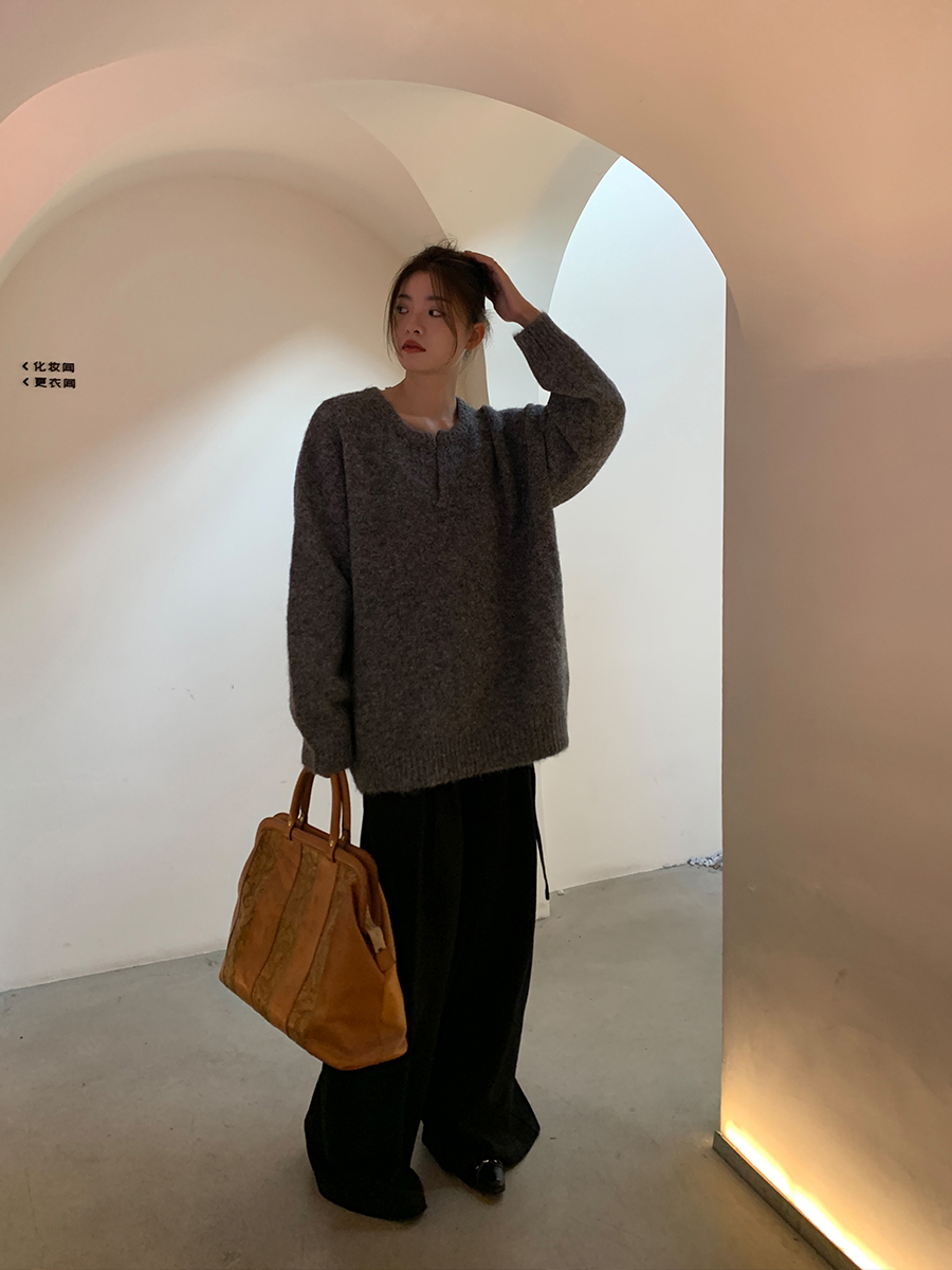 洛邊 人手一件!羊毛寬鬆針織毛衣套頭百搭慵懶風顯瘦上衣秋冬女