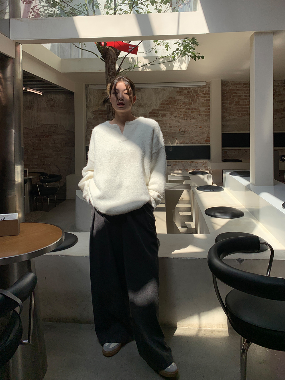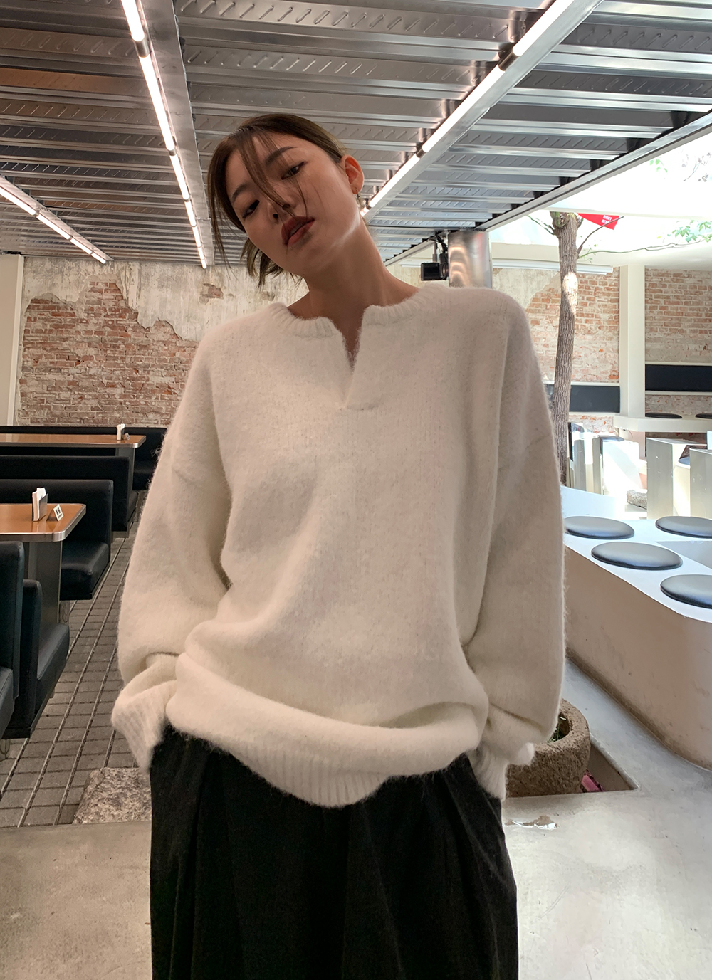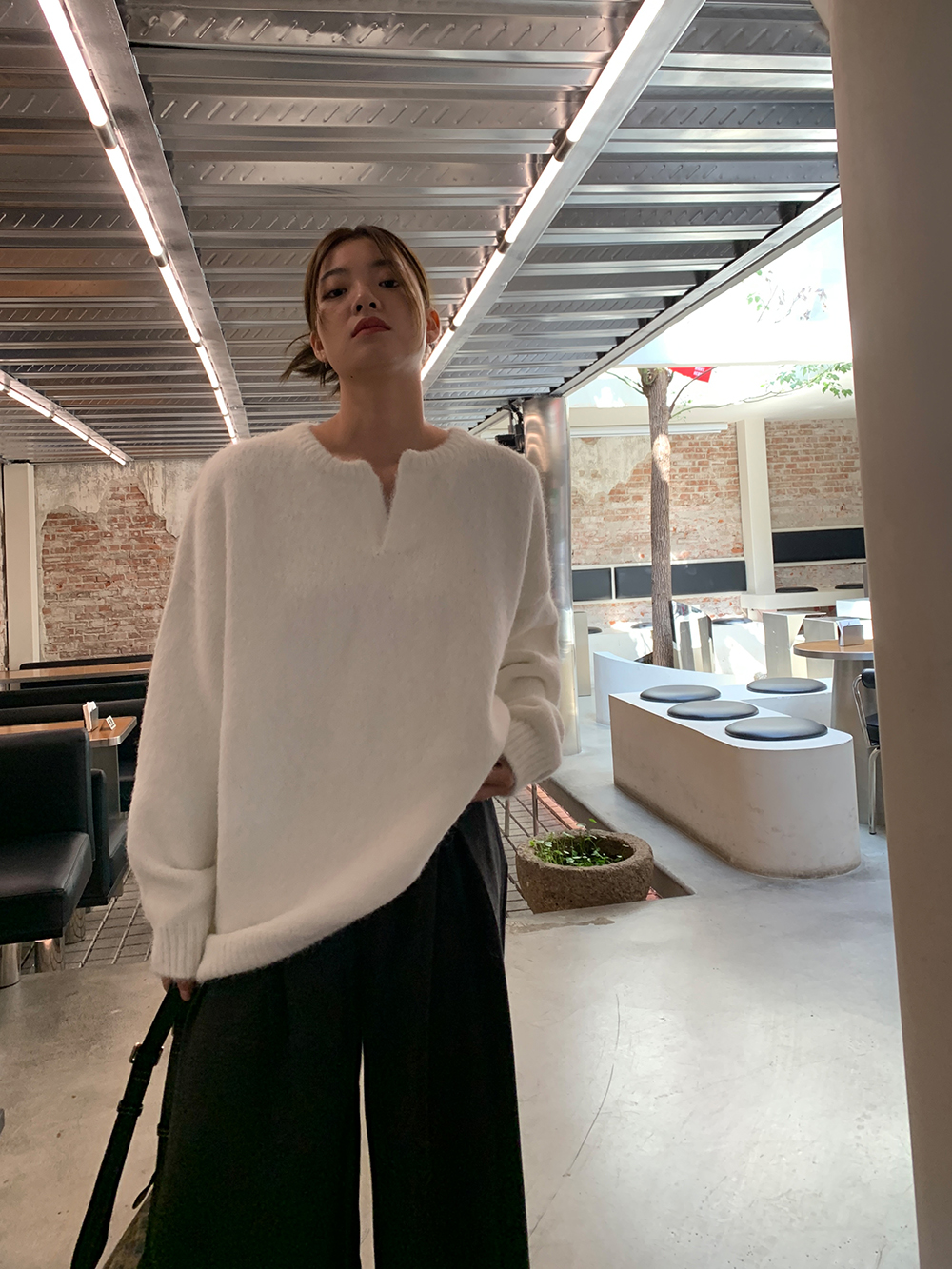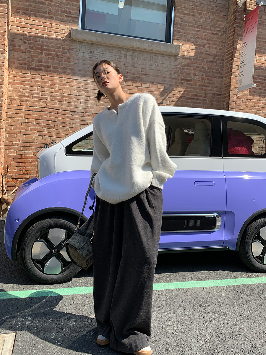 一个小V领,非常百搭,那种简约和不简单,