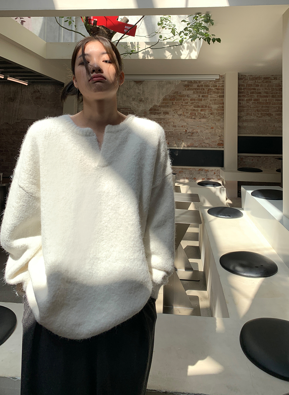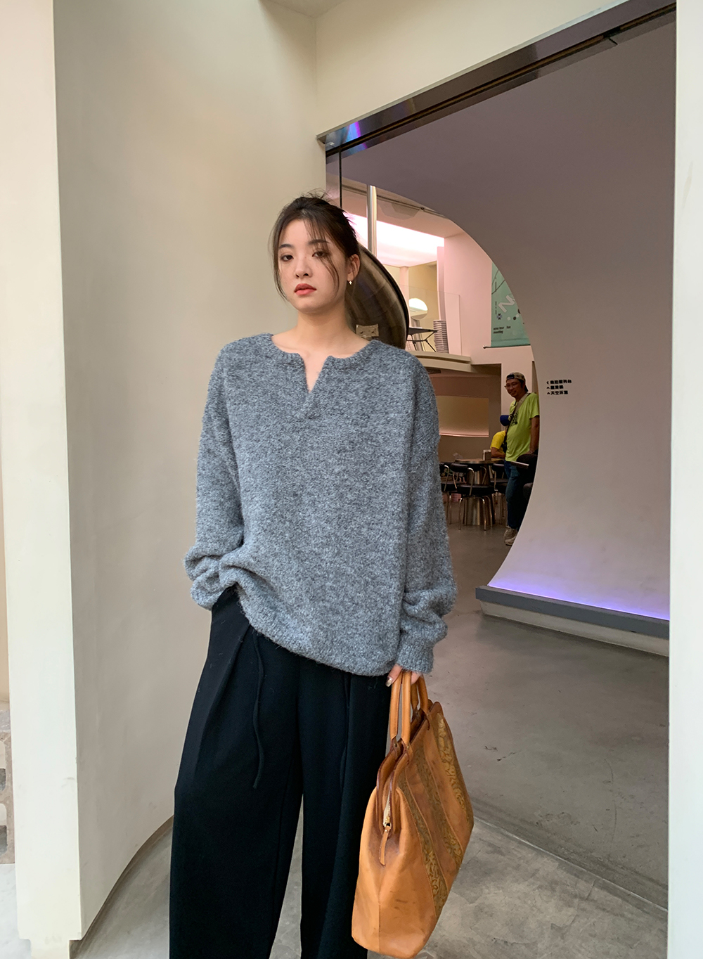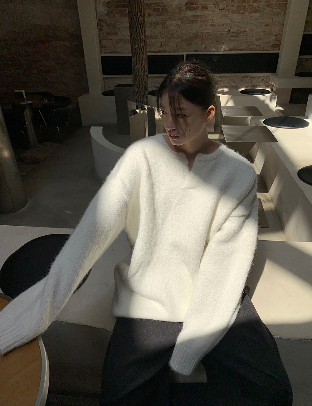 一个小V领,非常百搭,那种简约和不简单,
