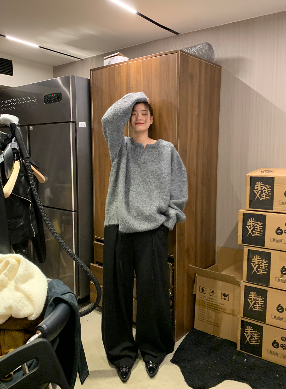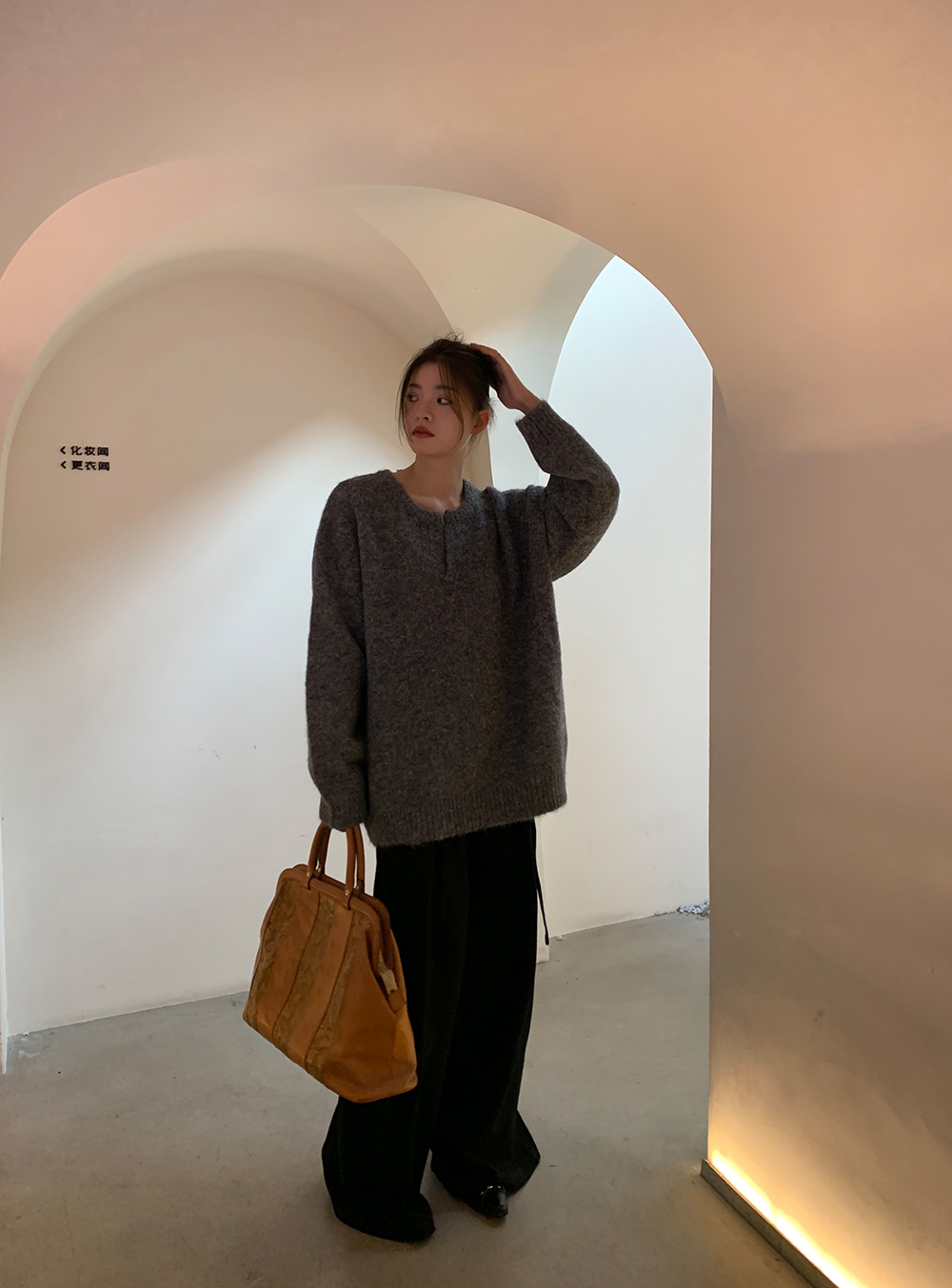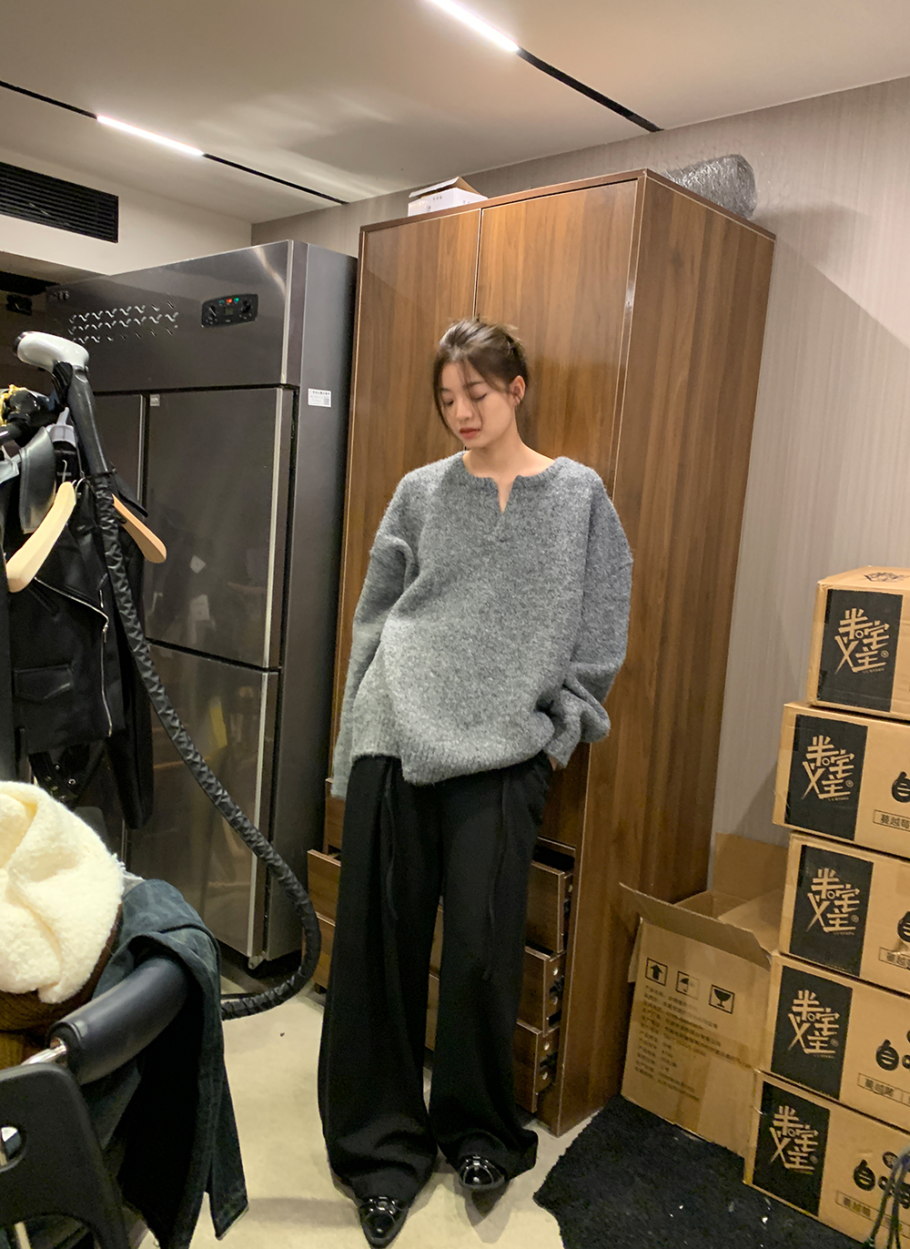 下面可以搭配我们家的灰色西装裤,