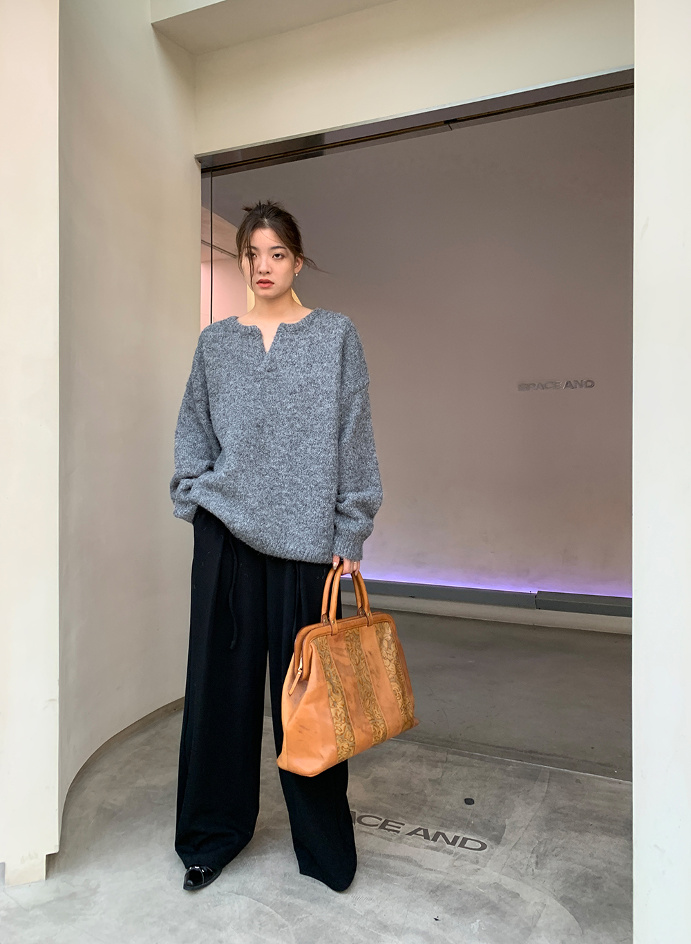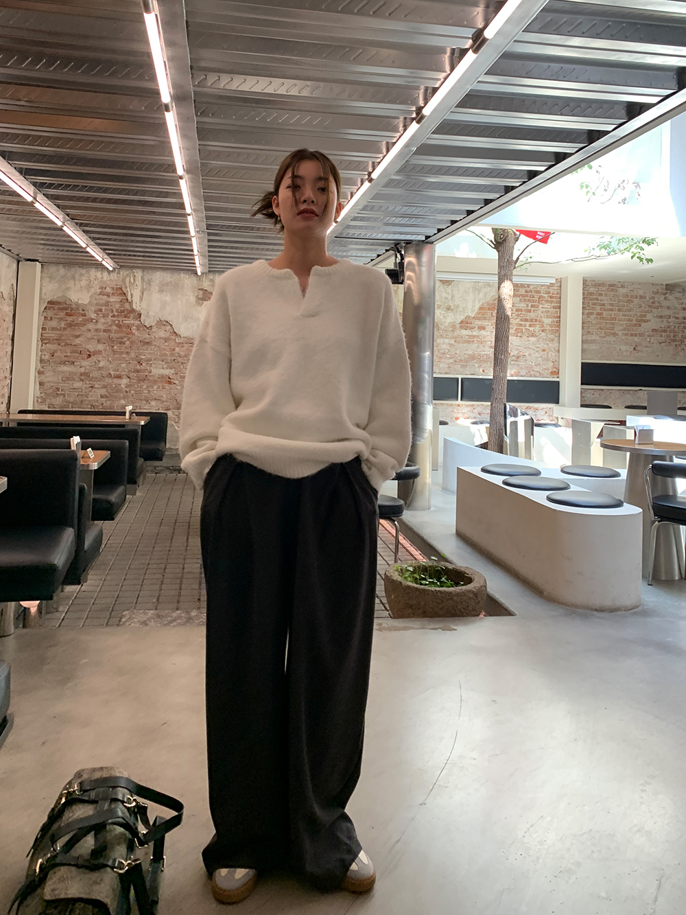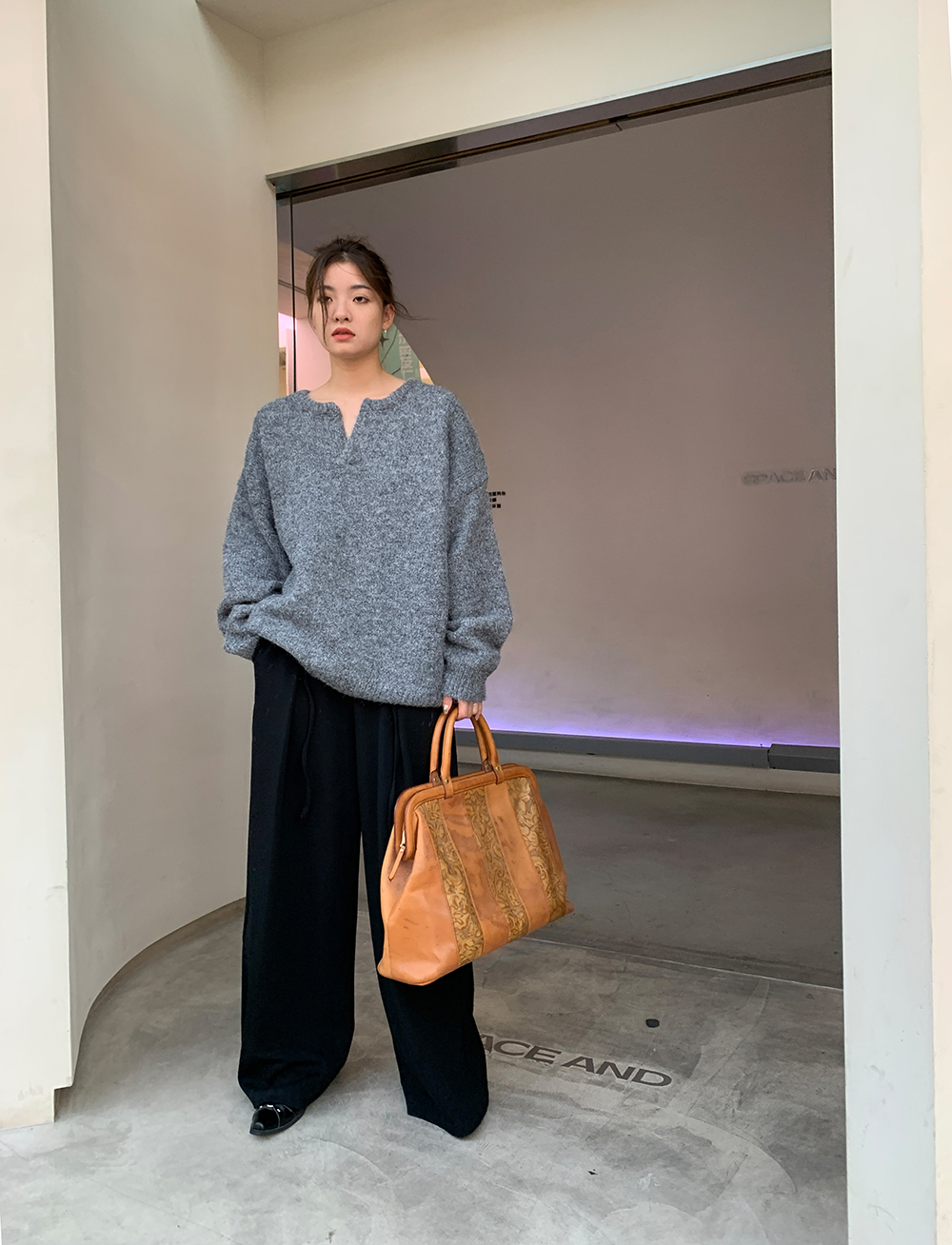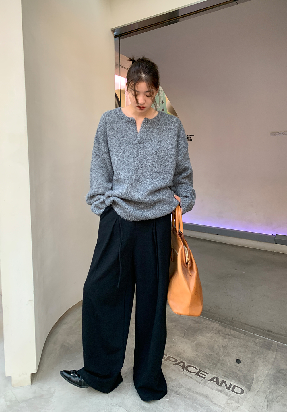 下面可以搭配我们家的灰色西装裤,