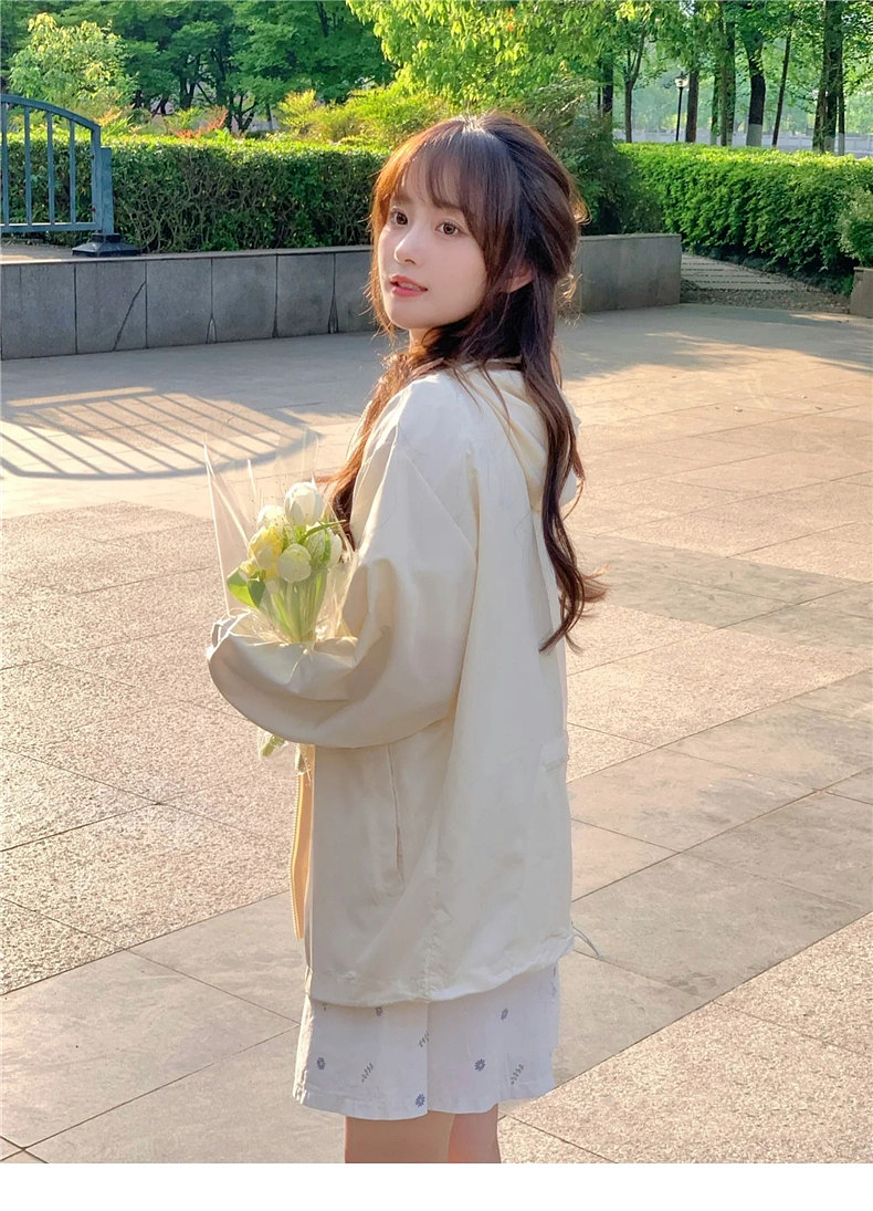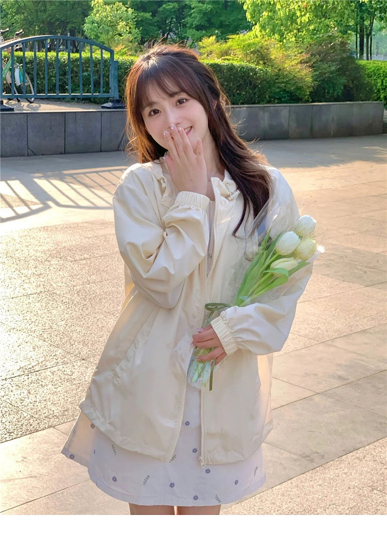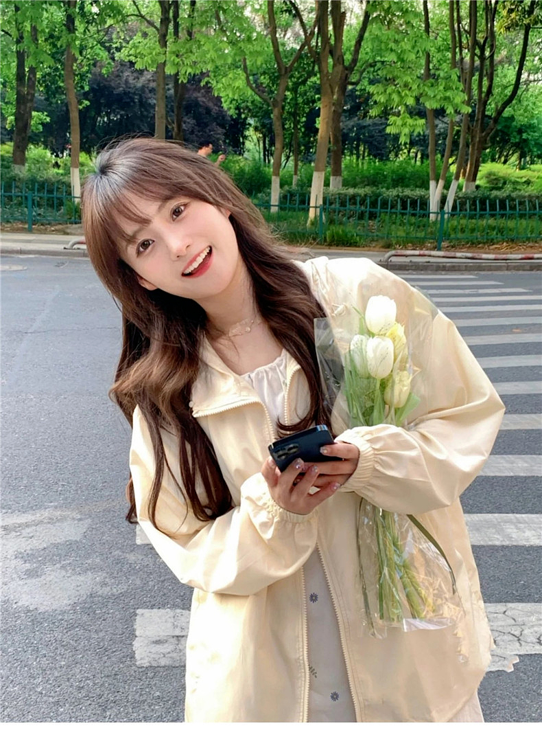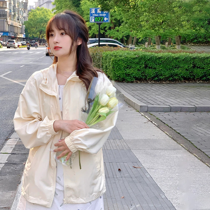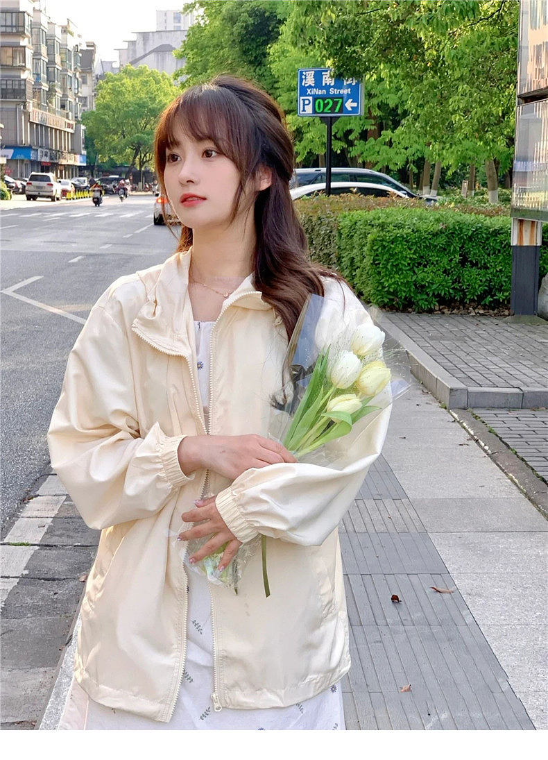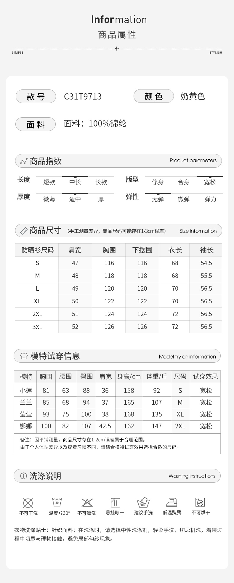 奶黃色防曬衣女款薄款夏季新款寬鬆透氣戶外騎行小個子防曬服外套