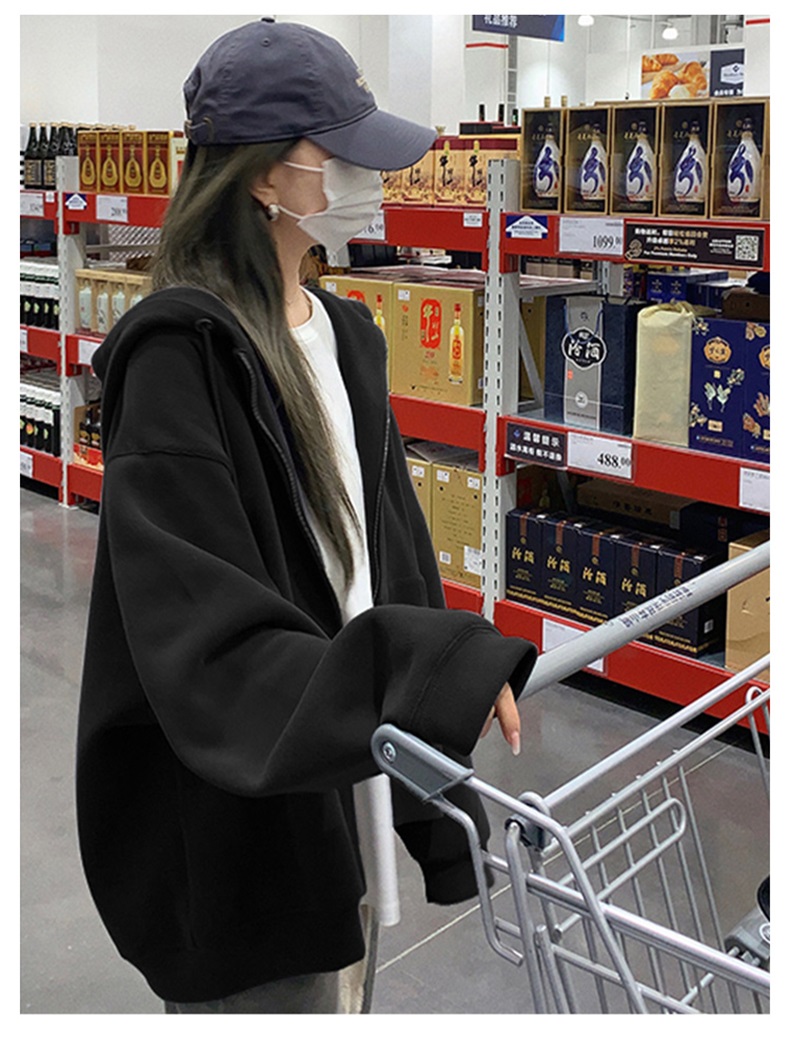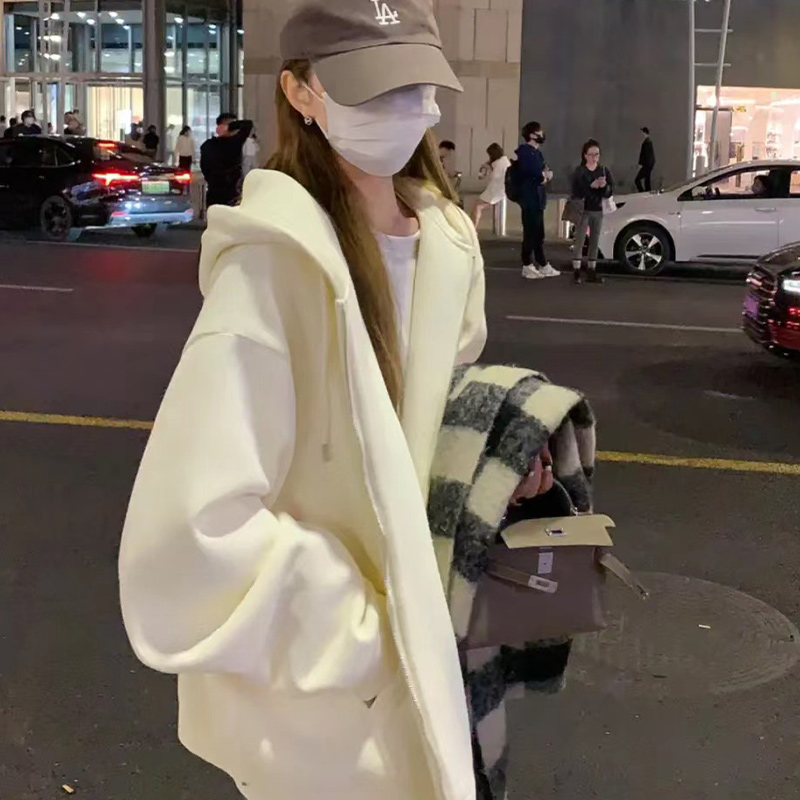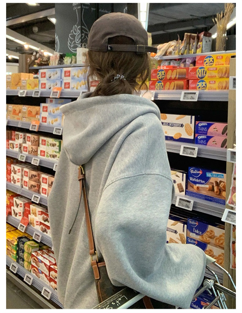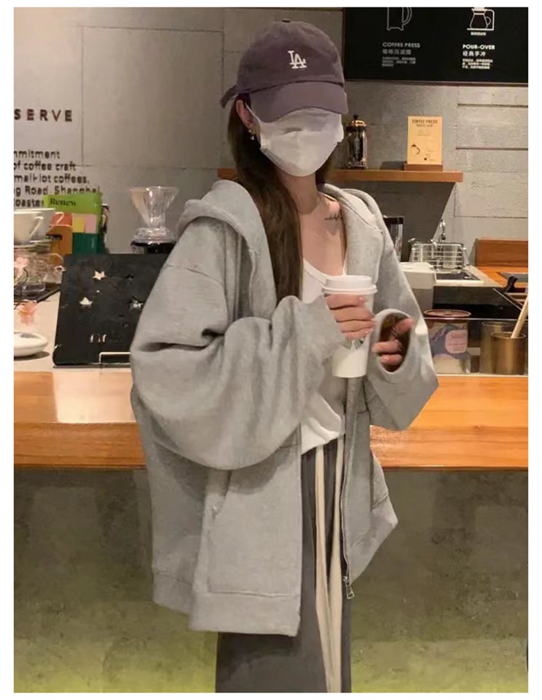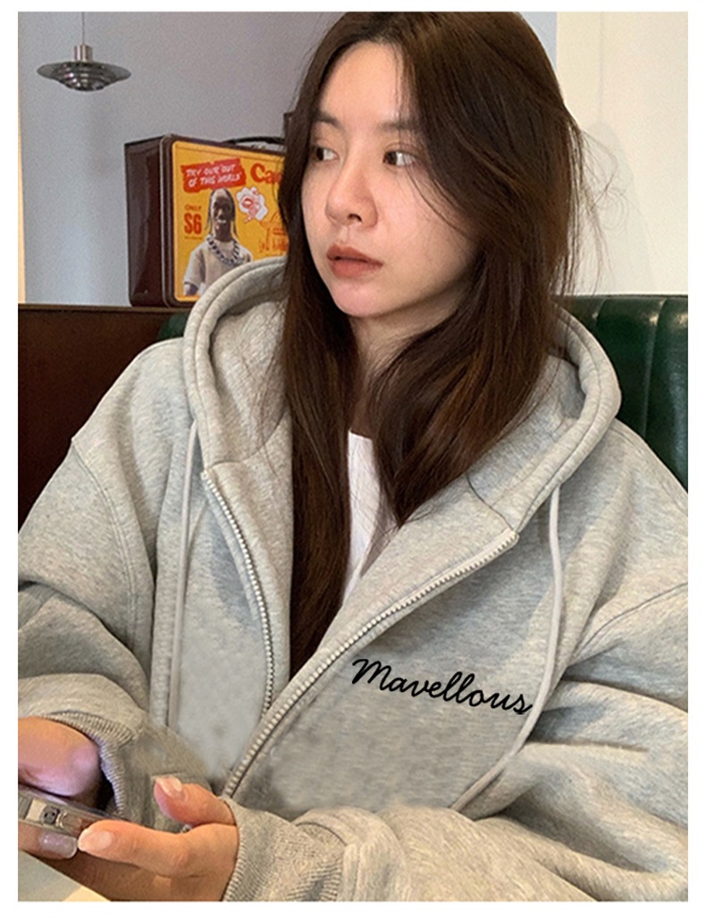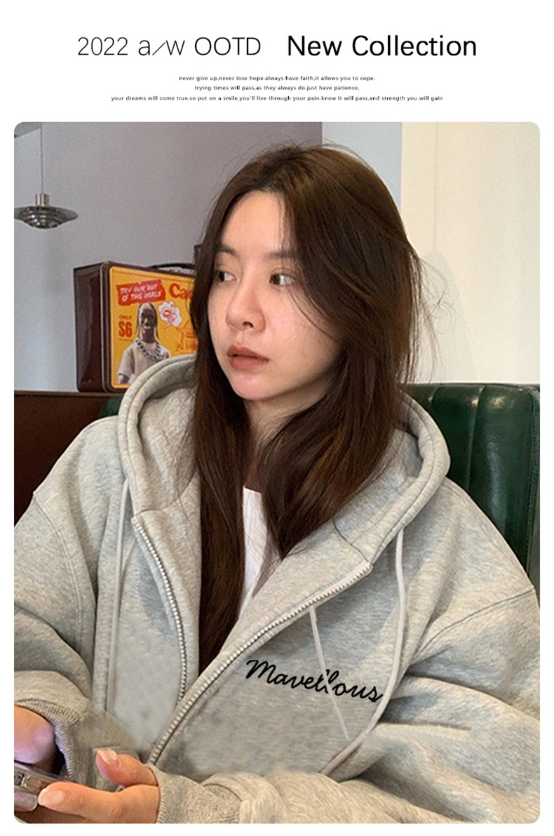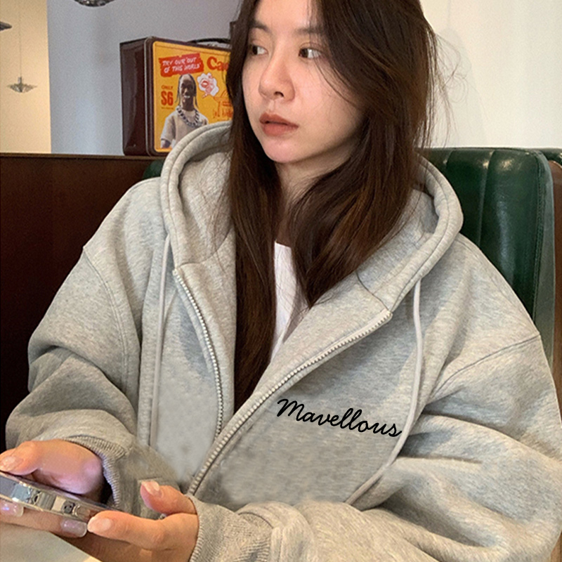外套連帽運動衫女加絨春秋款拉鍊開衫灰美式加厚秋冬季oversize上衣