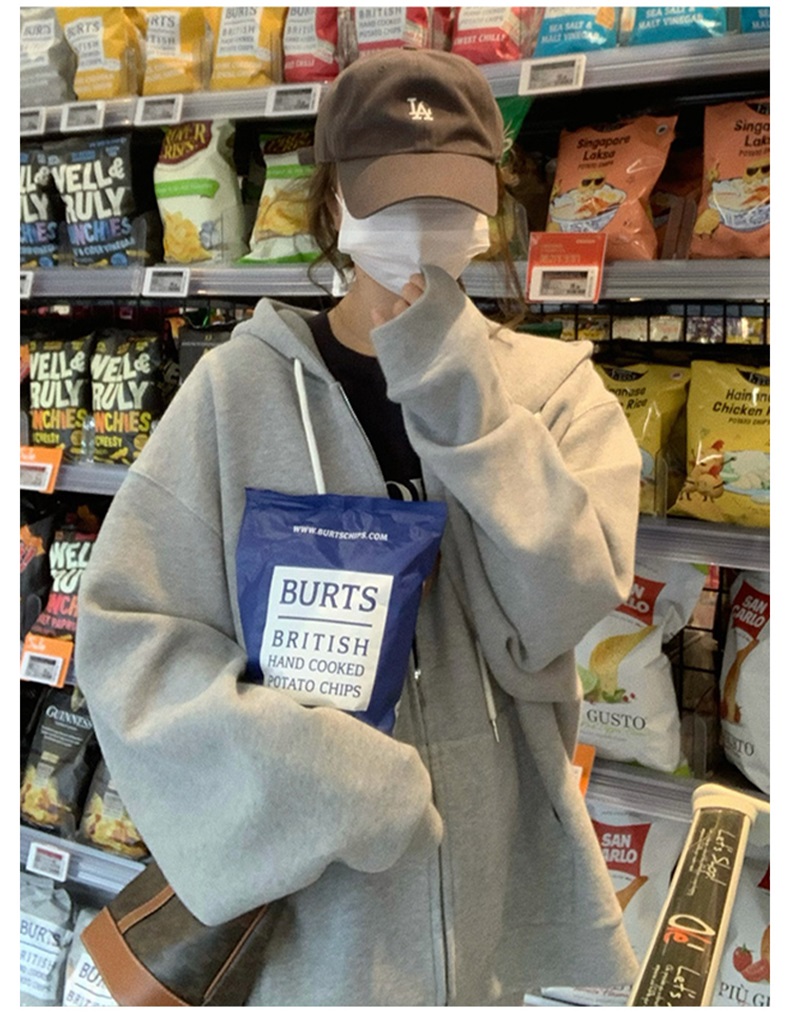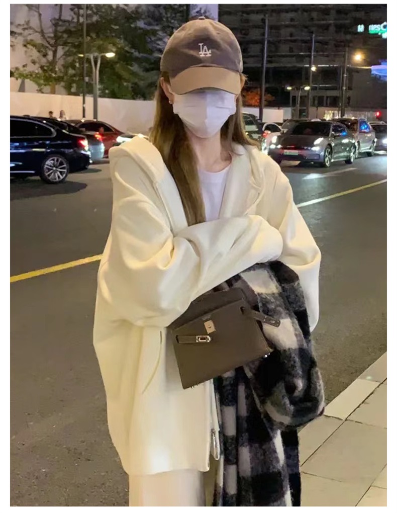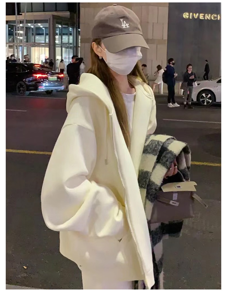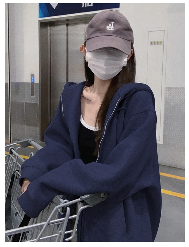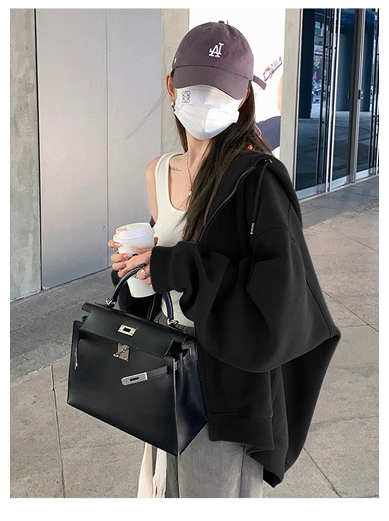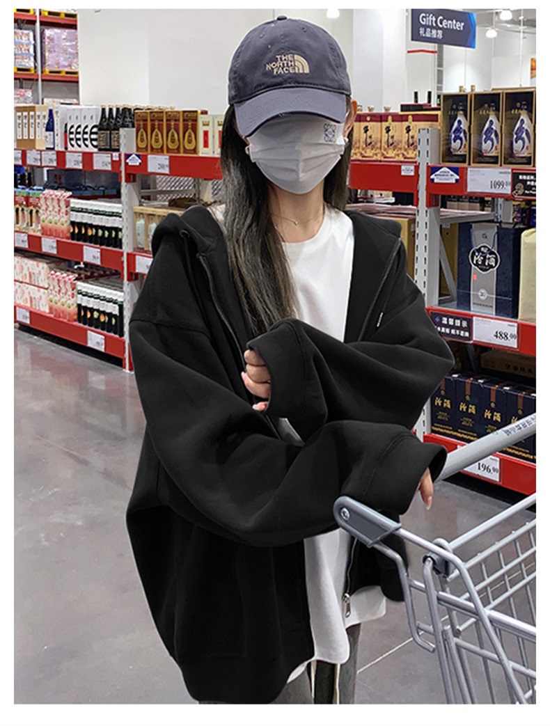 外套連帽運動衫女加絨春秋款拉鍊開衫灰美式加厚秋冬季oversize上衣