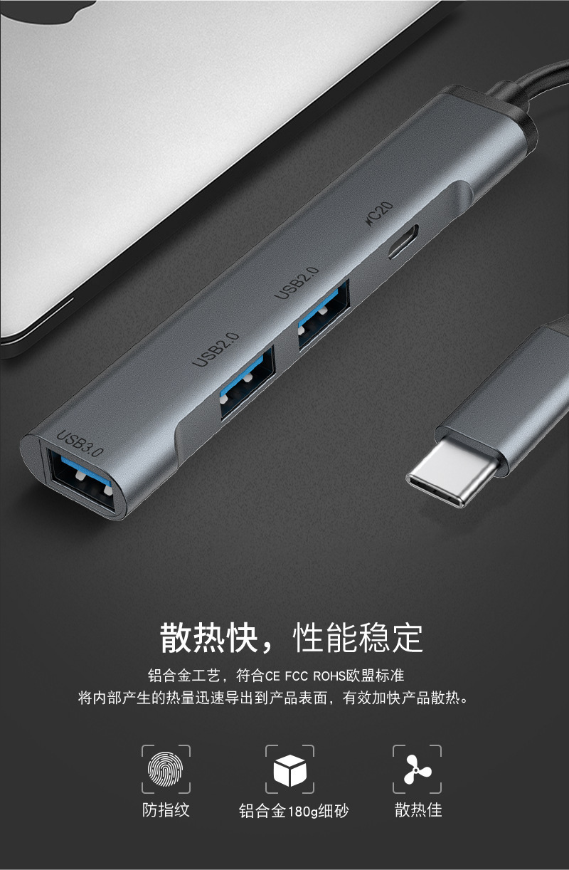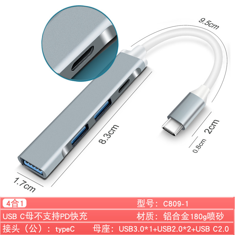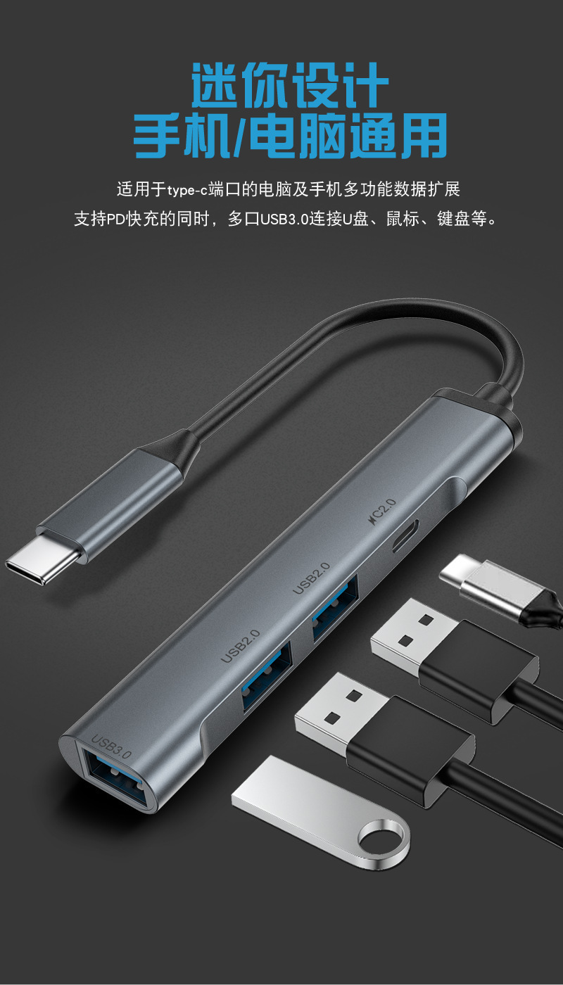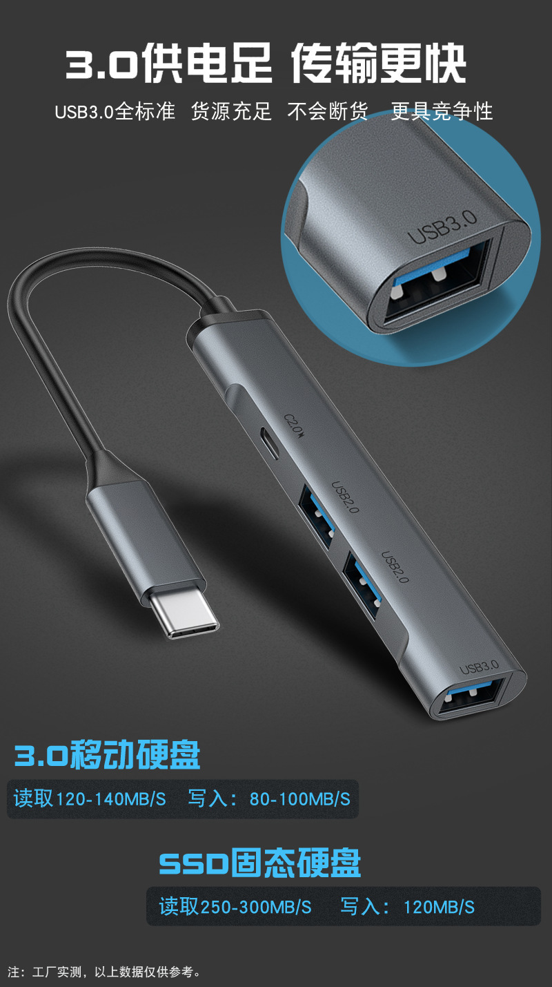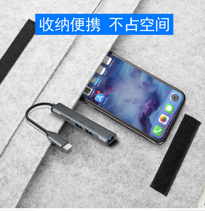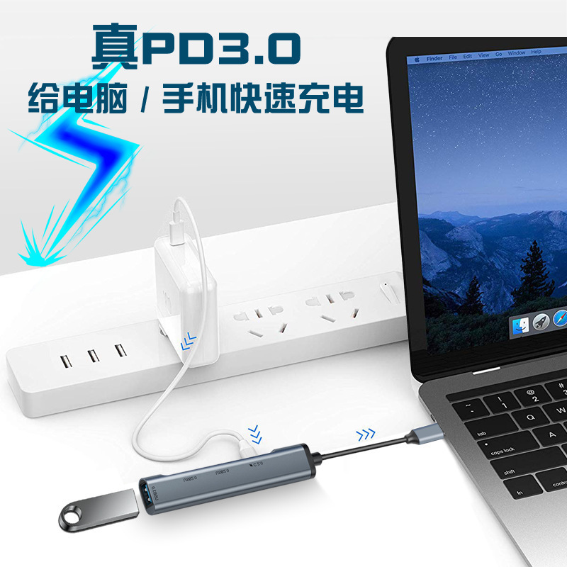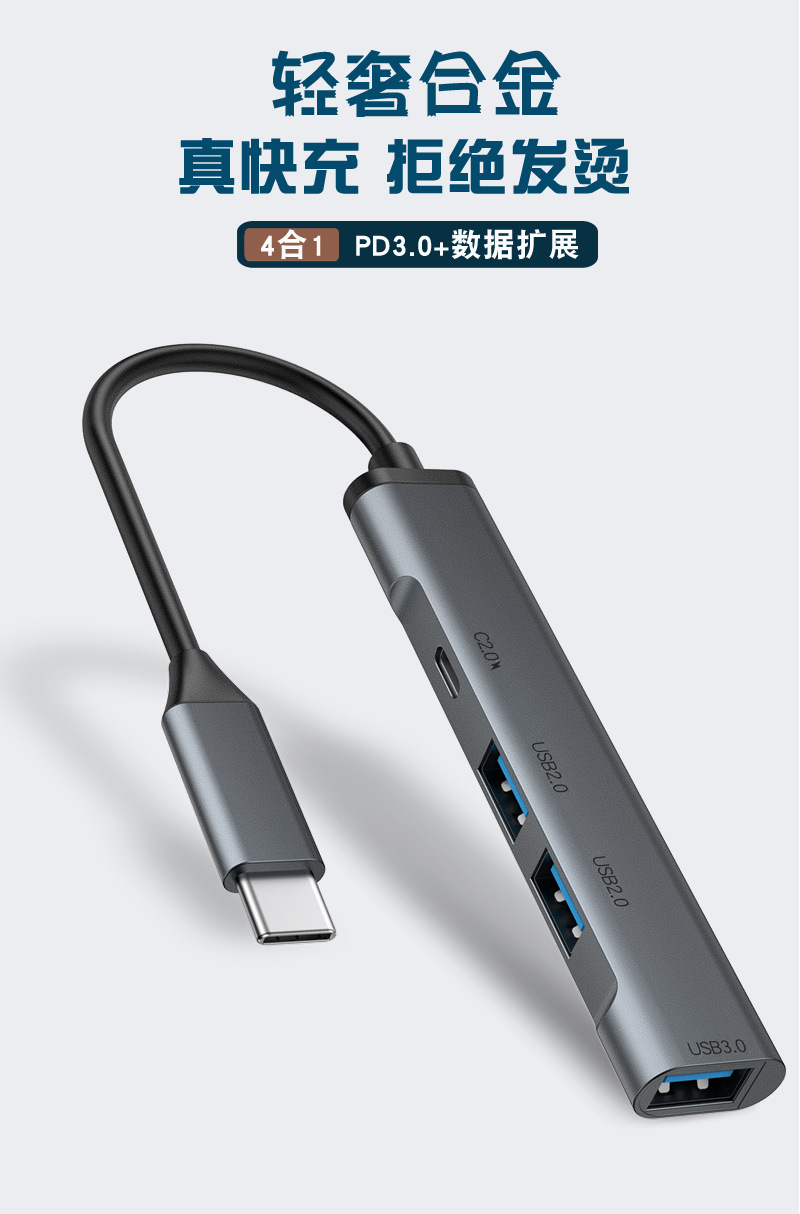 USB HUB扩展器真PD快充电手机集分线器四口兼M1笔记本TypeC拓展坞