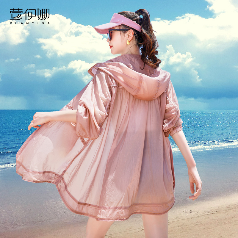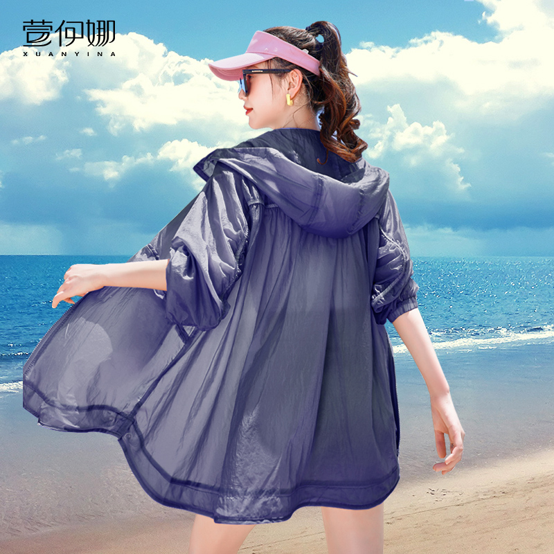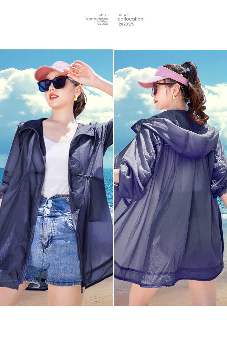 防曬衣女夏季2023新款中長版長袖時尚寬鬆薄款透氣罩衫防曬服外套