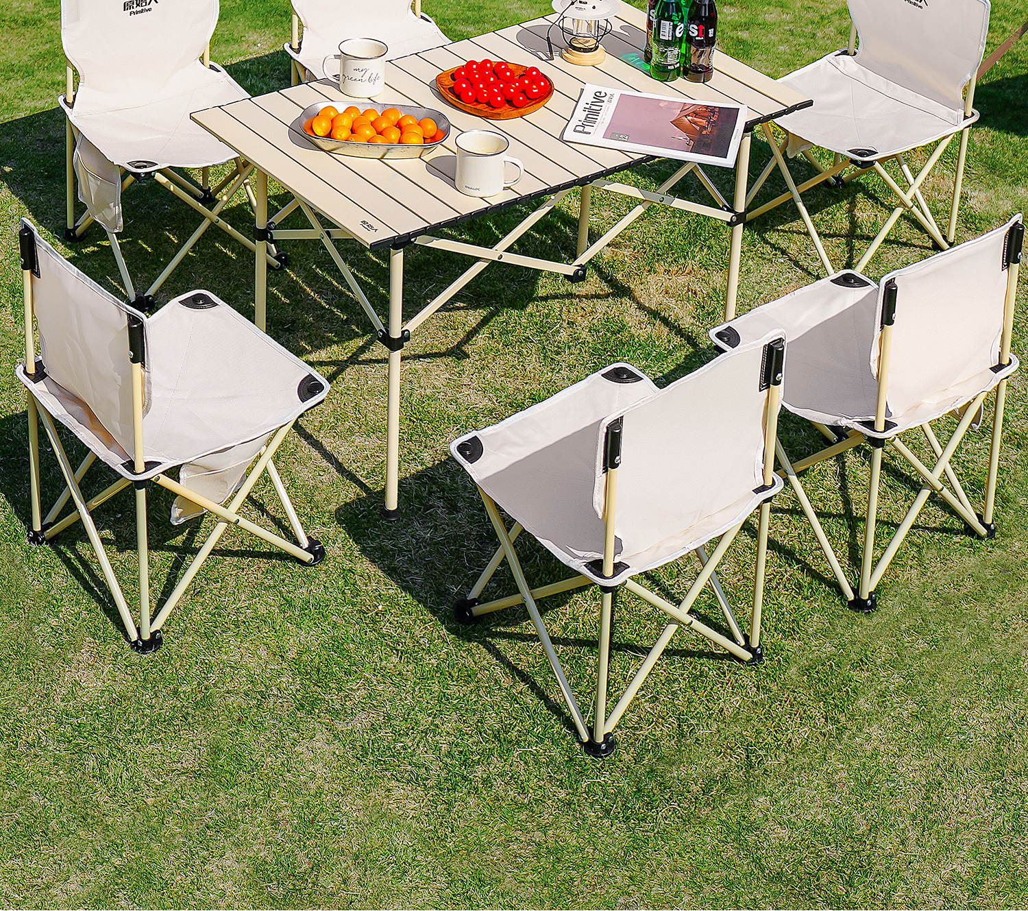 原始人戶外摺疊桌椅野外可攜式桌子套裝露營野餐桌裝備野營蛋卷桌