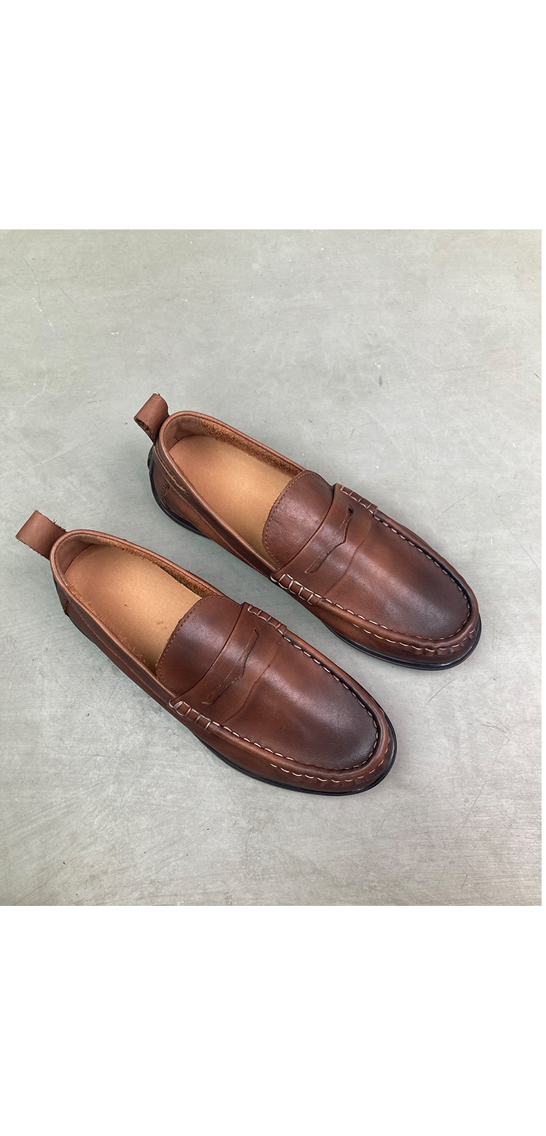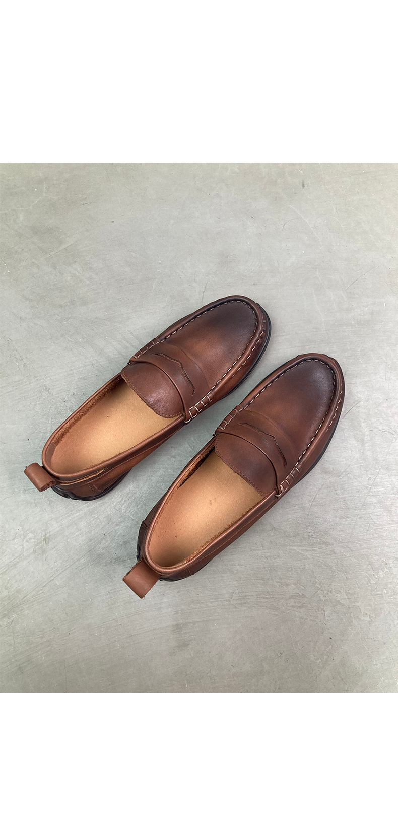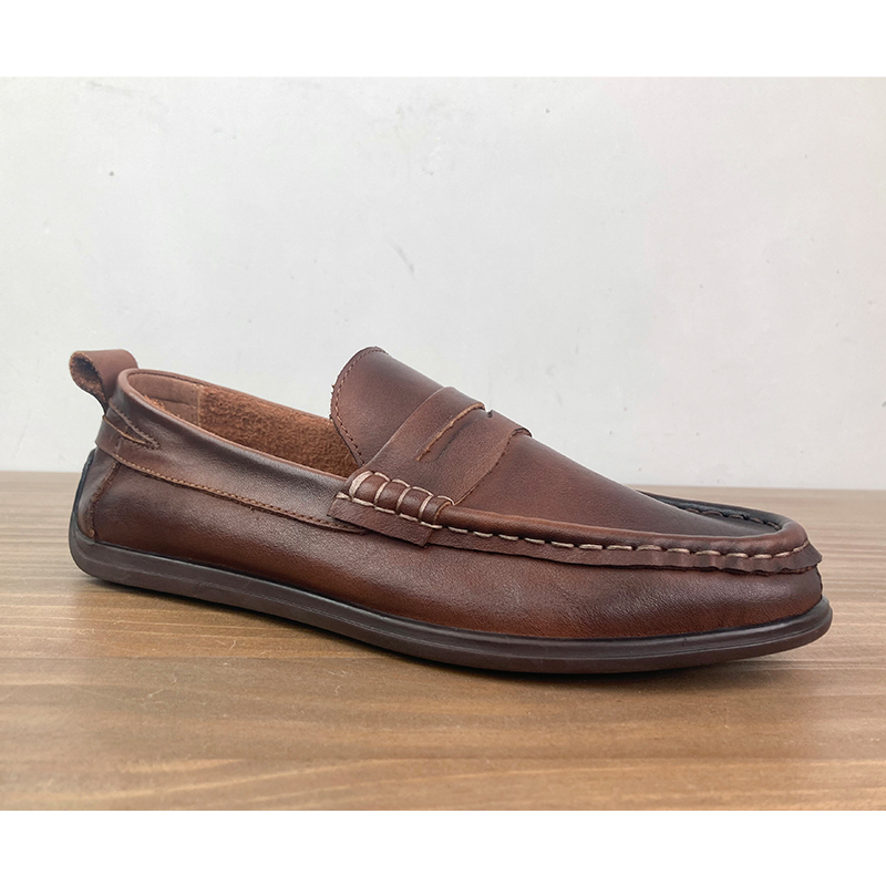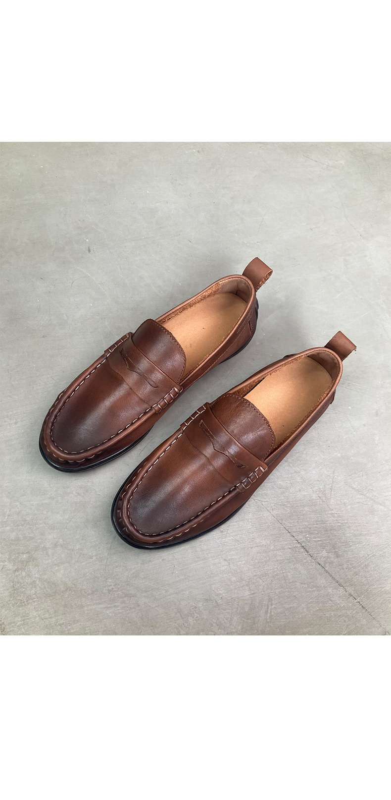 男鞋真皮一腳蹬休閒鞋平跟棕色豆豆鞋軟底輕便小皮鞋套腳懶人鞋男