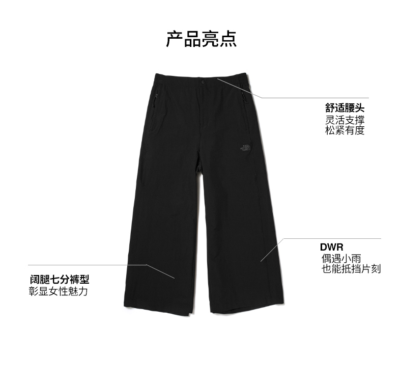 TheNorthFace北面長褲女戶外防潑水時尚闊腿新款|7WBX