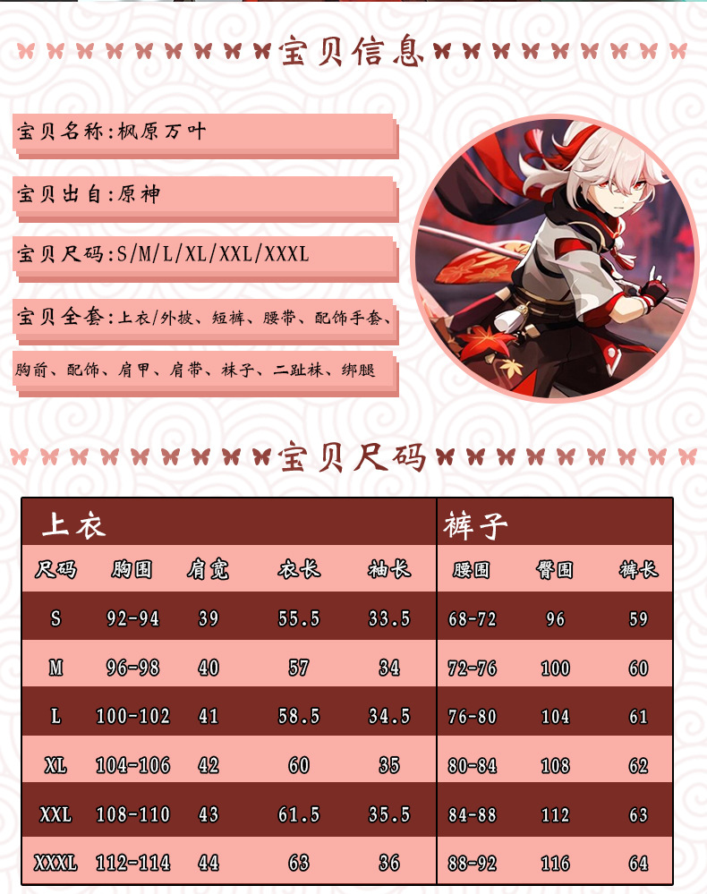 颜色 枫原万叶衣服全套送神之眼,枫原万叶【假发】,万叶长刀(104CM),万叶短刀(75CM)