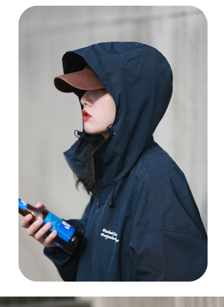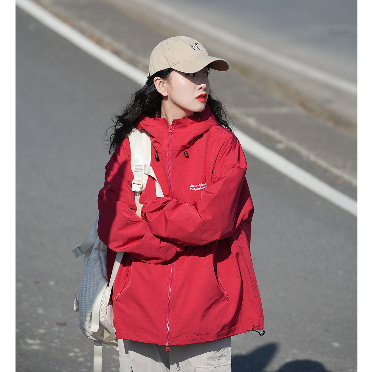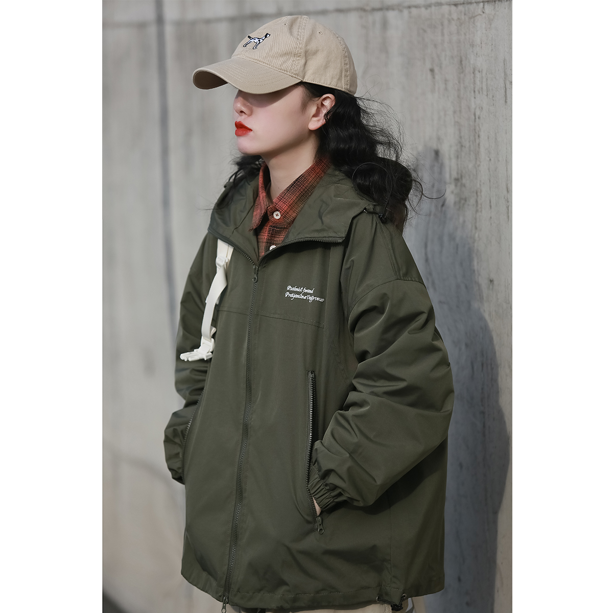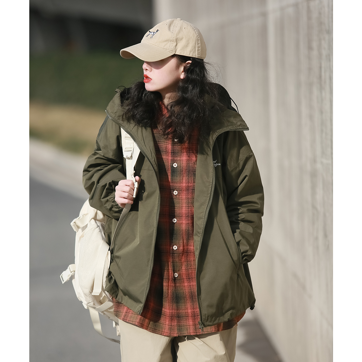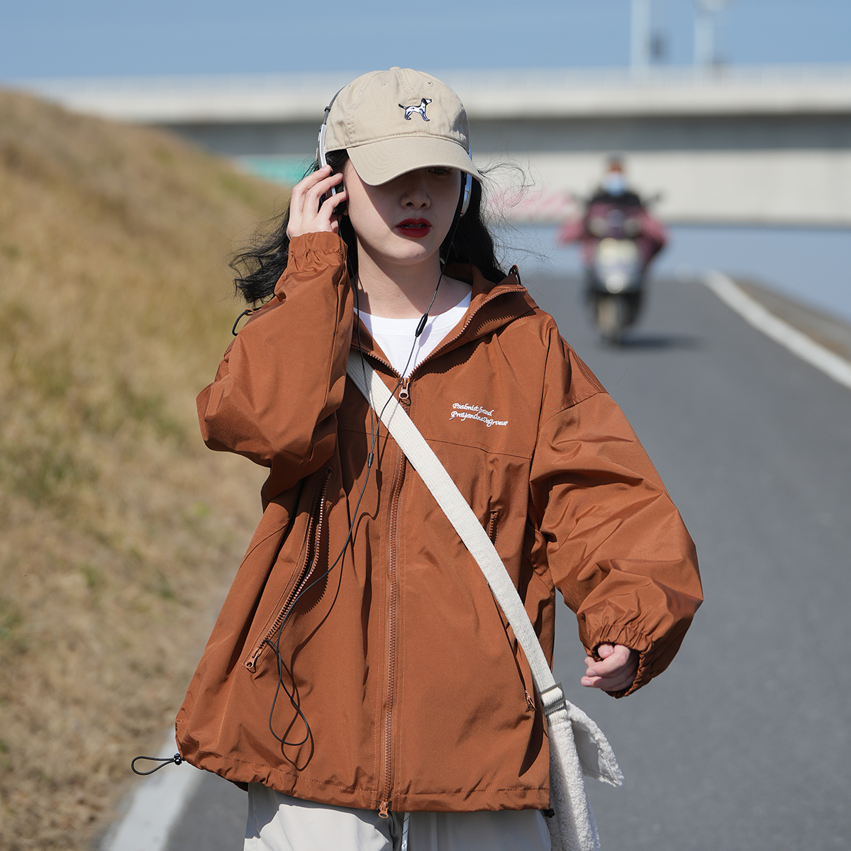 2023春秋新款連帽衝鋒衣外套女戶外防水抗風設計感刺繡工裝開衫潮