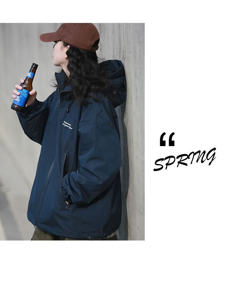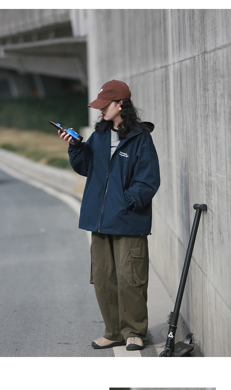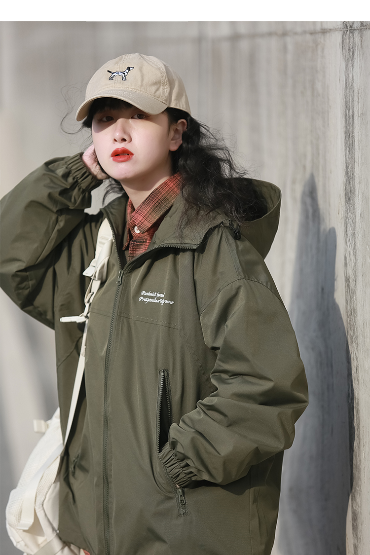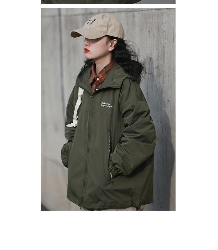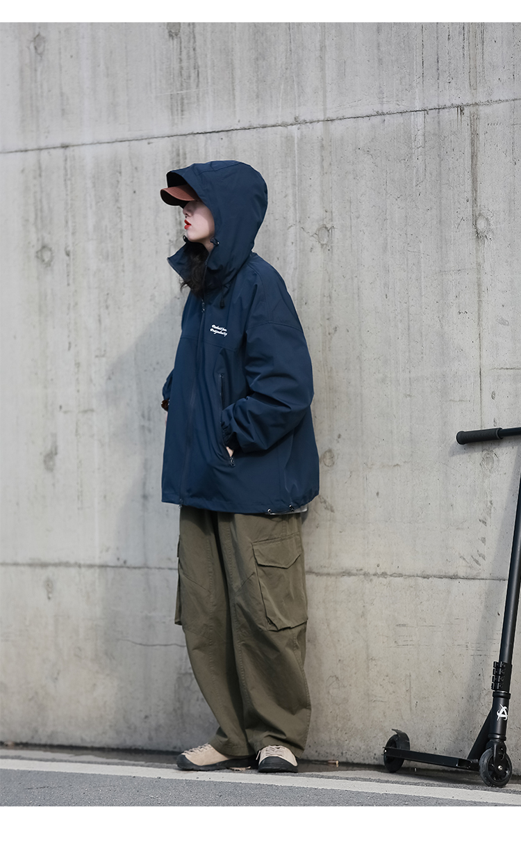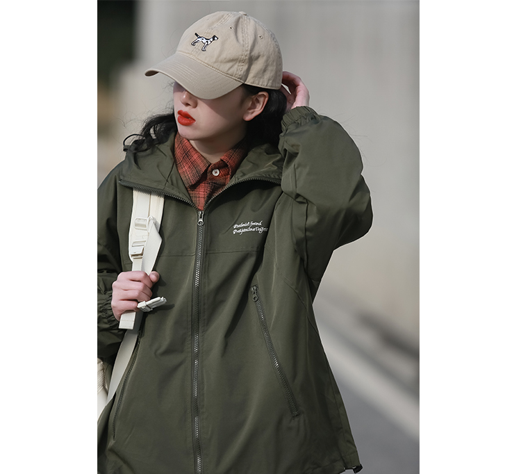 2023春秋新款連帽衝鋒衣外套女戶外防水抗風設計感刺繡工裝開衫潮