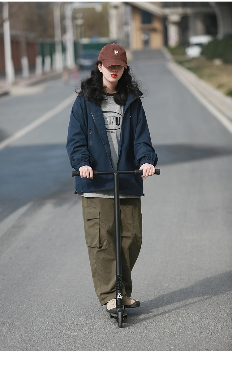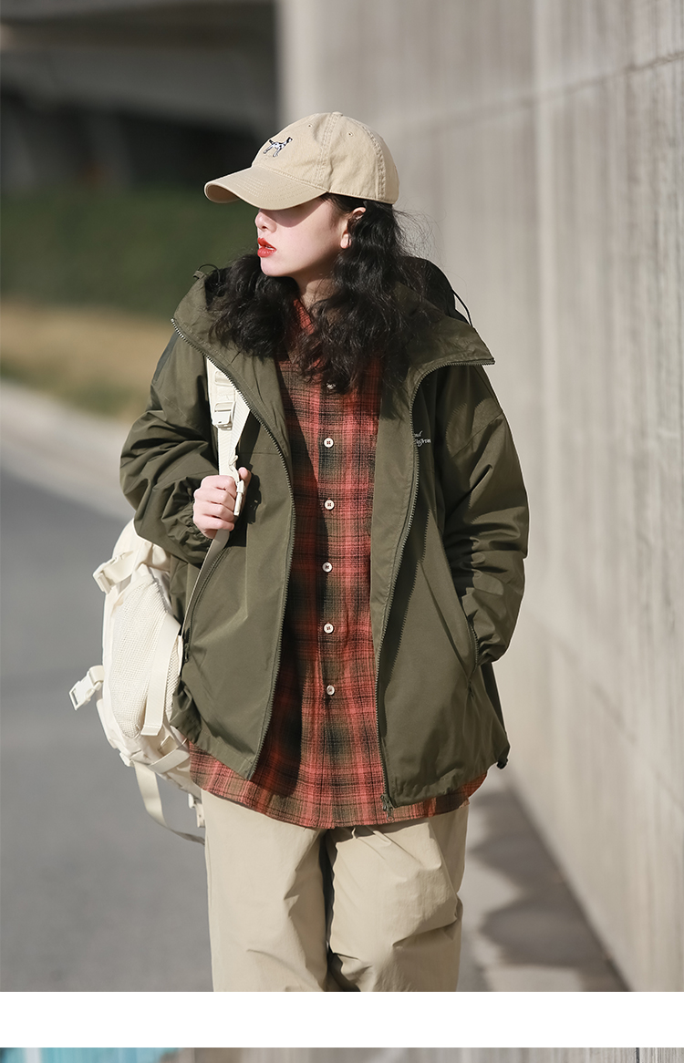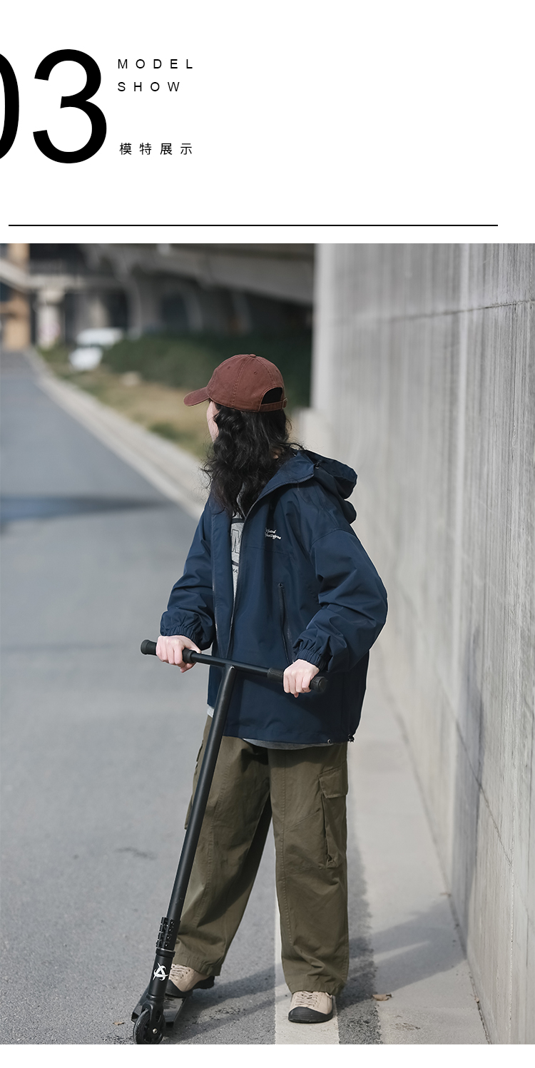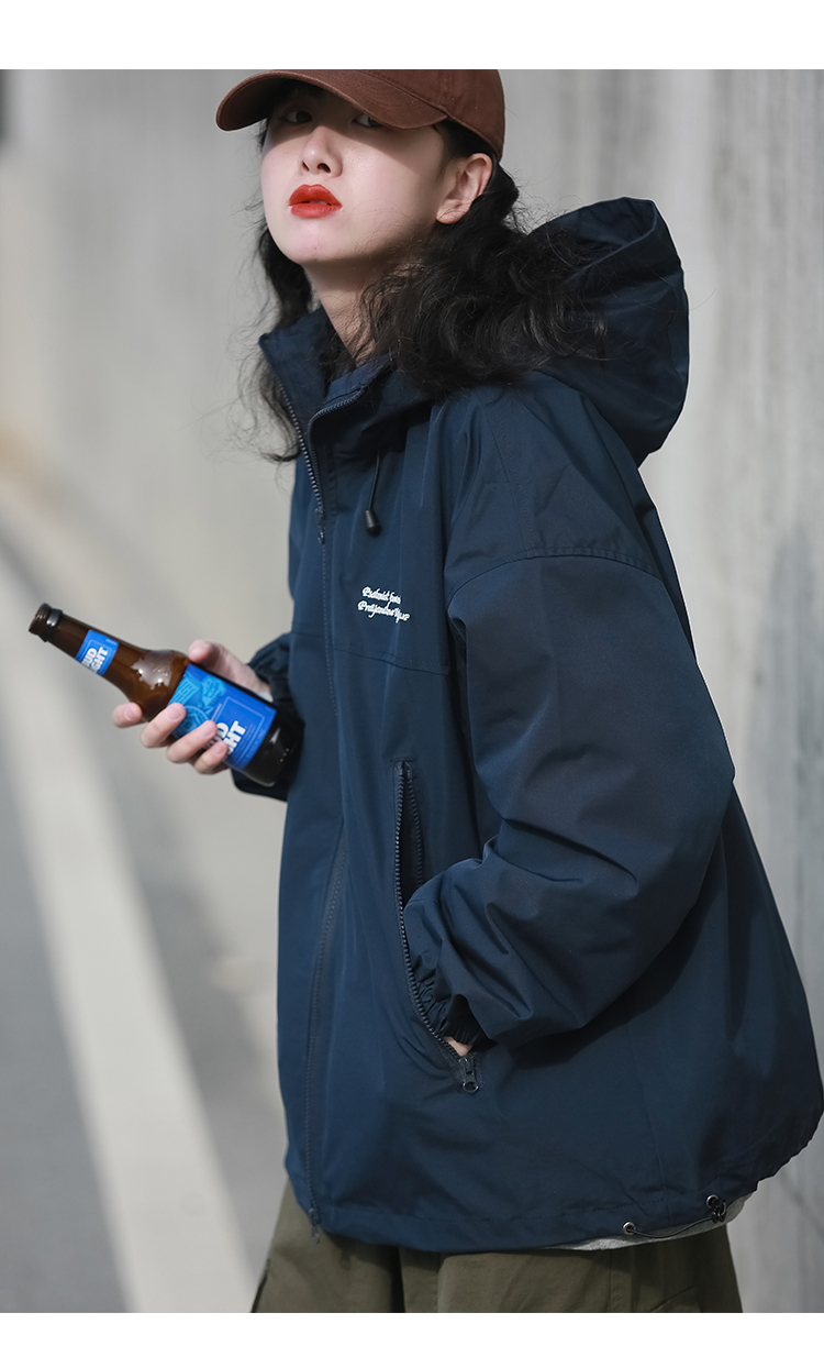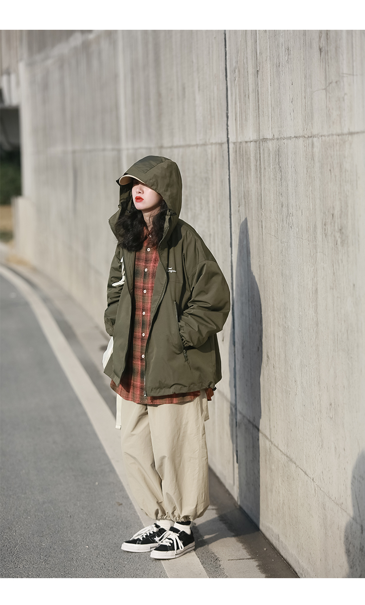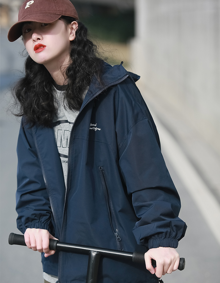 2023春秋新款連帽衝鋒衣外套女戶外防水抗風設計感刺繡工裝開衫潮
