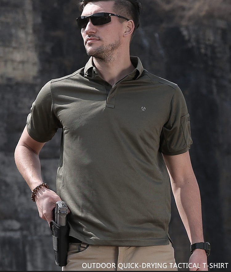 執政官速乾短袖t恤男夏季輕薄軍迷戰術戶外運動半袖圓翻領POLO衫
