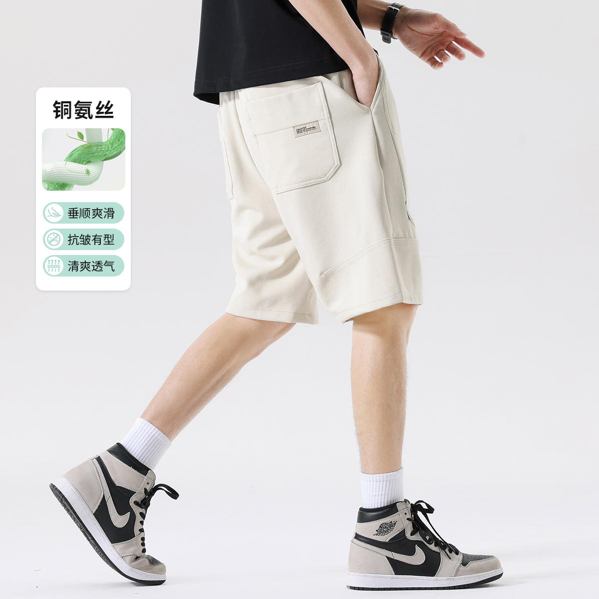 布衣傳說 抗皺銅氨絲 夏季工裝休閒短褲男款五分褲純色寬鬆五分褲潮