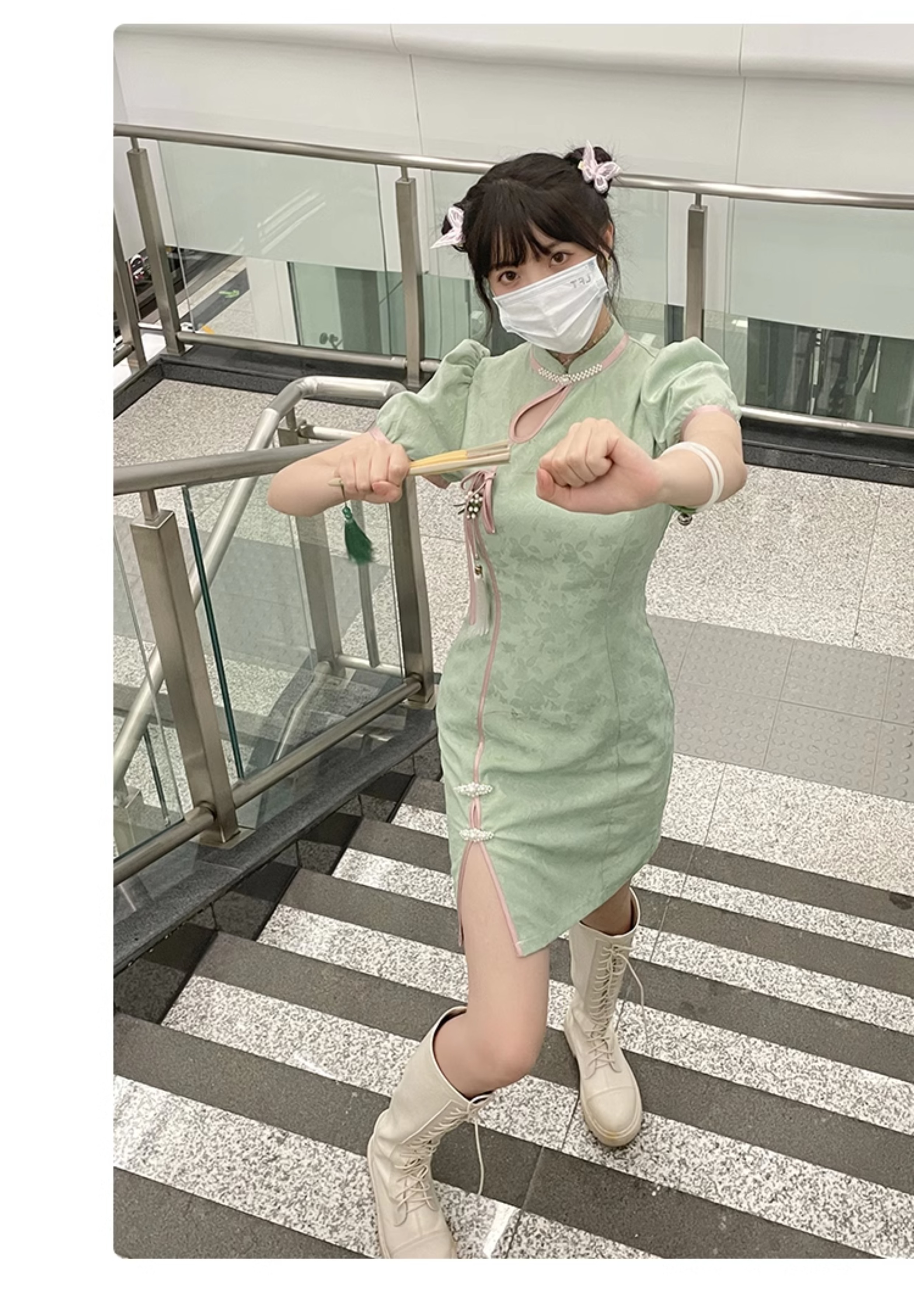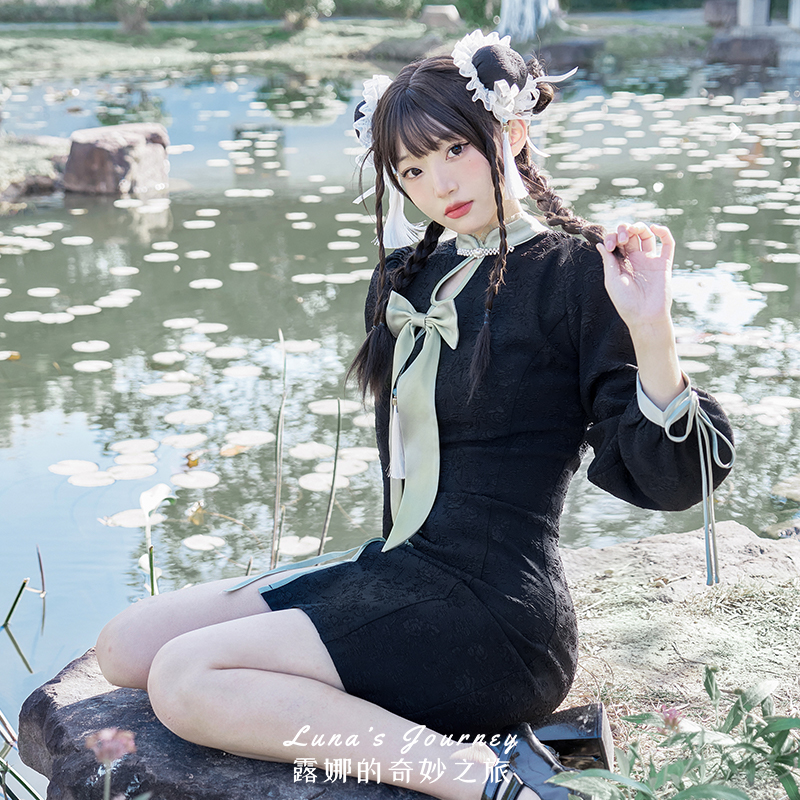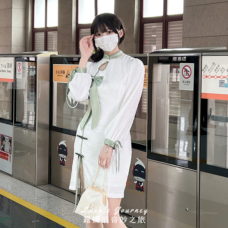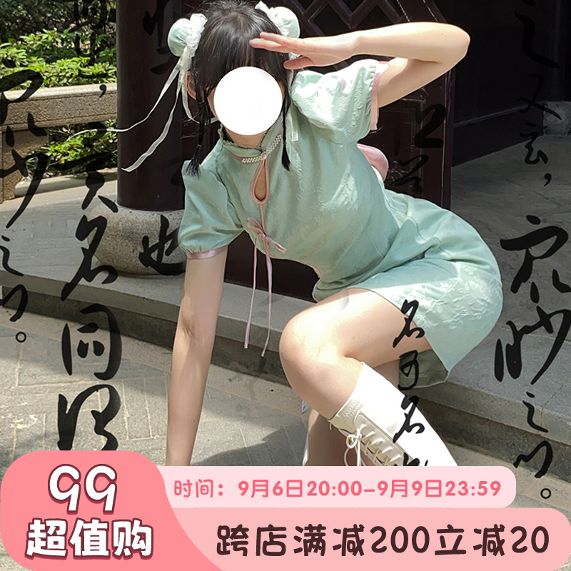 露娜改良旗袍女春夏漢元素綠色洋裝子新中式國風辣妹閨蜜裝短裙