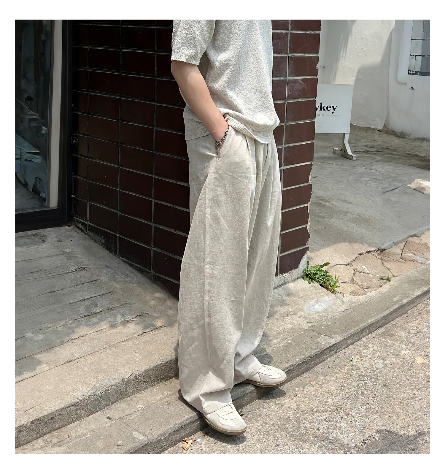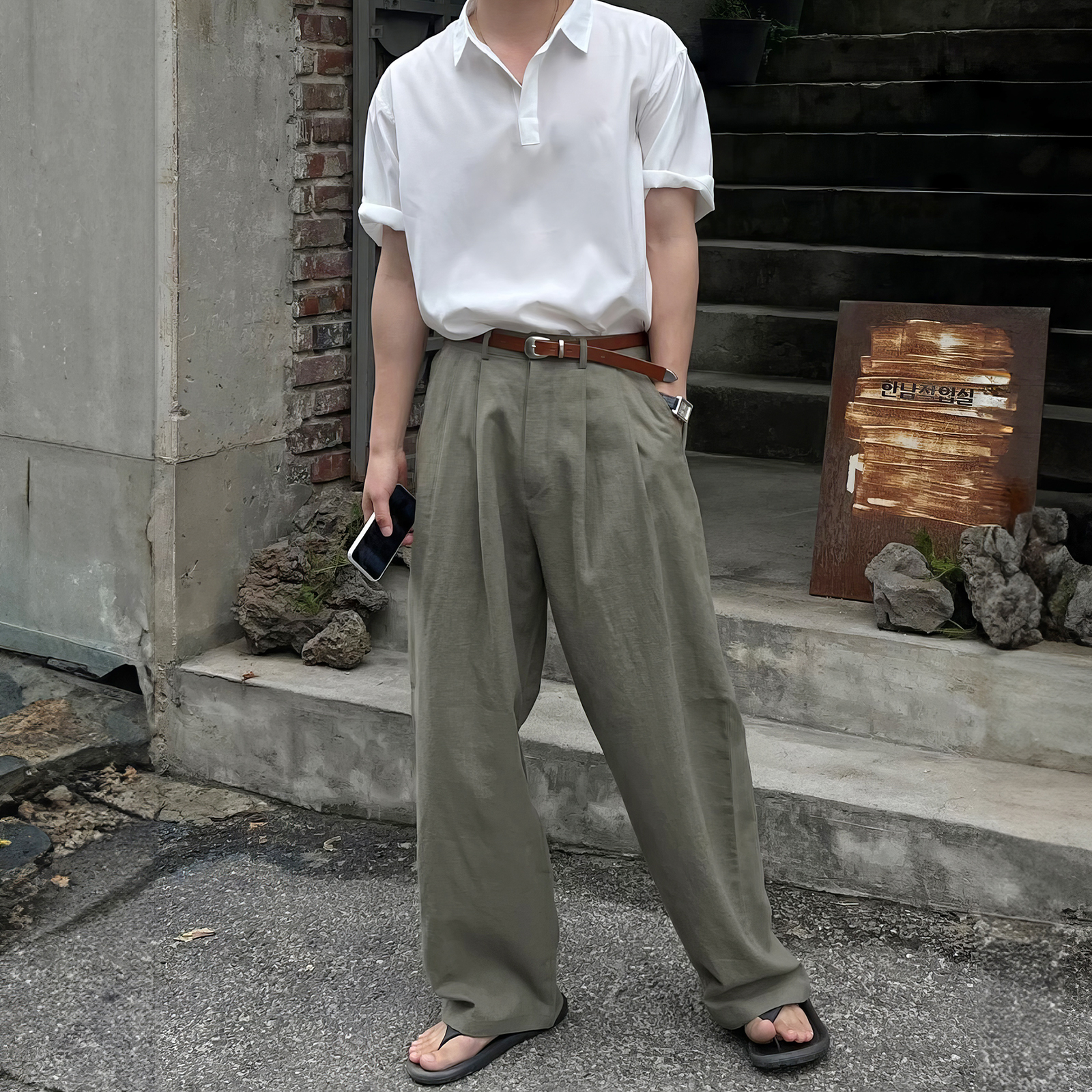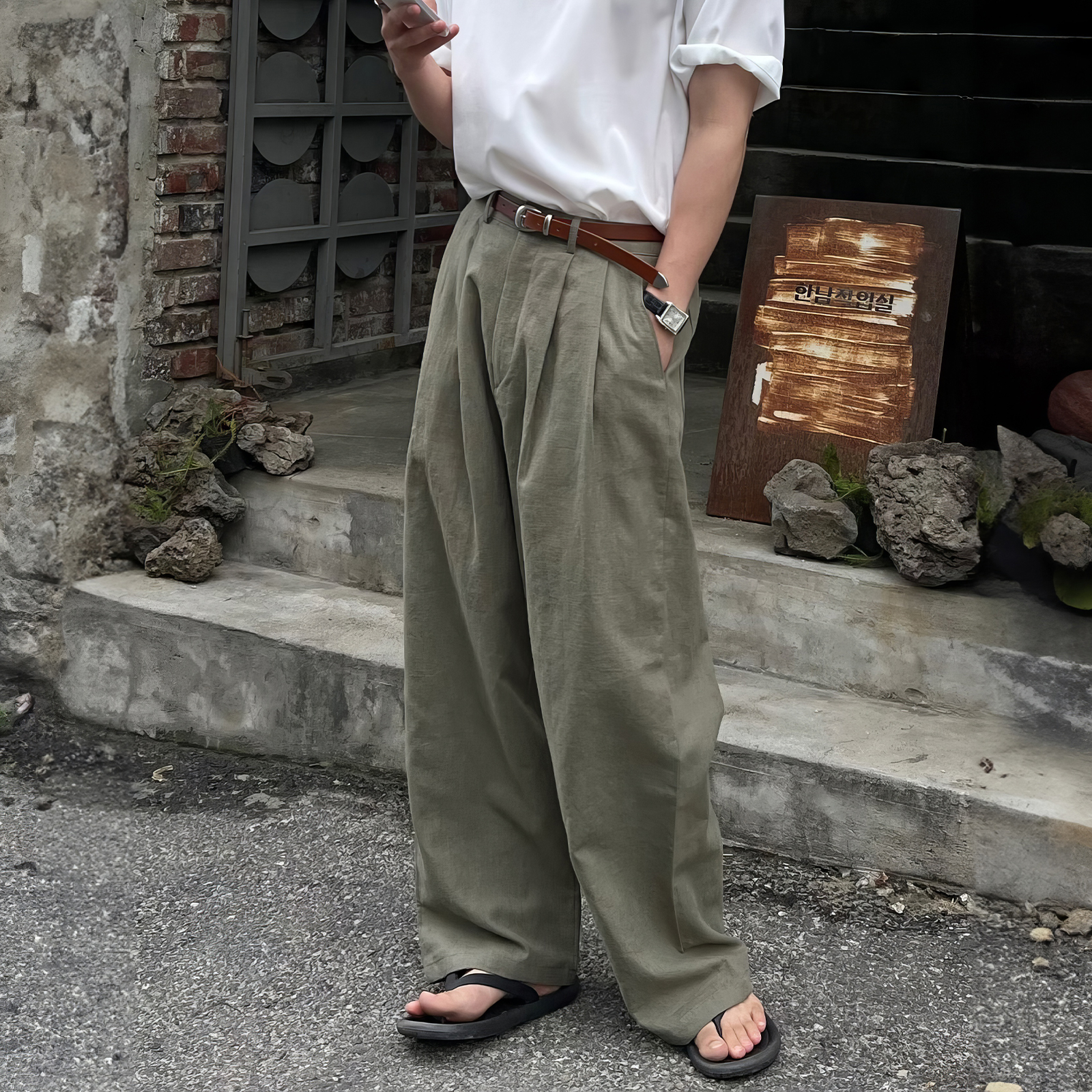 純色休閒直筒褲男士夏季日系復古個性痞帥長褲小眾垂感寬鬆闊腿褲