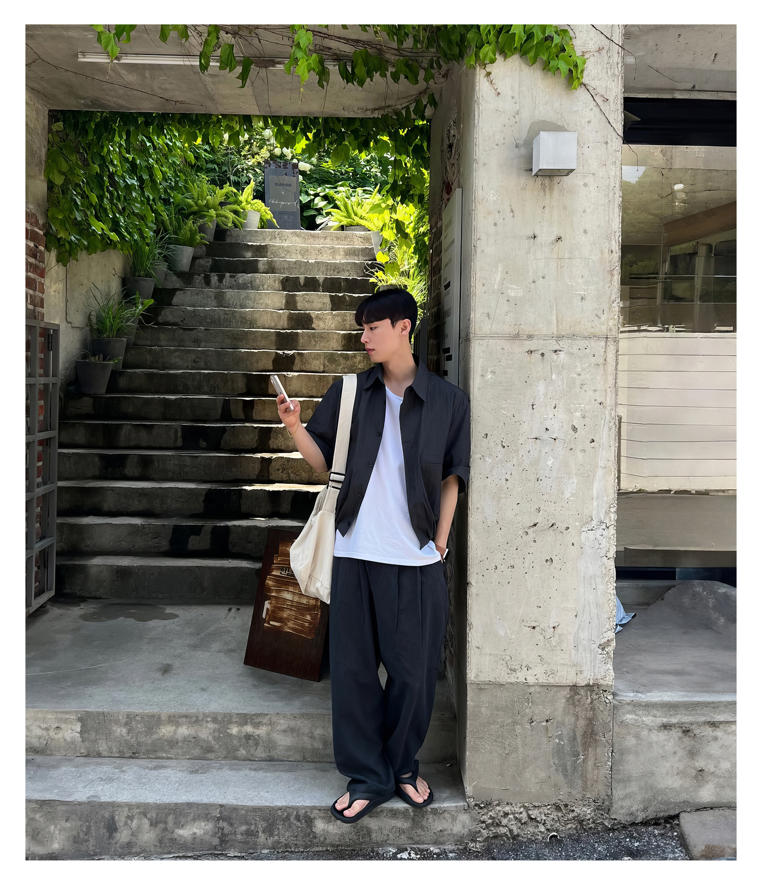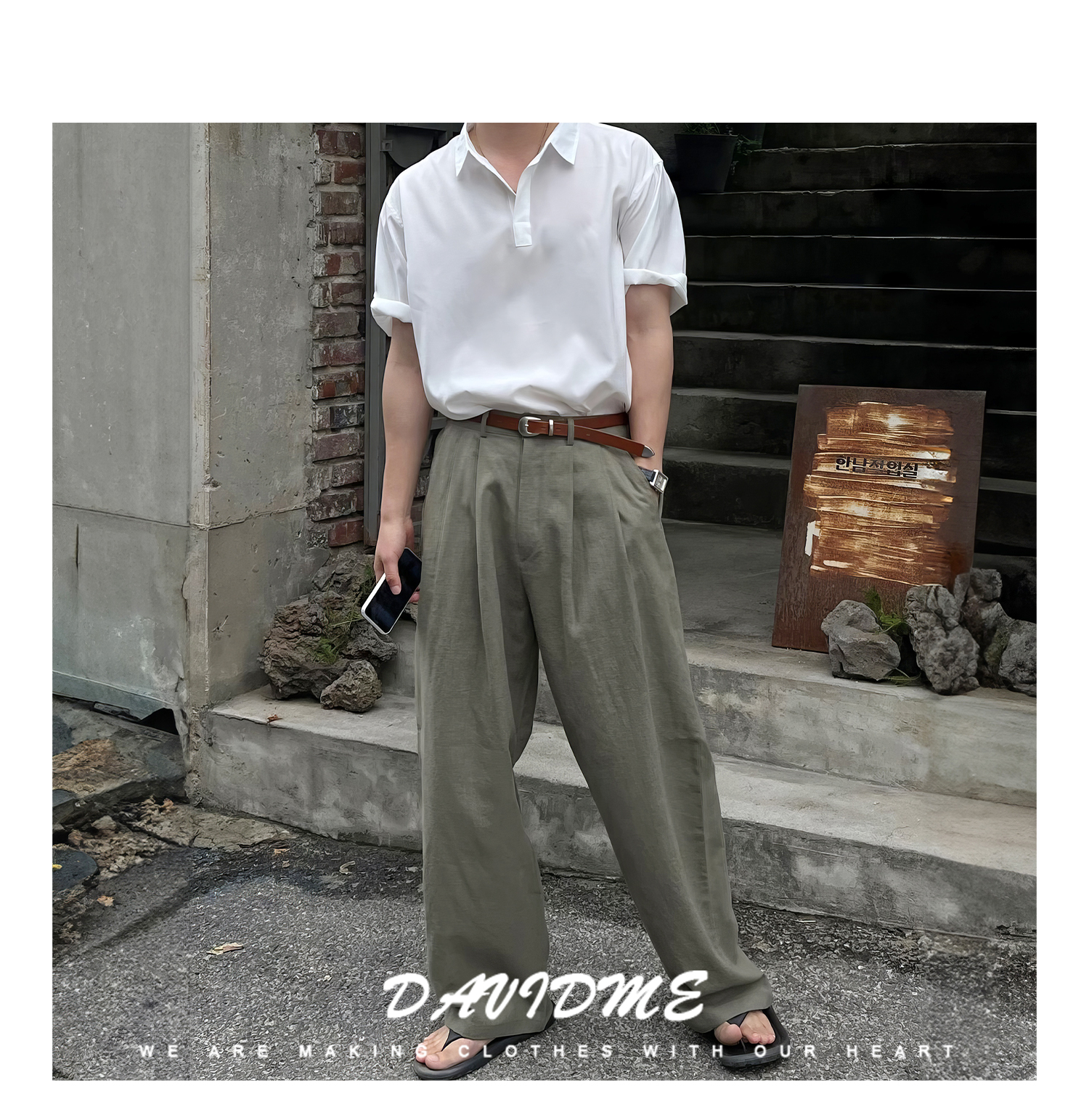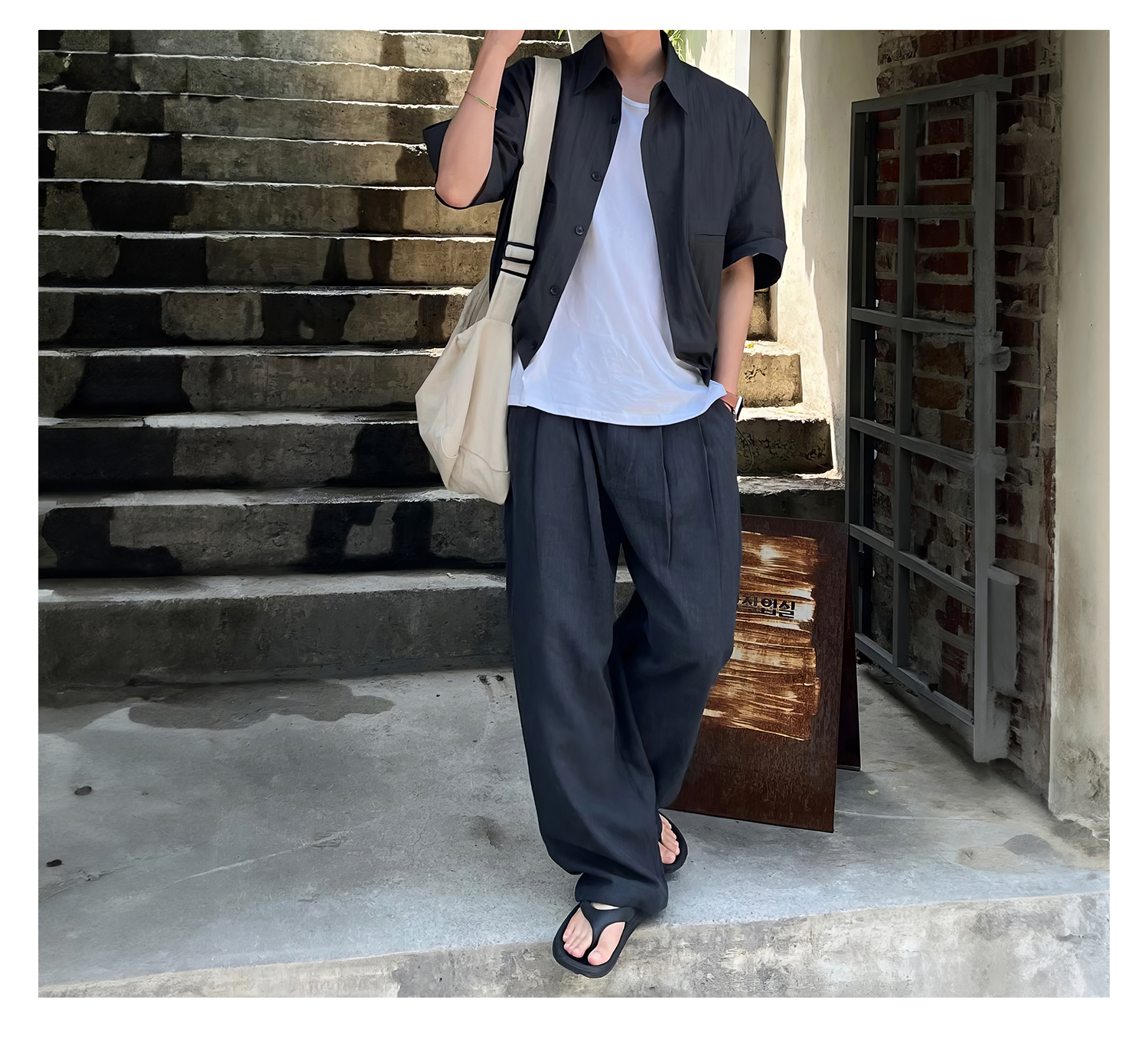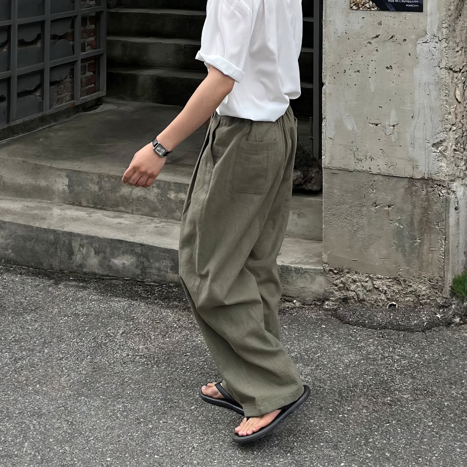 純色休閒直筒褲男士夏季日系復古個性痞帥長褲小眾垂感寬鬆闊腿褲