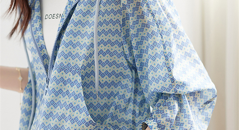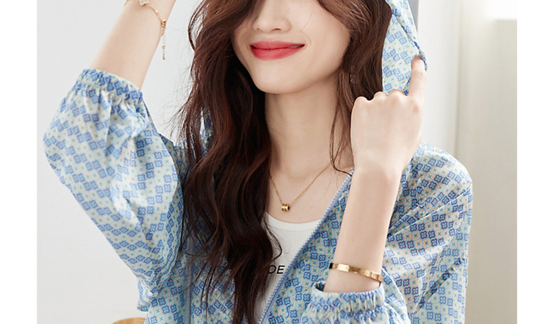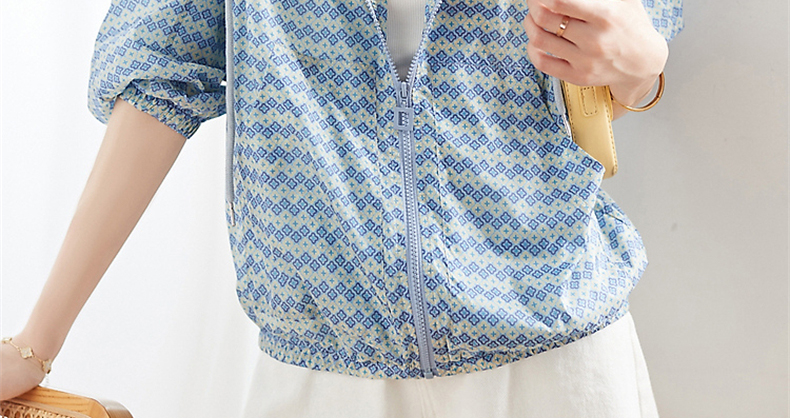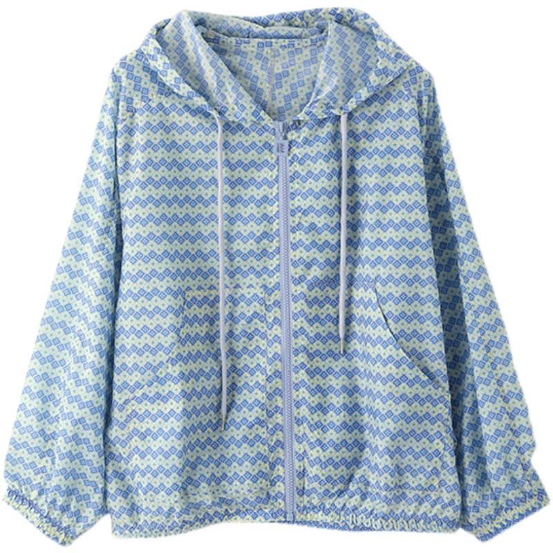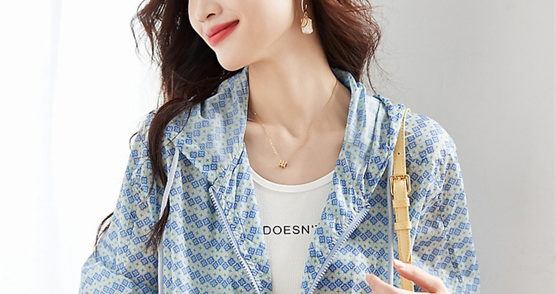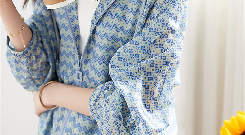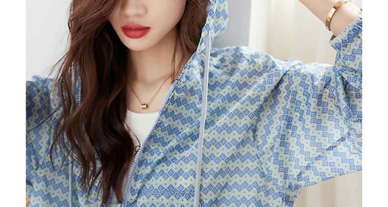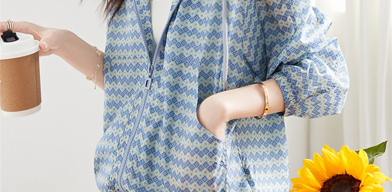 印花連帽外套女防曬2023年夏季新款寬鬆顯瘦休閒百搭輕薄透氣上衣