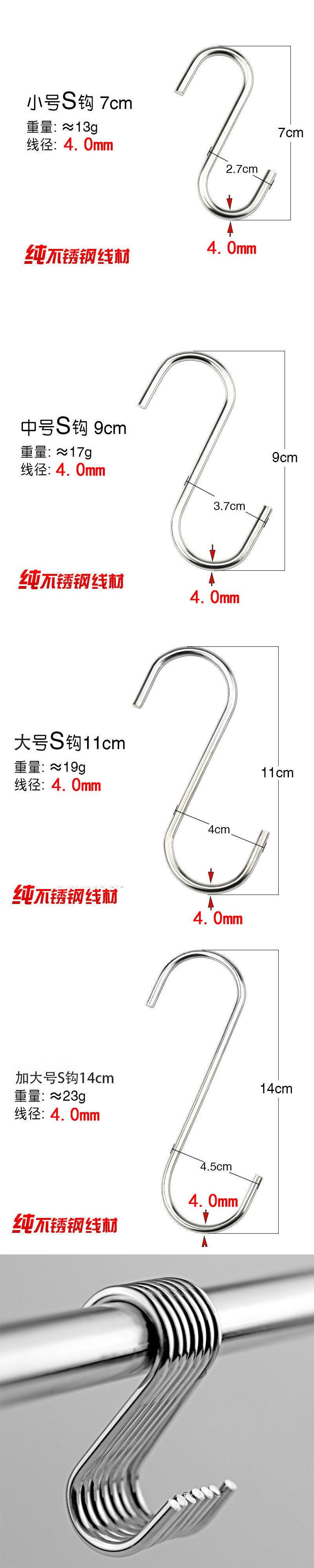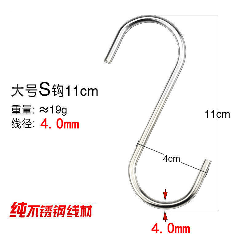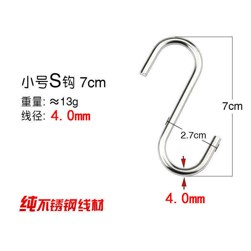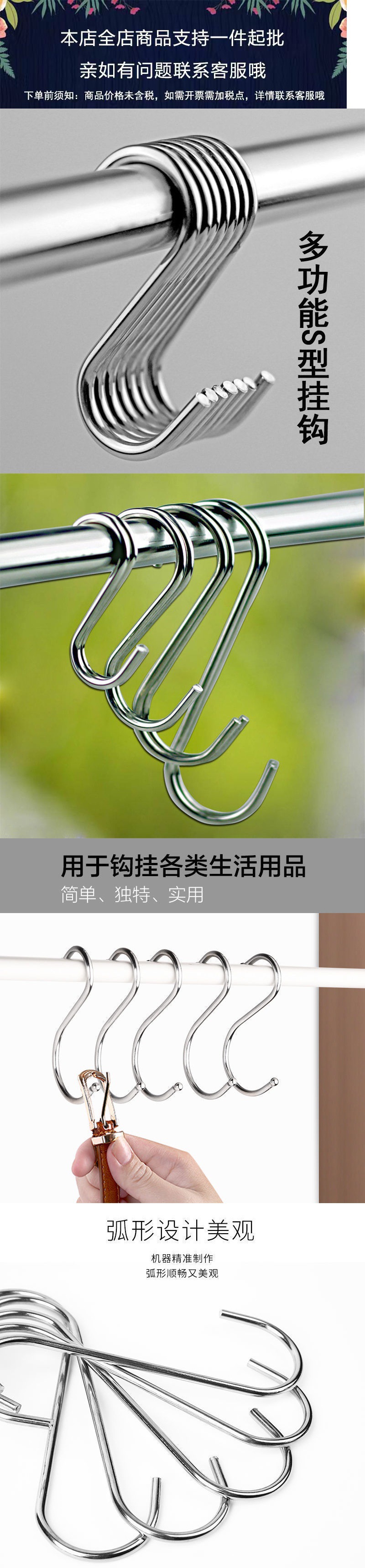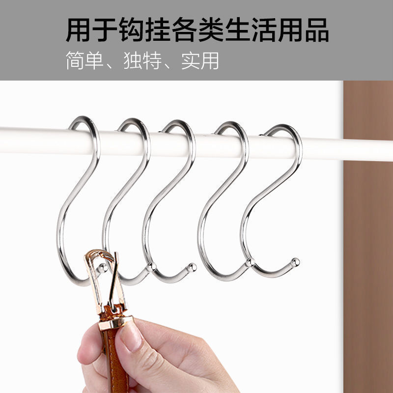 不锈钢钩子精品S挂钩加厚无磁多功能S钩晒香肠挂腊肉厨房衣柜挂钩