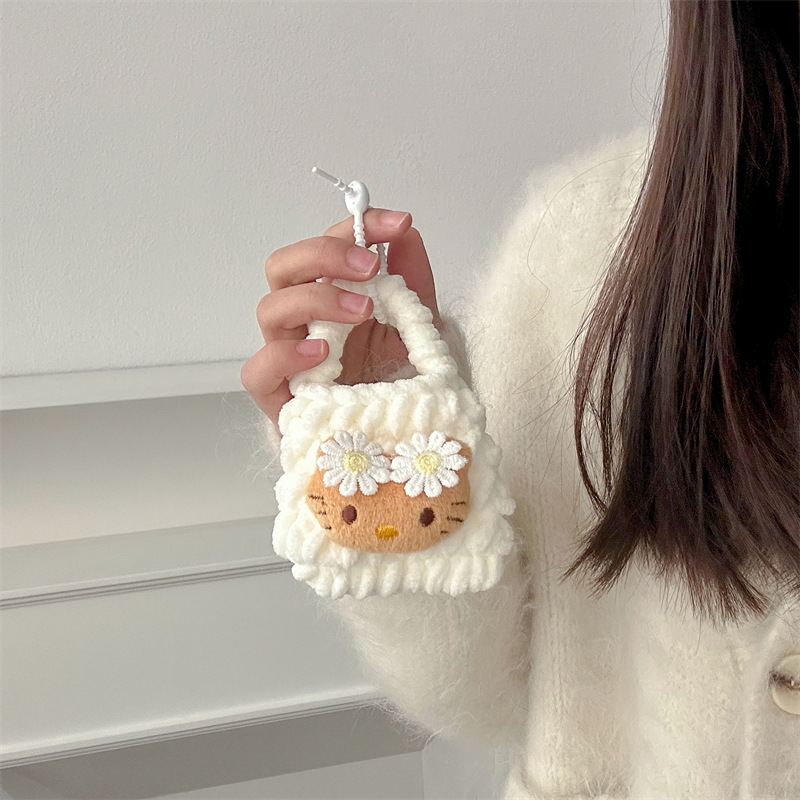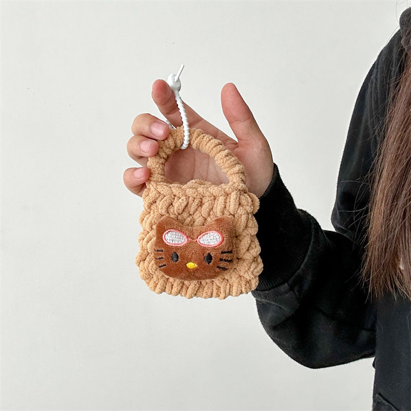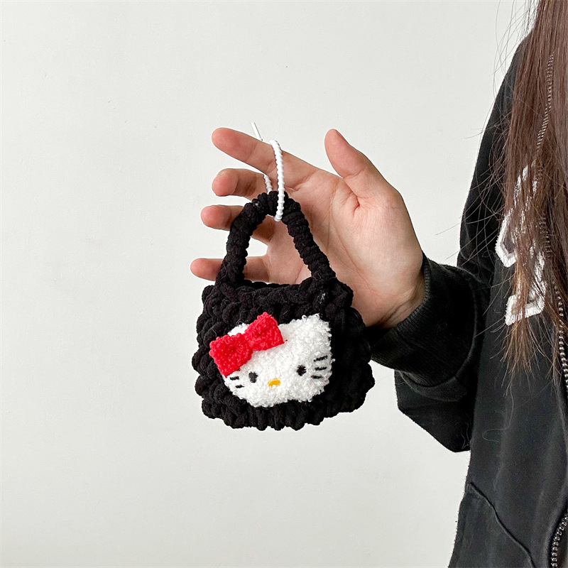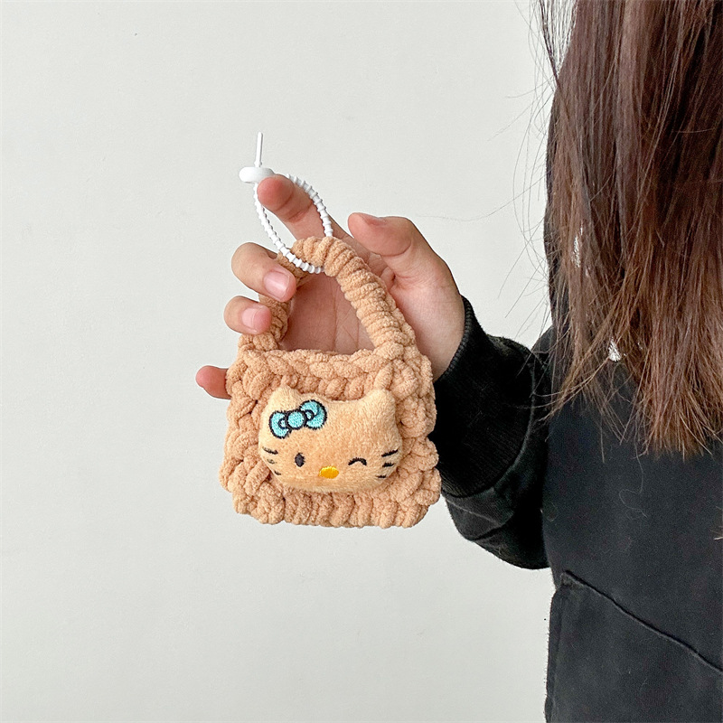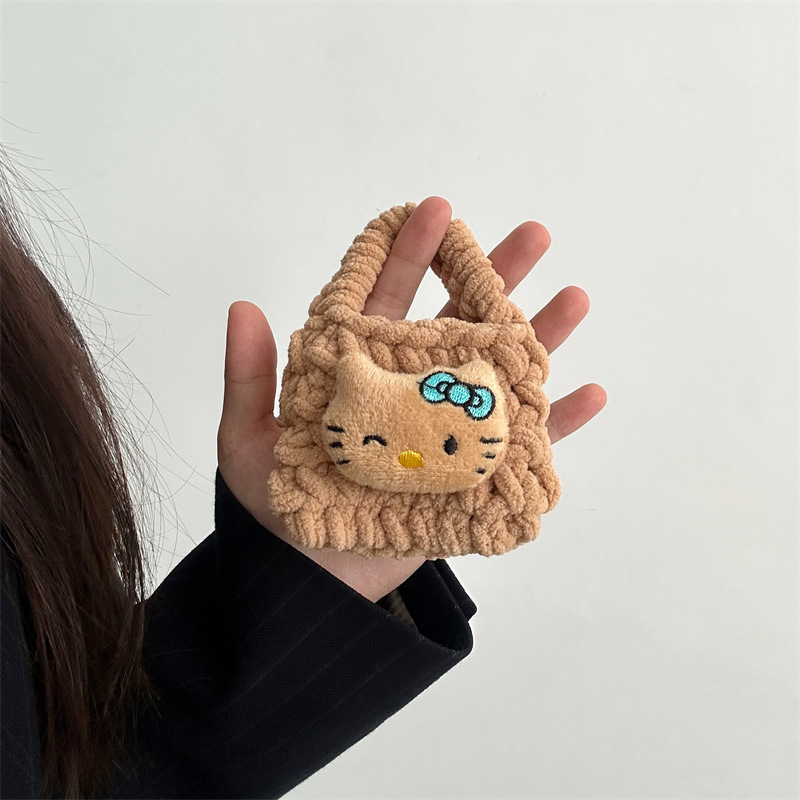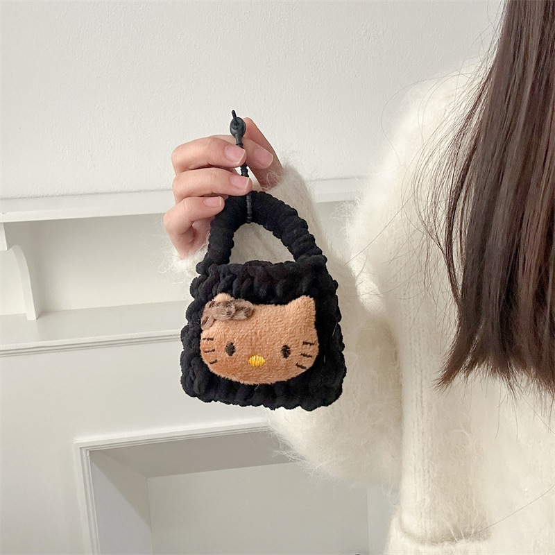 小红书爆款夏威夷黑皮kt猫防摔耳机包保护套毛绒迷你零钱收纳包