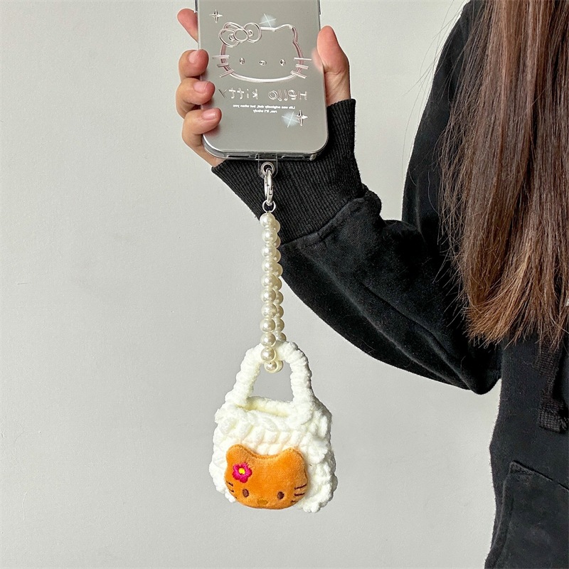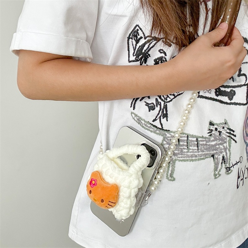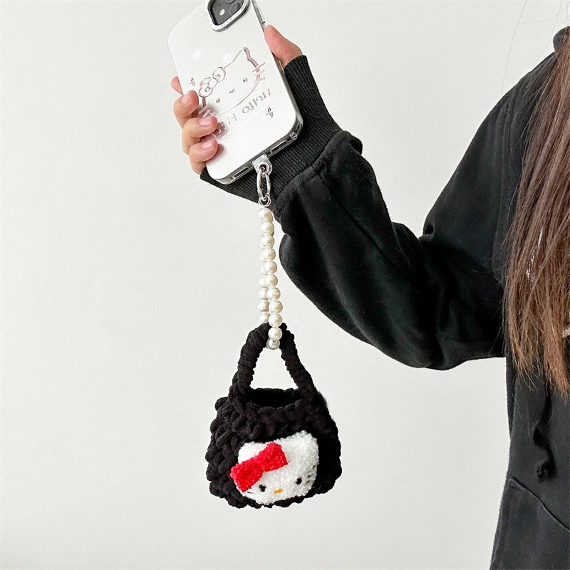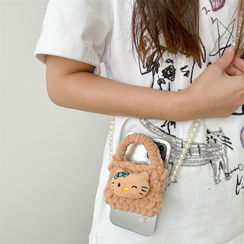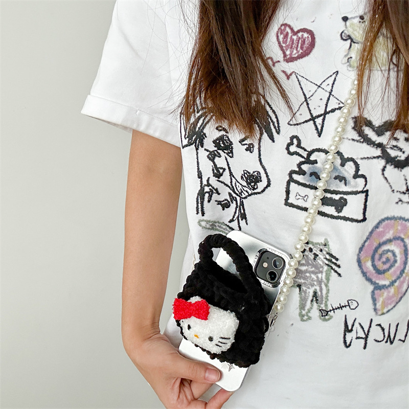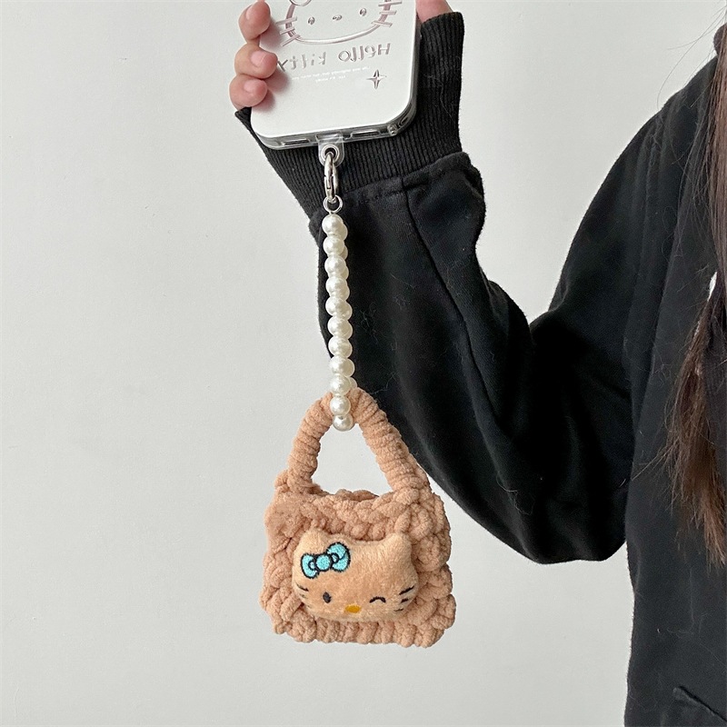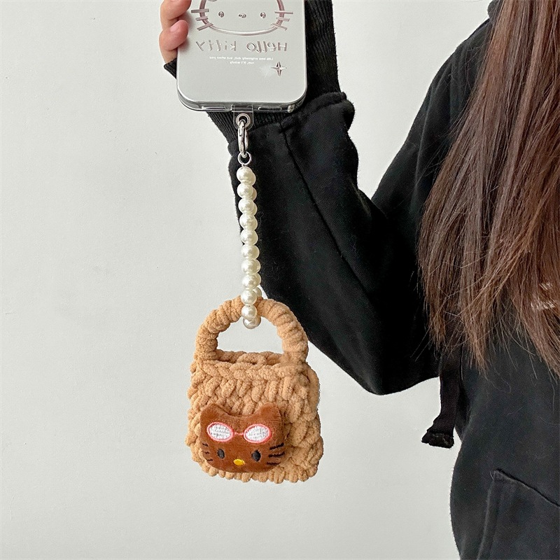小红书爆款夏威夷黑皮kt猫防摔耳机包保护套毛绒迷你零钱收纳包