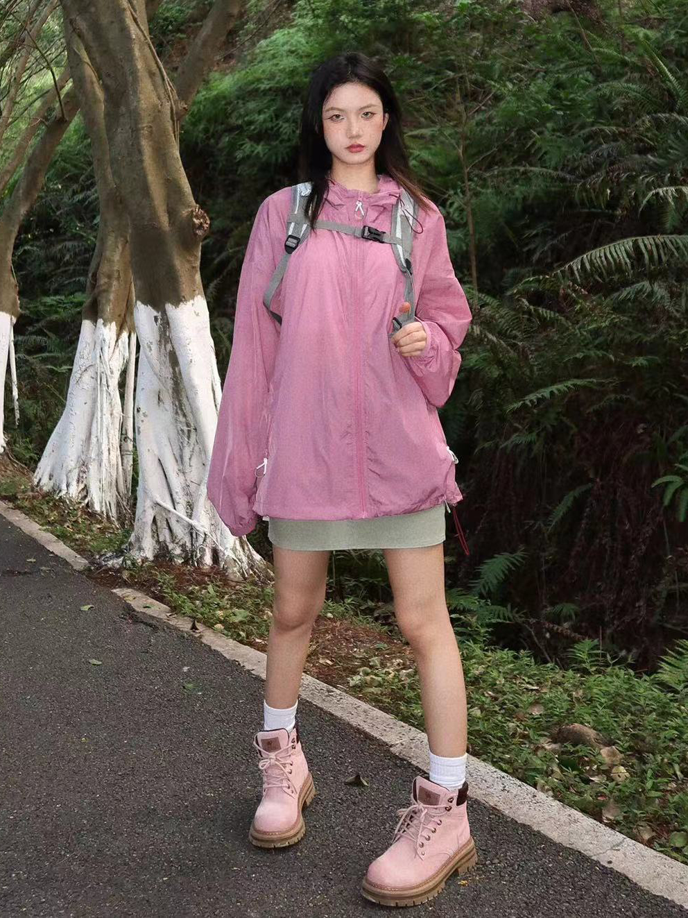 夏天多巴胺穿搭少女感粉色防曬衣女款寬鬆透氣薄款外套戶外防曬服