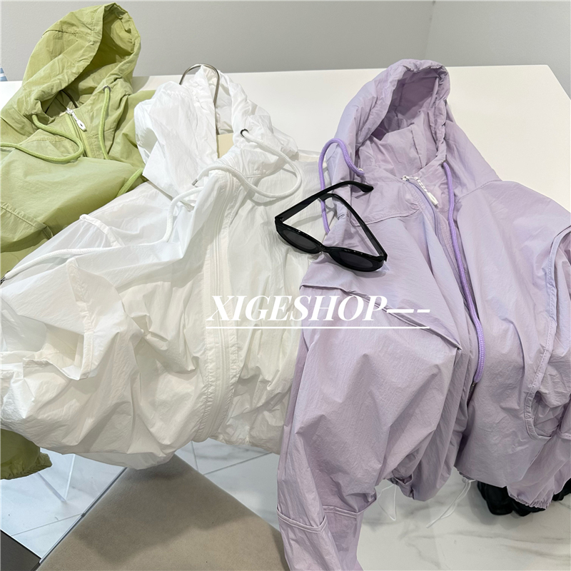 時尚輕薄連帽防曬衣外套女夏寬鬆百搭多巴胺休閒衝鋒衣開衫短上衣