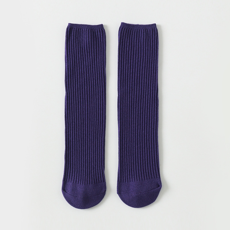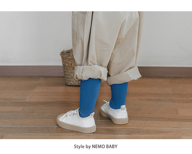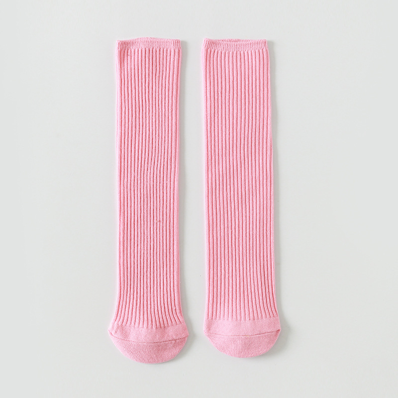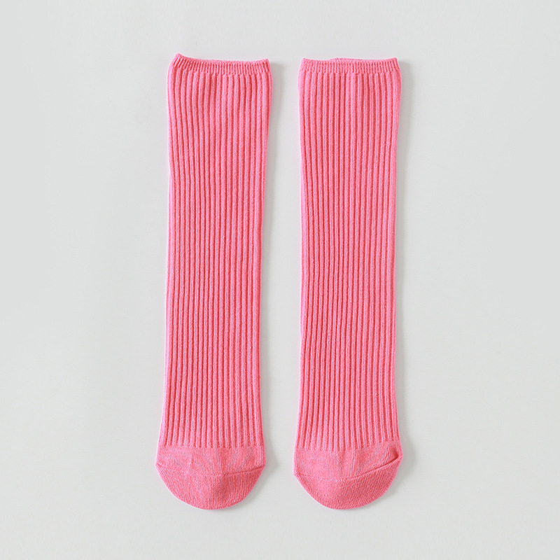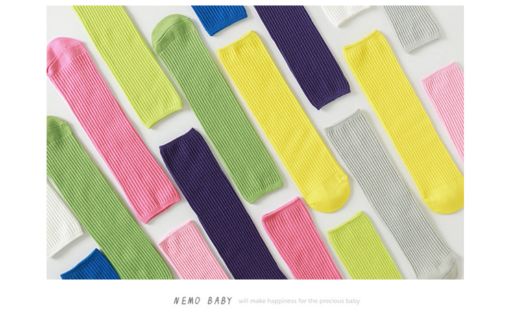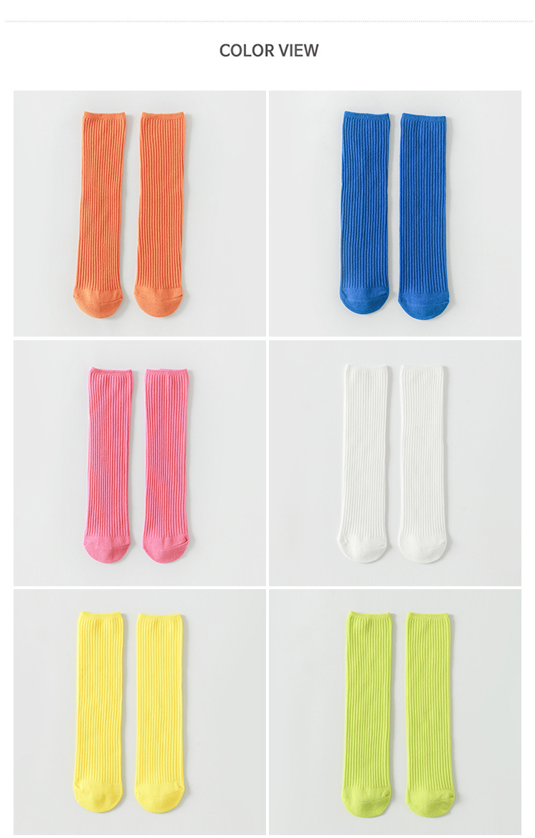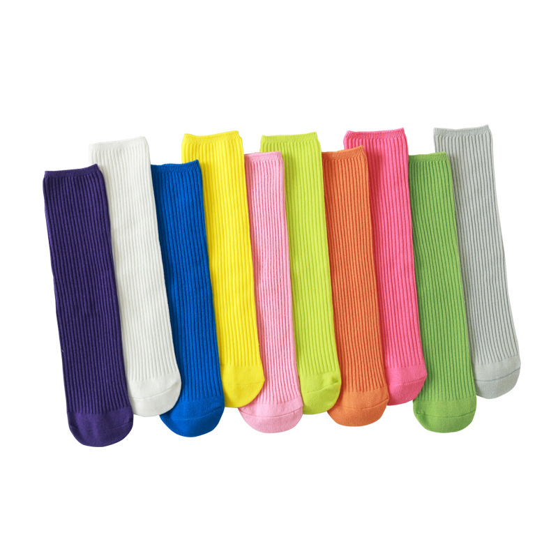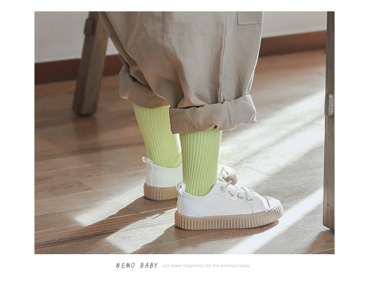 20春秋新款儿童袜子双针纯色中筒袜宝宝高筒袜男童女童无跟亲子袜