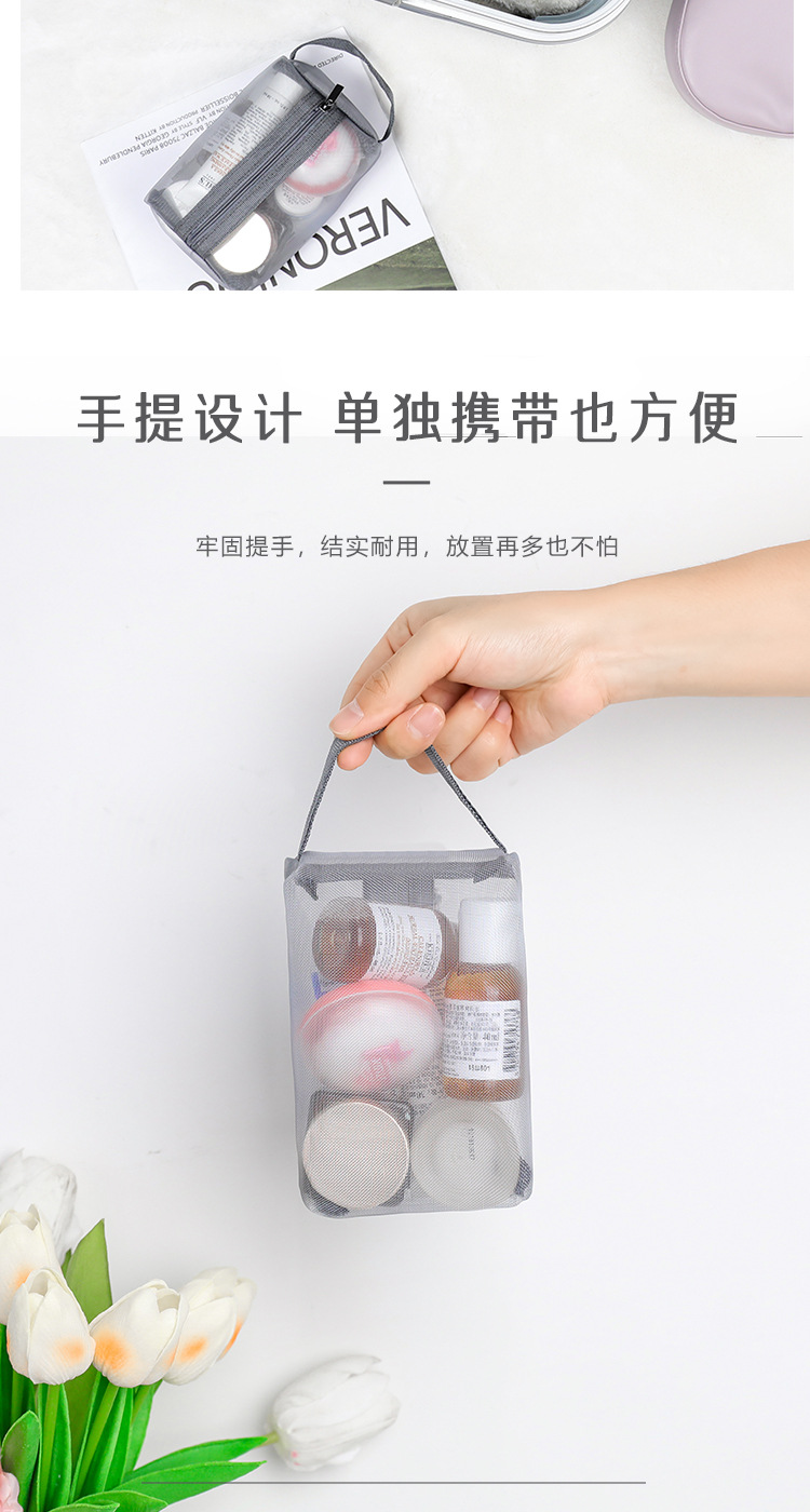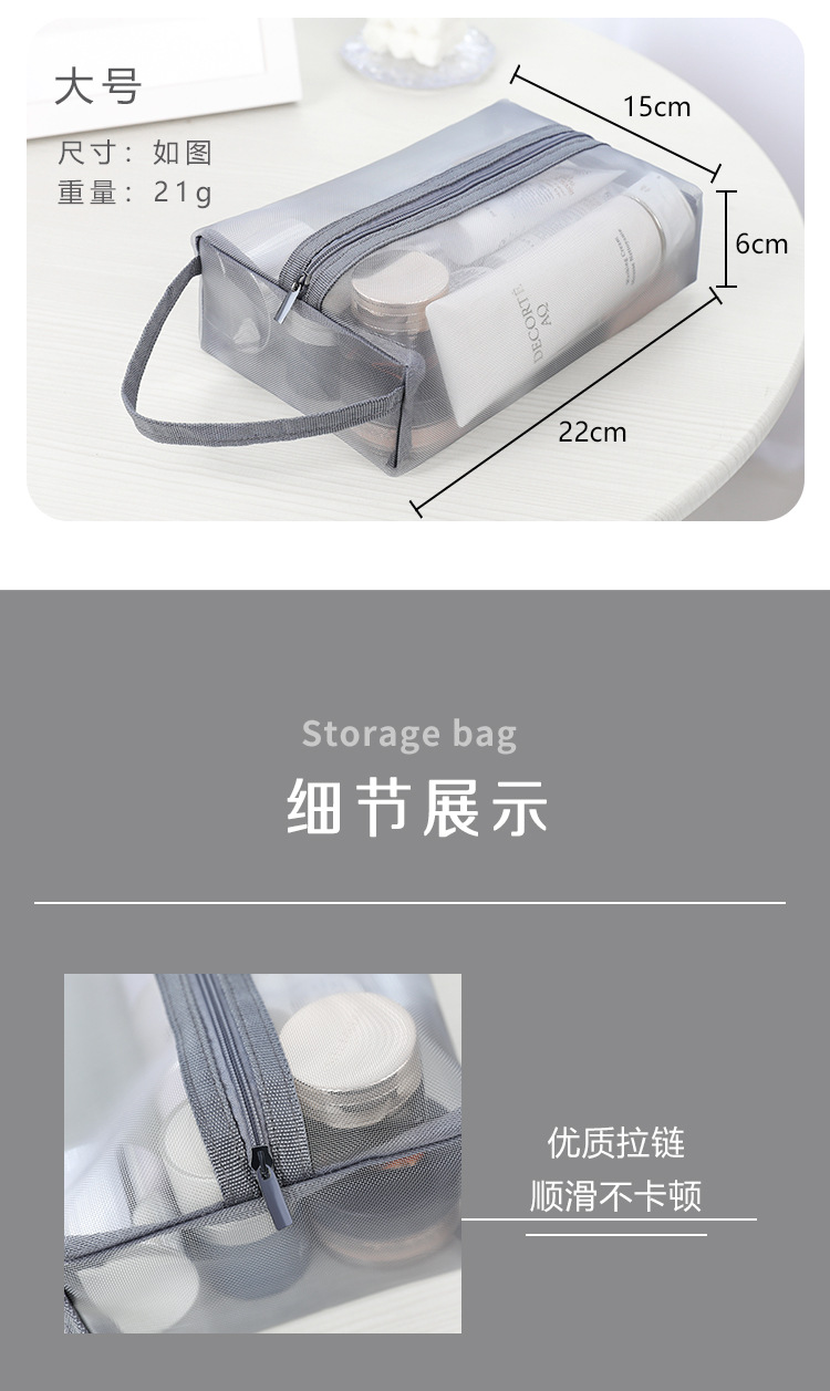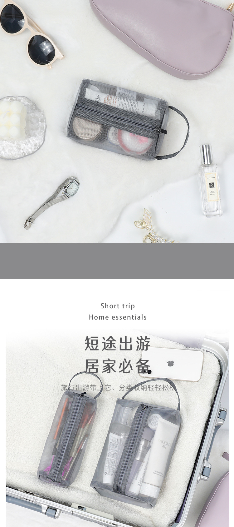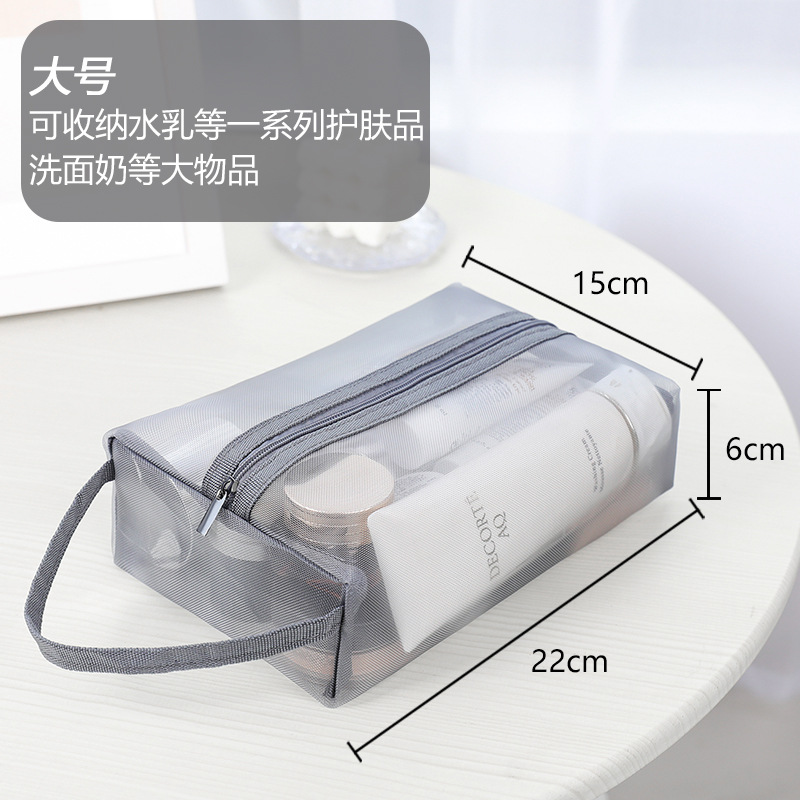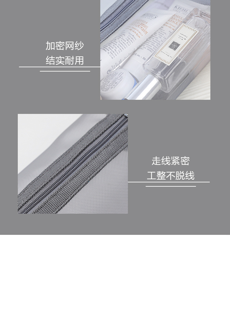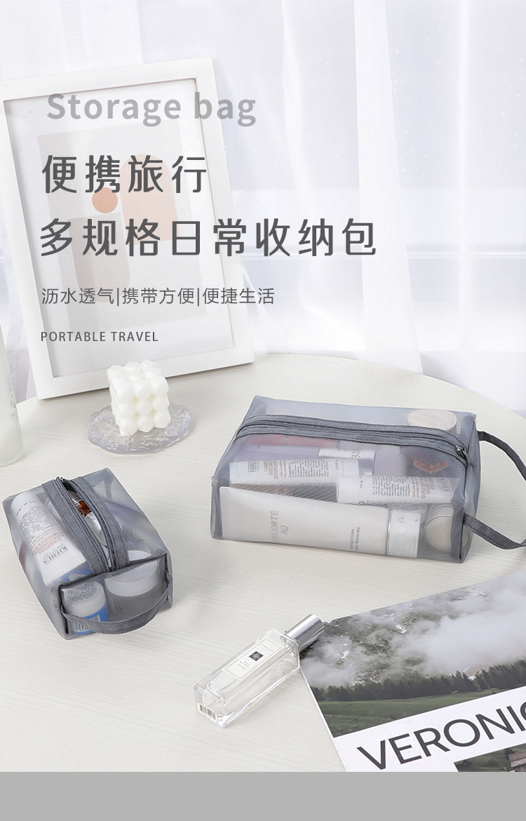 便携旅行洗漱包网纱透明化妆包护肤品口红收纳包铅笔圆珠笔手提包