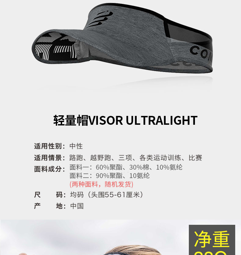 compressport跑步輕量空頂帽cs運動帽男士女跑步帽子