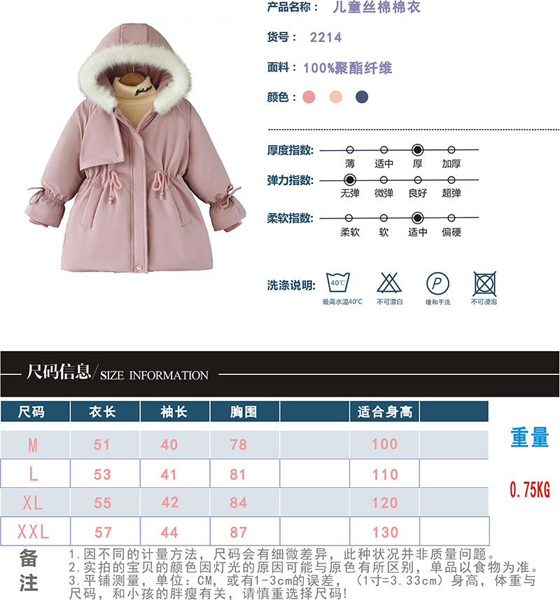 跨境外贸 2023新款儿童棉衣女童加厚外套 2214