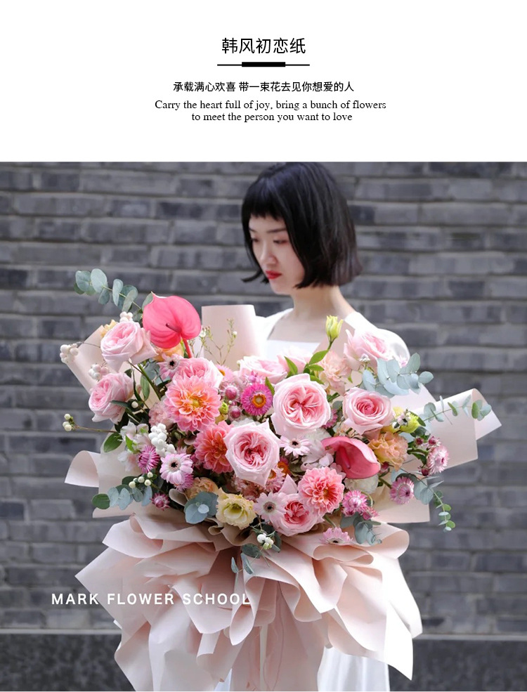 韩风初恋鲜花包装纸 防水加厚纯色欧雅纸花束包花纸 花店包装材料