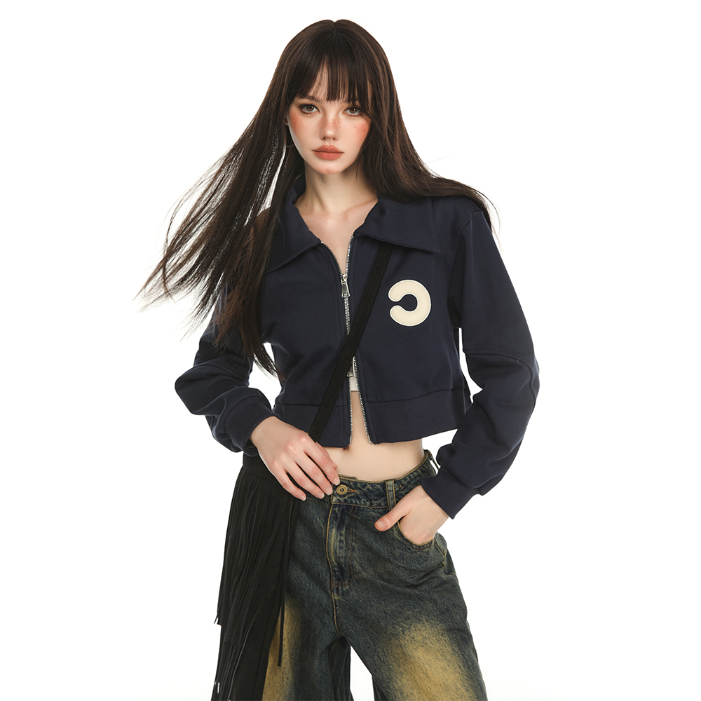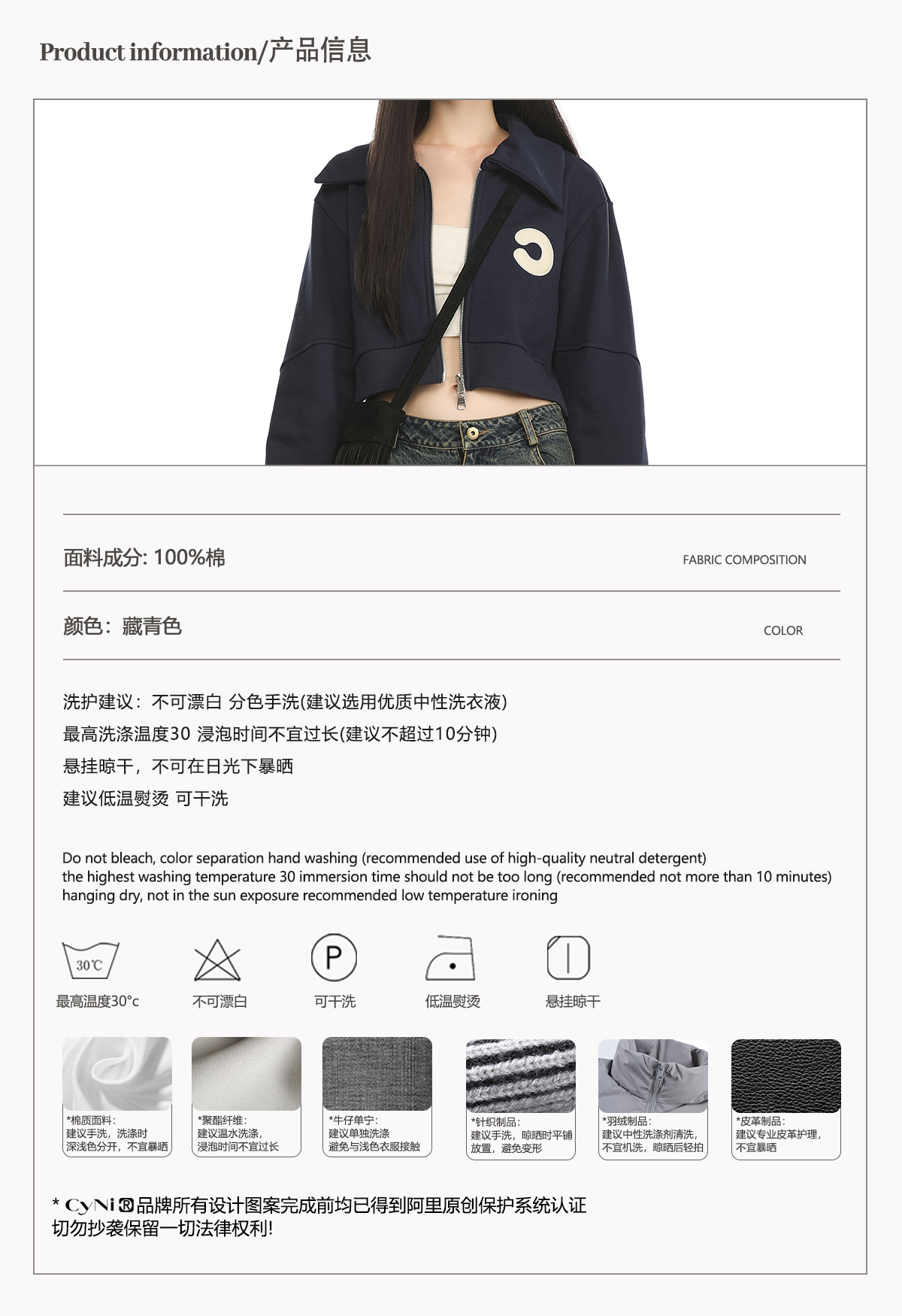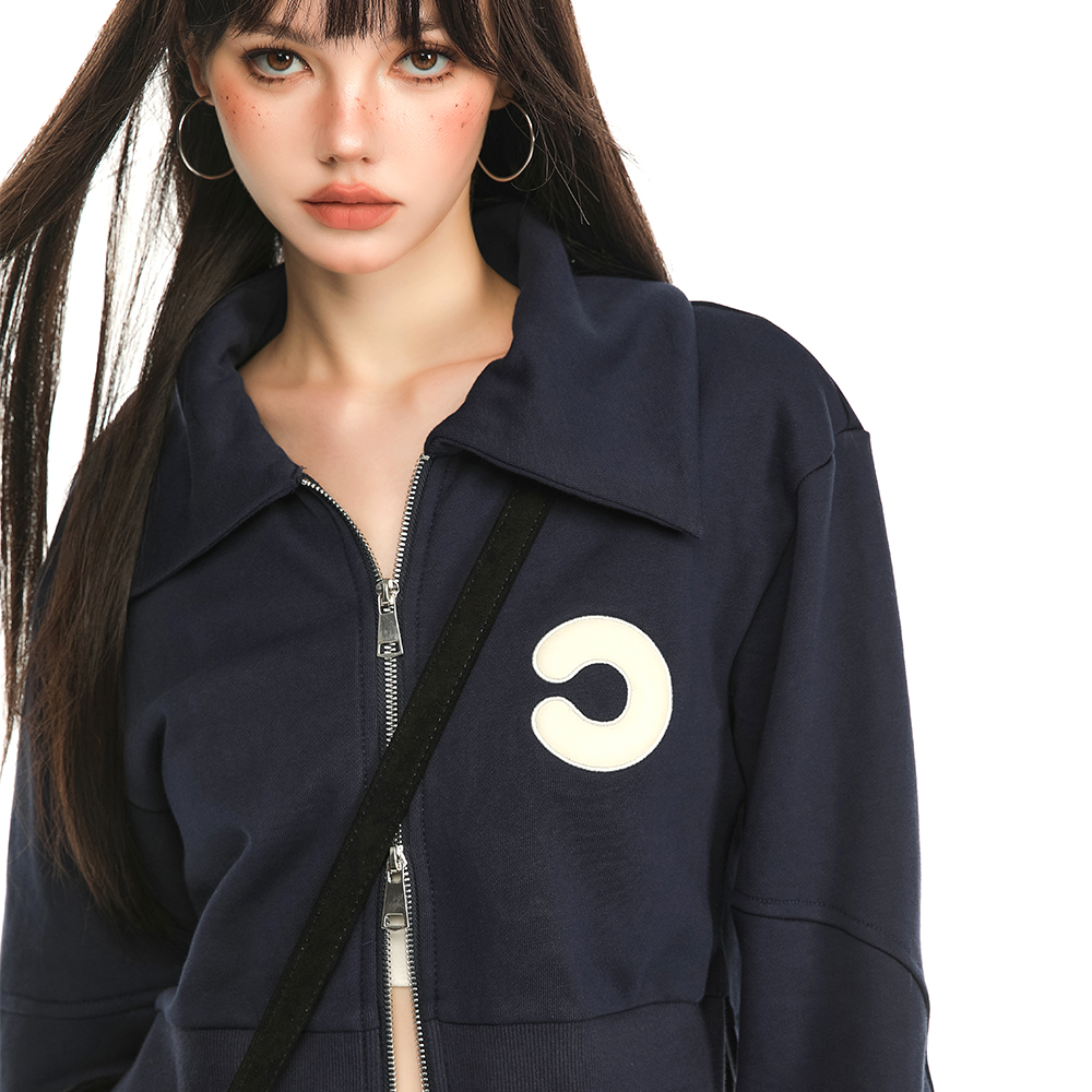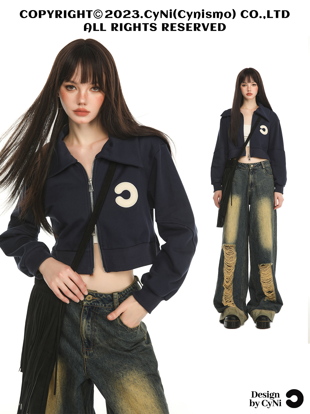 CyNi 「 Cynismo」復古通勤刺繡logo翻領拉鍊開衫厚棉T外套百搭ins