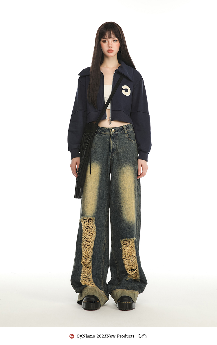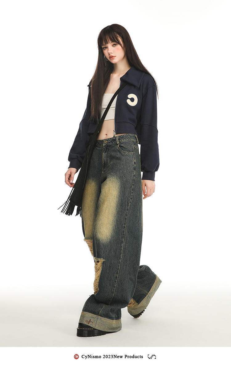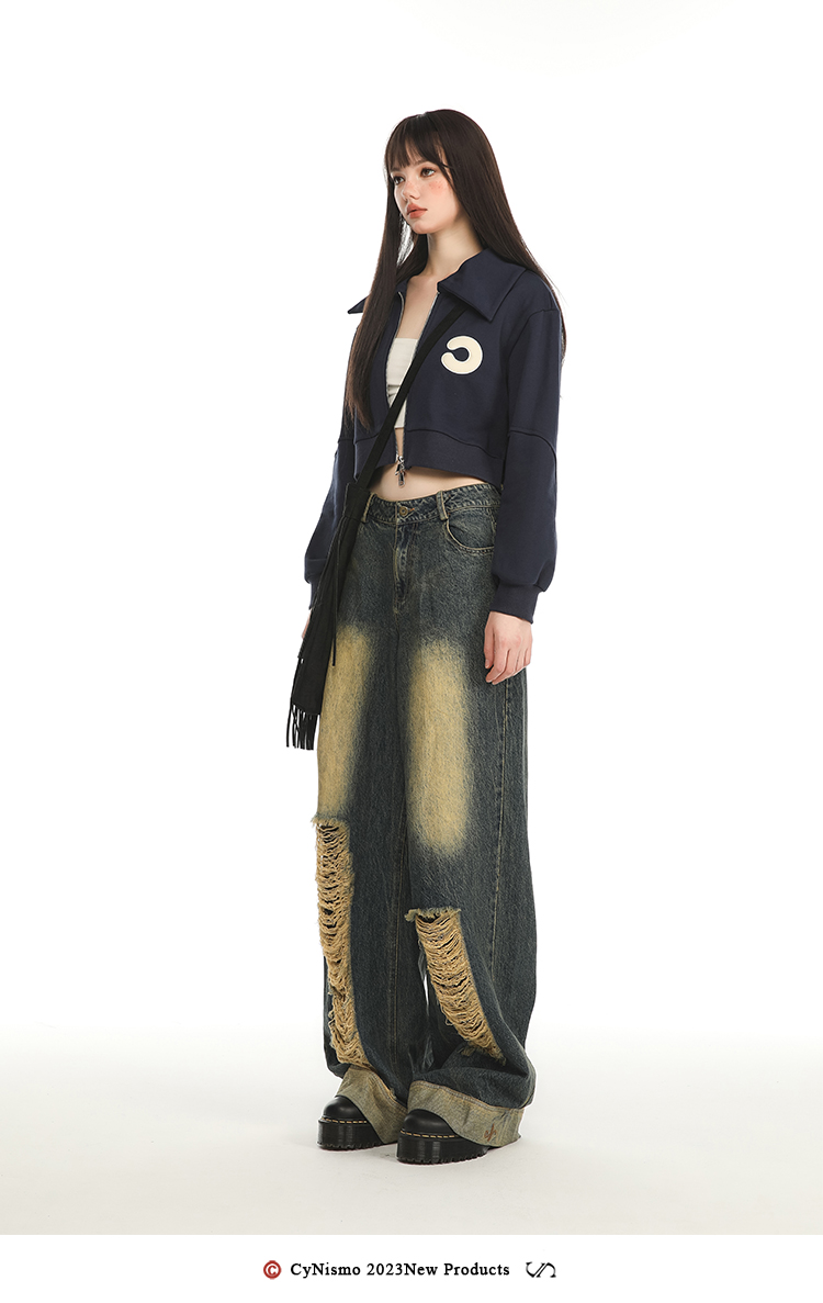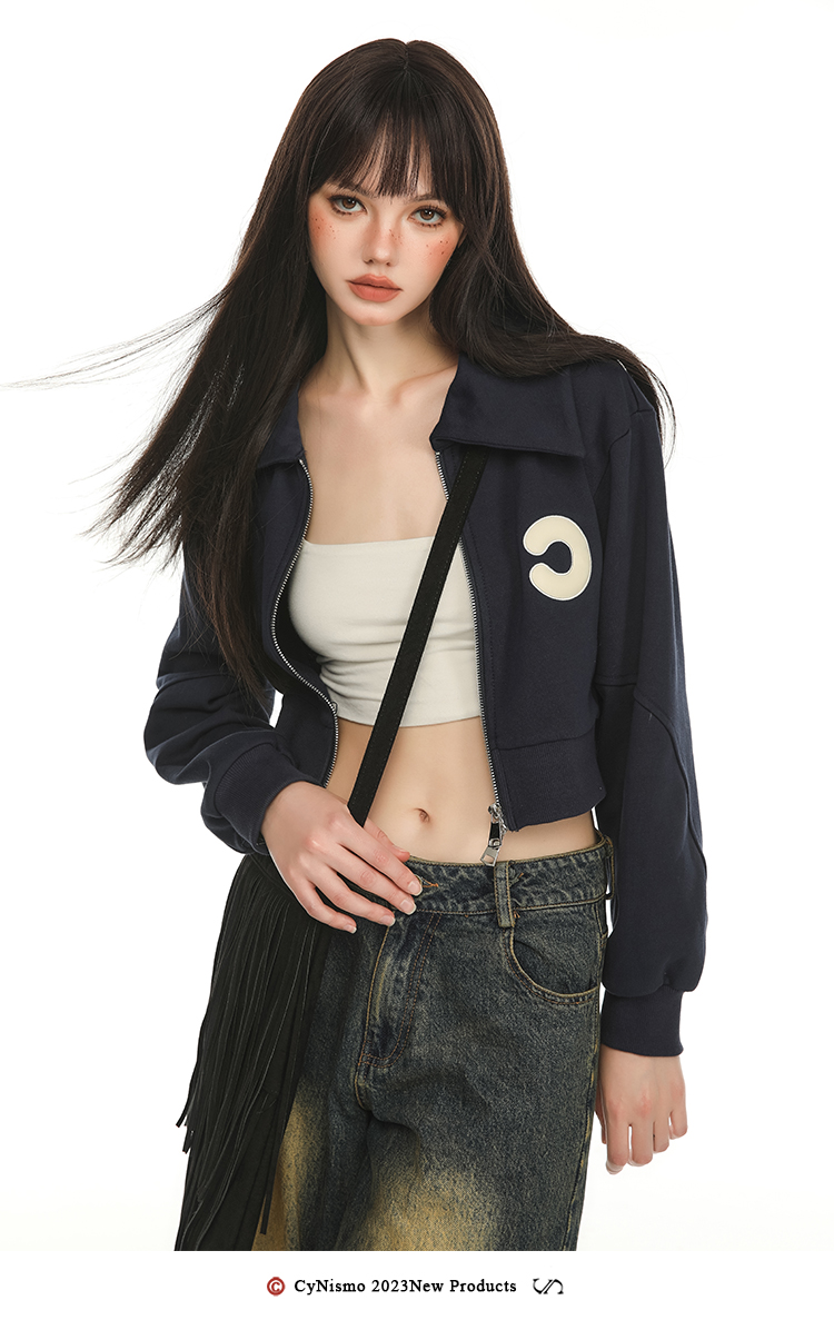 CyNi 「 Cynismo」復古通勤刺繡logo翻領拉鍊開衫厚棉T外套百搭ins