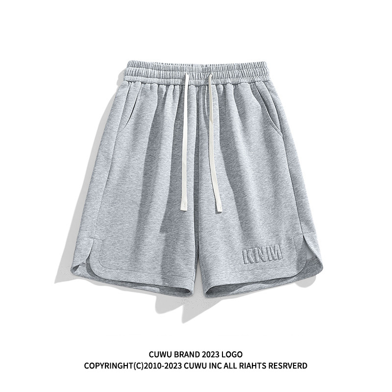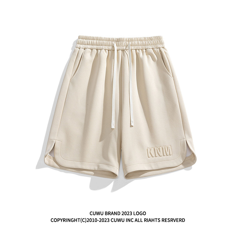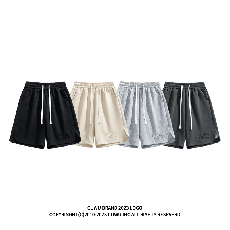 cuwu美式復古立體壓印休閒短褲女夏季新款潮牌寬鬆闊腿運動五分褲