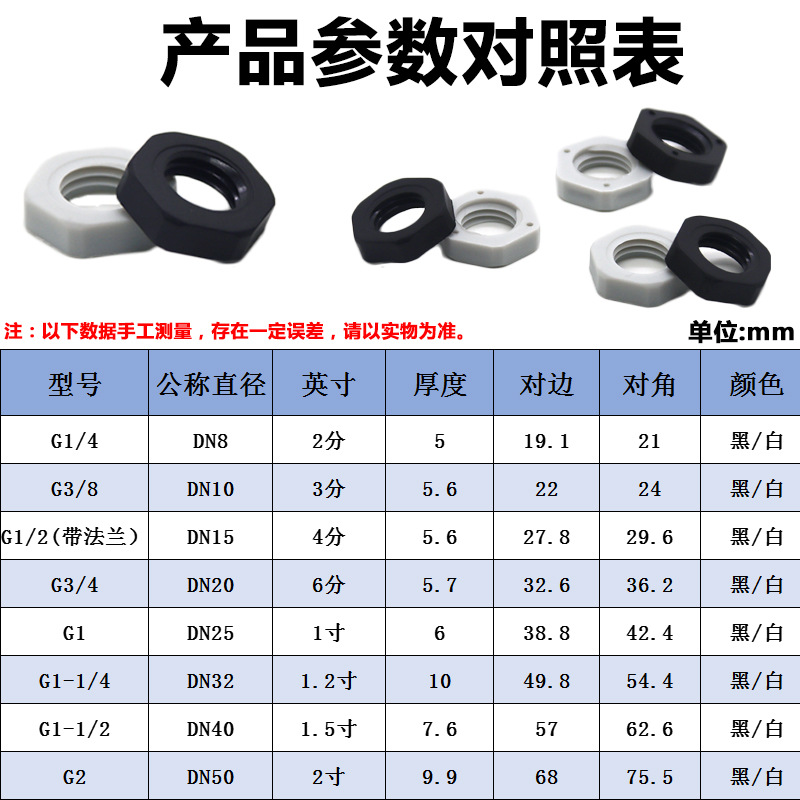 SG8Y批发英制并帽G1锁母G1/2 六角螺母G3/4塑料螺母4分螺帽并母