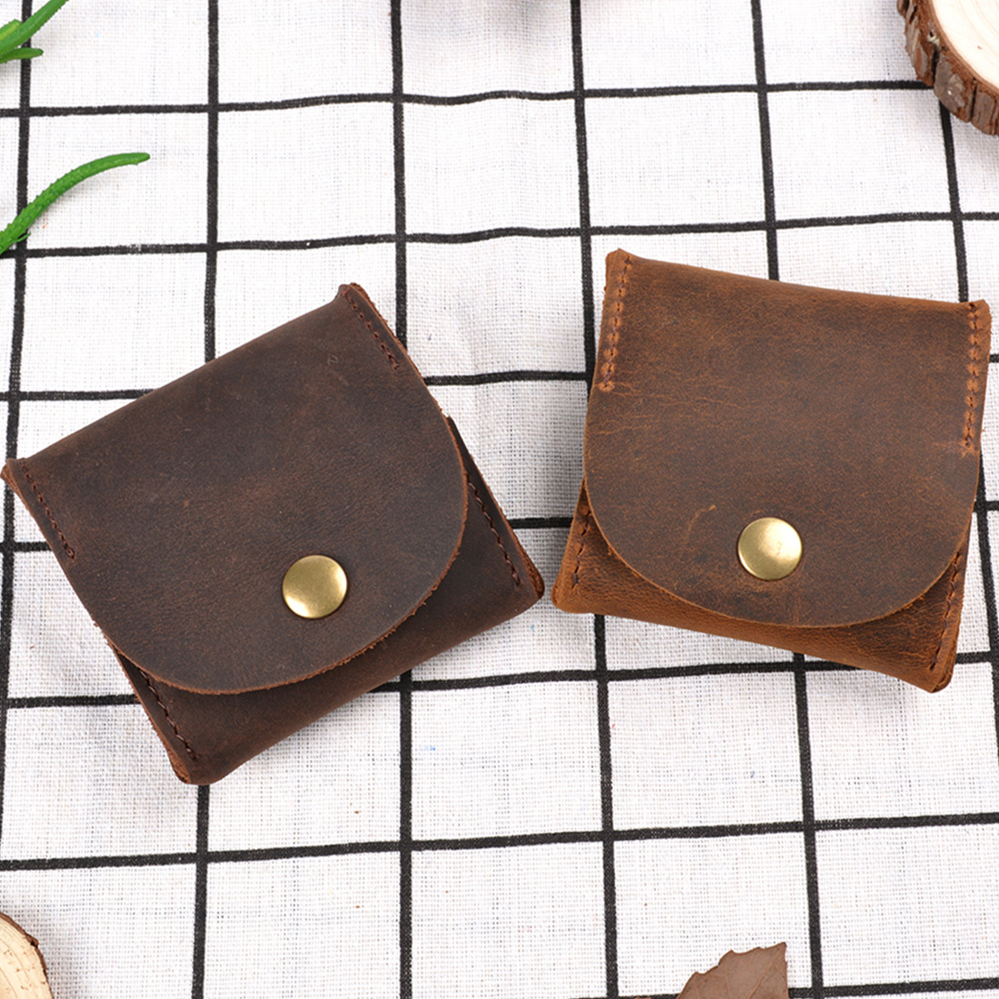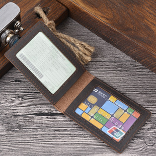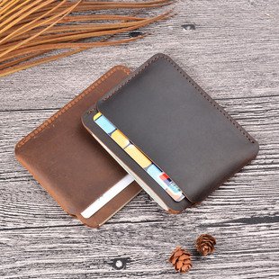 新款真皮名片卡包疯马皮按扣零钱包简约名片卡夹