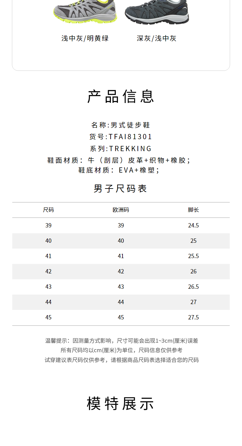 探路者徒步鞋春夏新款戶外防滑耐磨舒適透氣網布登山鞋TFAI81301